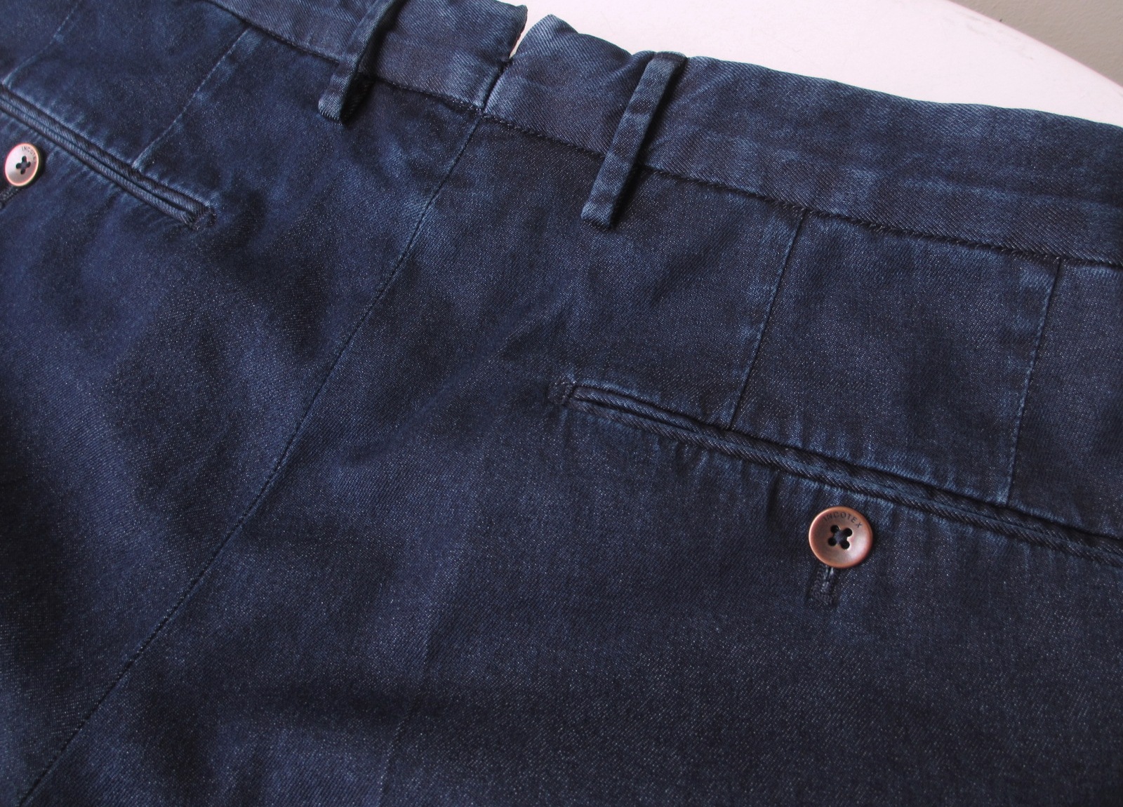 本日のご紹介です。こちらも、無理して着用している【INCOTEX/インコテックス】のパンツ。今回もサイズ44を頑張って穿いております。無理せず、46を穿けばいいのに...そんな声も聞こえてきそうなので、少しだけ釈明を。ウエストは確かに46でジャスト。ただヒップの貧弱さとか細い脚の私は、腰回りからワタリが余ります。まるでイタリア人体型みたい、なんて言えば聞こえが良いのですが...。少しでもパンツの美しいラインをお見せしようとサイズ44を選んでる次第です。