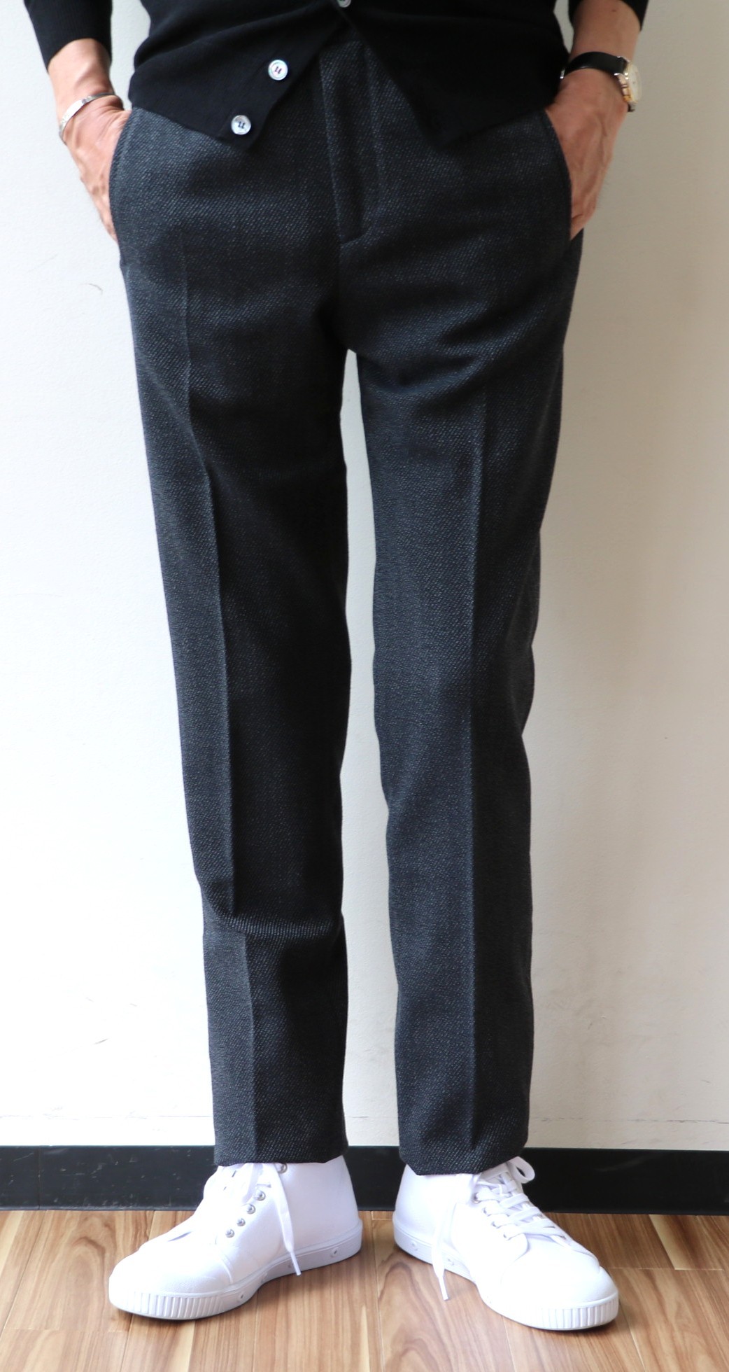 MODEL:「1AT091」ミックス糸カシミア混ストレッチウールパンツ