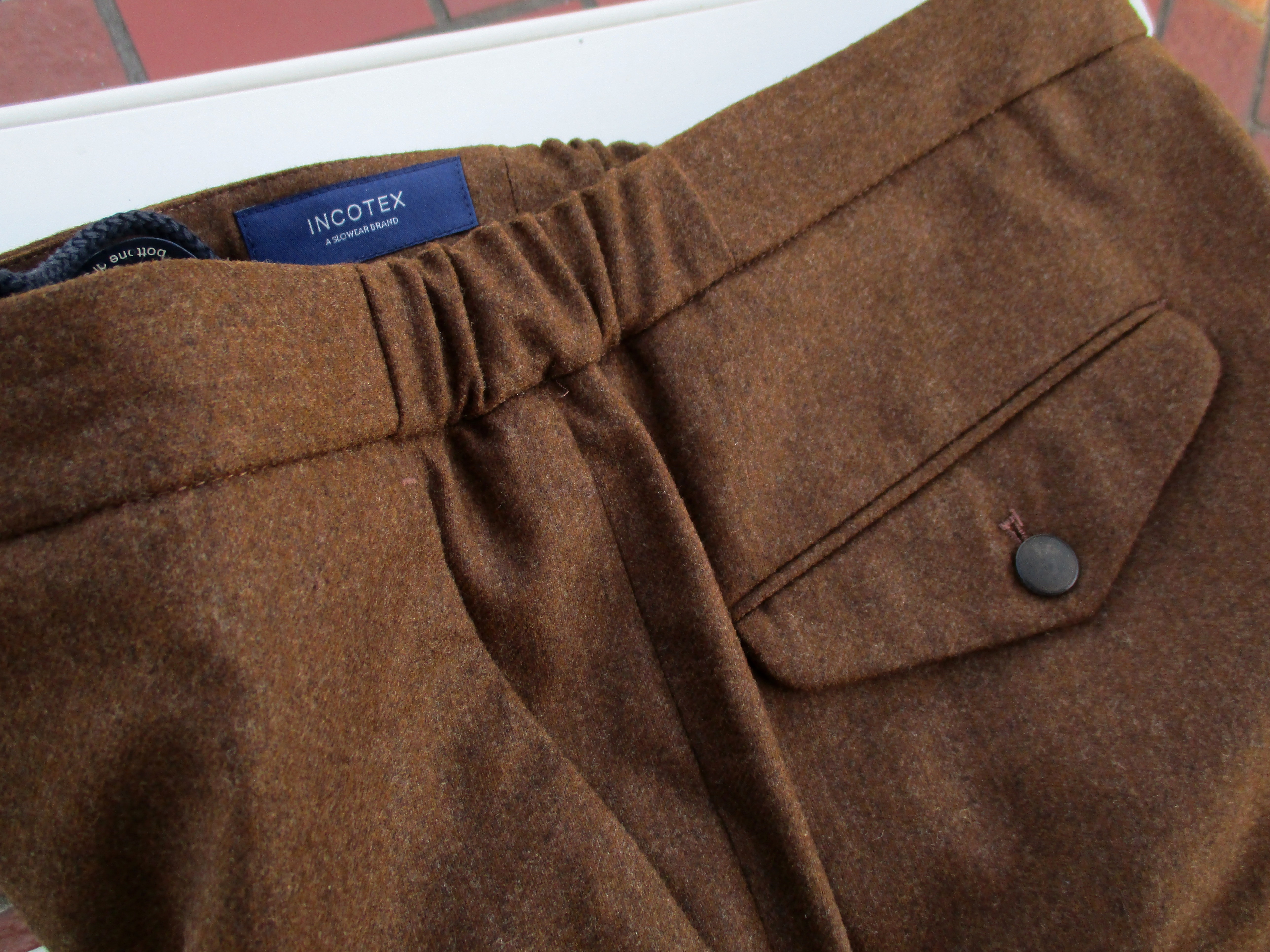 もはや、INCOTEX(インコテックス)の定番モデルと呼んでよいでしょう。フランネルの甘い雰囲気を持ったドローコード付きシャーリングパンツ「1AG064」です。