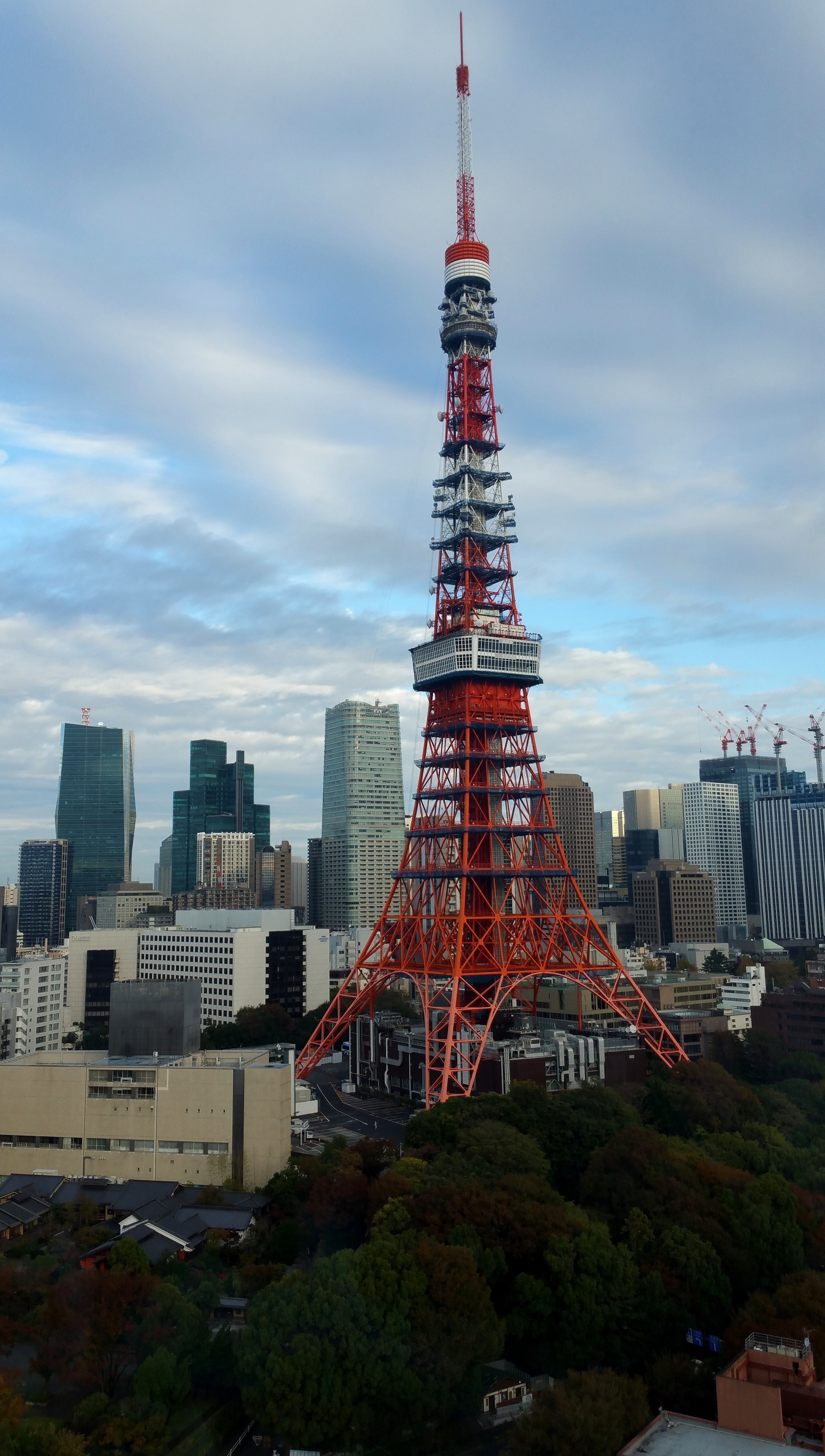 そして、こちらは東京タワー。決して、甘いお菓子で作られたものではなく、本物の東京タワーです。見れば、分かりますね。1958年生まれですから、私と同じ。確か、今月の23日が誕生日だったような気がします。およそ4.2ktの硬い鋼材からできているのですが、柔らかく見えるのは色合いのせいでしょうか。赤と白のツートンと思われがちですが、実はインターナショナルオレンジと白。パリのエッフェル塔と比べると、優しい表情を漂わせているのは、この色使いにあるのかもしれません。この配色は、航空法で定められたおり勝手に変えることはできません。その代わり、私達が装うように、電飾の変化で様々な表情を見せてくれます。時には、甘い都会の生活も演出してくれている...はずです。
