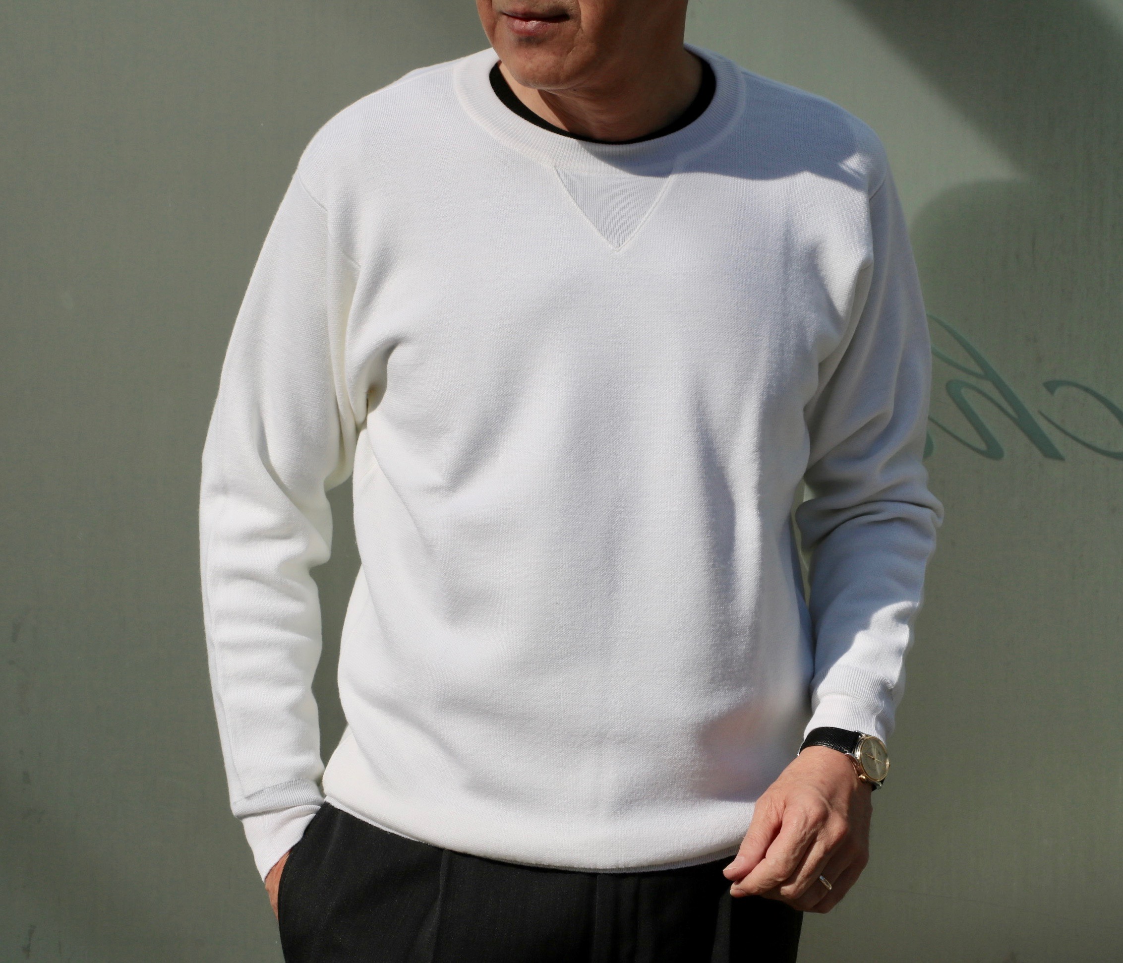 もう一つ、気になるのが、JOHN SMEDLEY(ジョン・スメドレー)のスウェット型ニット。30ゲージのしなやかさと、ダブルジャカードの堅実さに加え、Vガゼットのスウェット感覚の気楽さ。セクシーとは、ラフであっても上品に見えること。そう言えば、行きつけのカフェで知り合ったうら若き女性。偶然、昨日お会いして、褒めていただいたのが、スメドレーの「CONNELL」。24Gゲージのタートルネックセーターのブラックをセクシーと絶賛されました。嬉しい出来事です。その後、彼にクリスマスプレゼントしたいと付け加えられましたが...