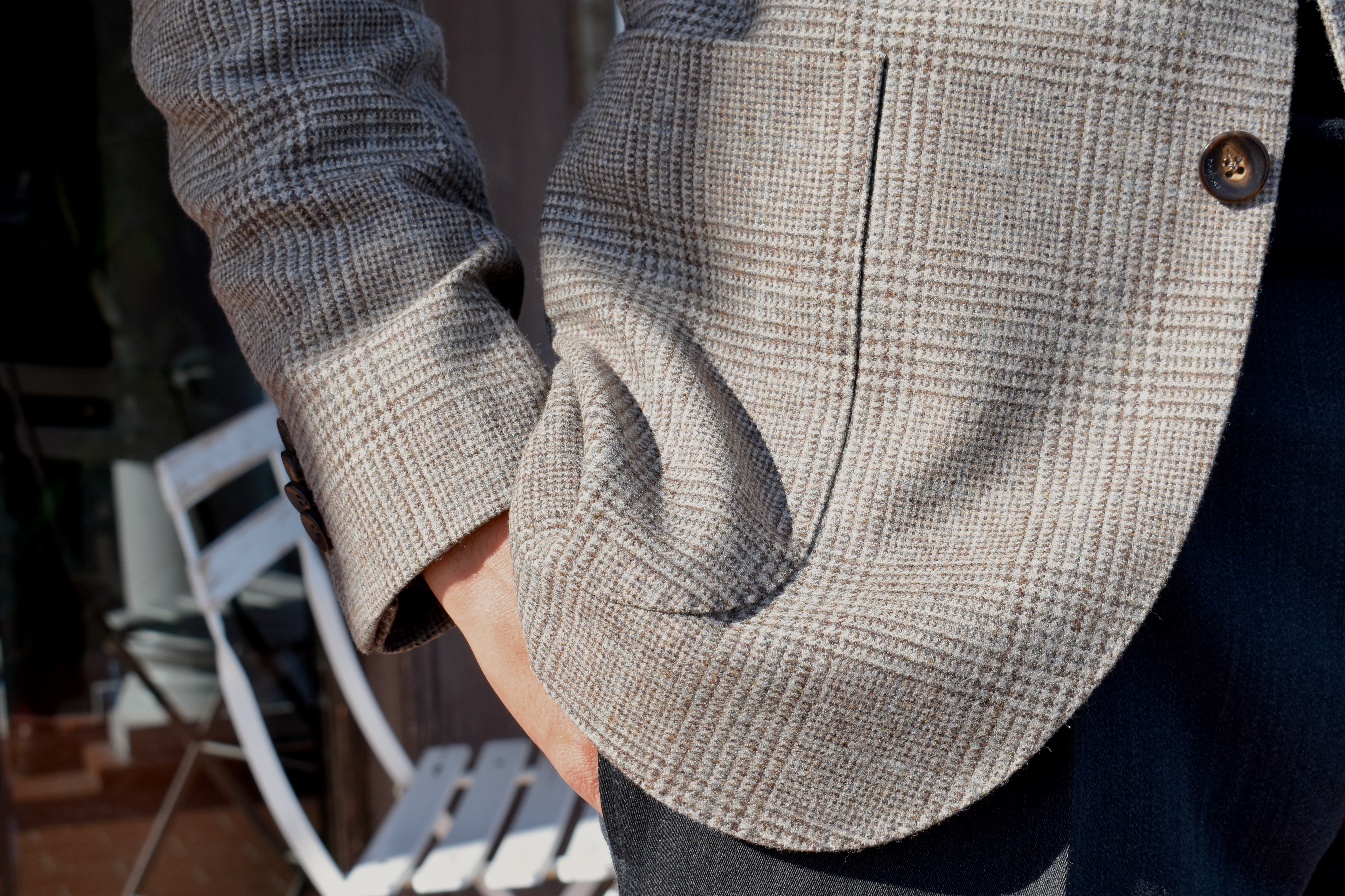 ベージュ、ブラウン系のグレンチェック柄を選びました。クラシックな3つ釦に、身体に吸い付きすぎないナチュラルなフォルム、短めではない着丈感が、ボリオリに魅力を感じた理由です。加えて、ボリオリ好きのオーナー・スグルがよく言っているのは、ボリオリの持つ都会的な雰囲気。ミラノのブランドだけあって、確かに...です。ずっと、職人気質なナポリのジャケットに傾倒していましたが、個人的な今の気分はボリオリです。そして、今季のラインナップは、特に魅力的な生地が多い。皆さんにとっても、今ボリオリを選ぶきっかけになれば...長いと思いながらも、想いそのままに綴らせていただきました。