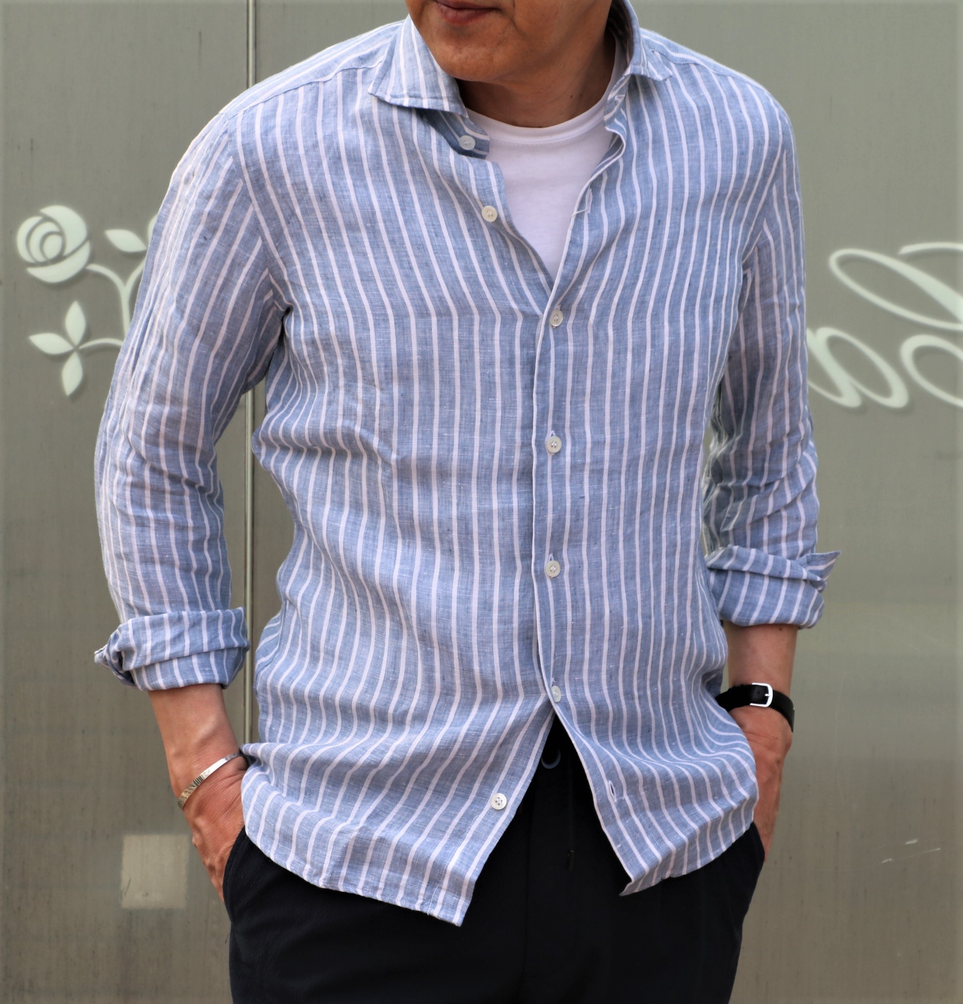 気温の上昇により、ご紹介気分が盛り上がったのが、【Massimo d'Augusto/マッシモ ダウグスト】のリネンカプリシャツ。