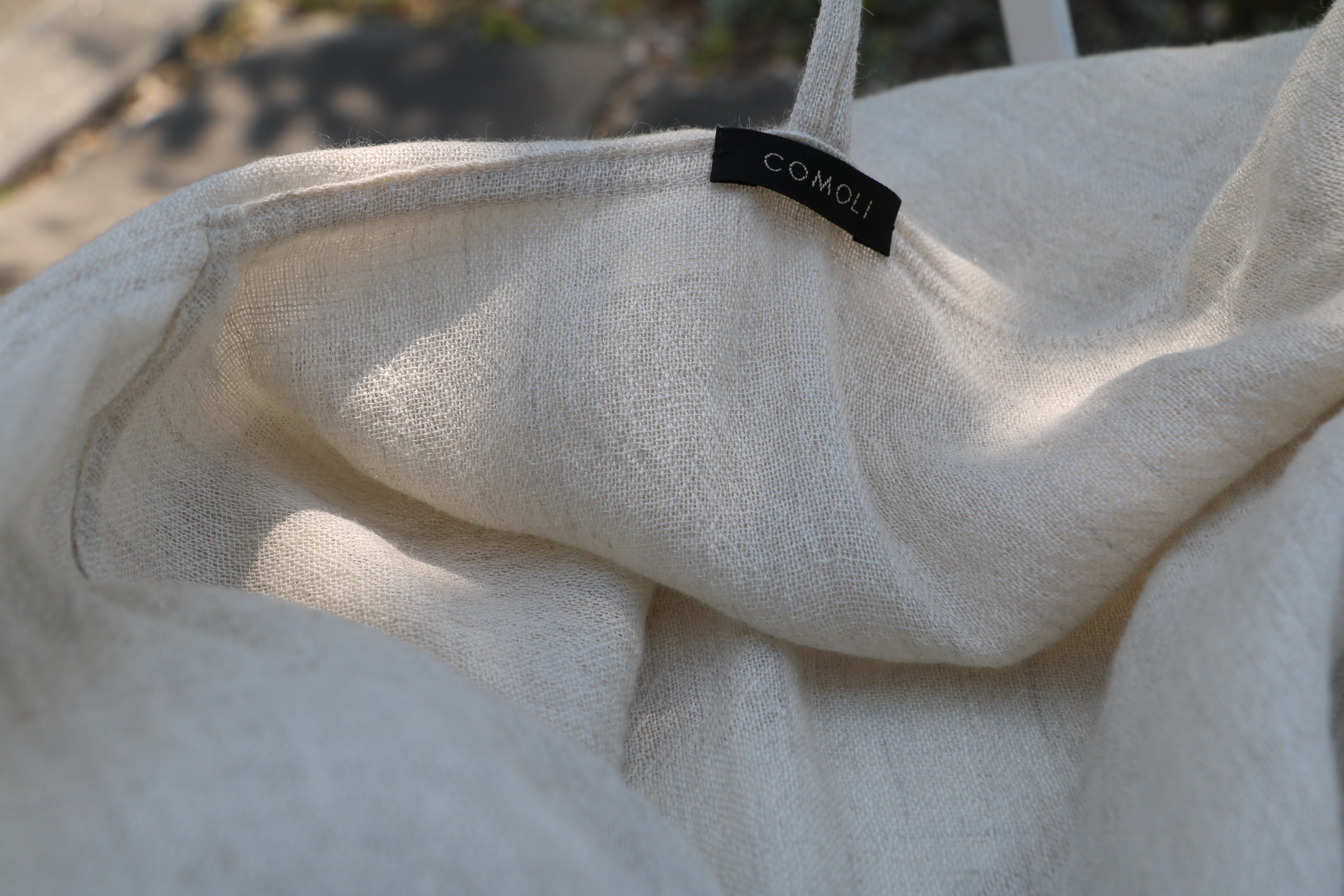 MODEL:COMOLI×norlha ストールフーデットカーディガン