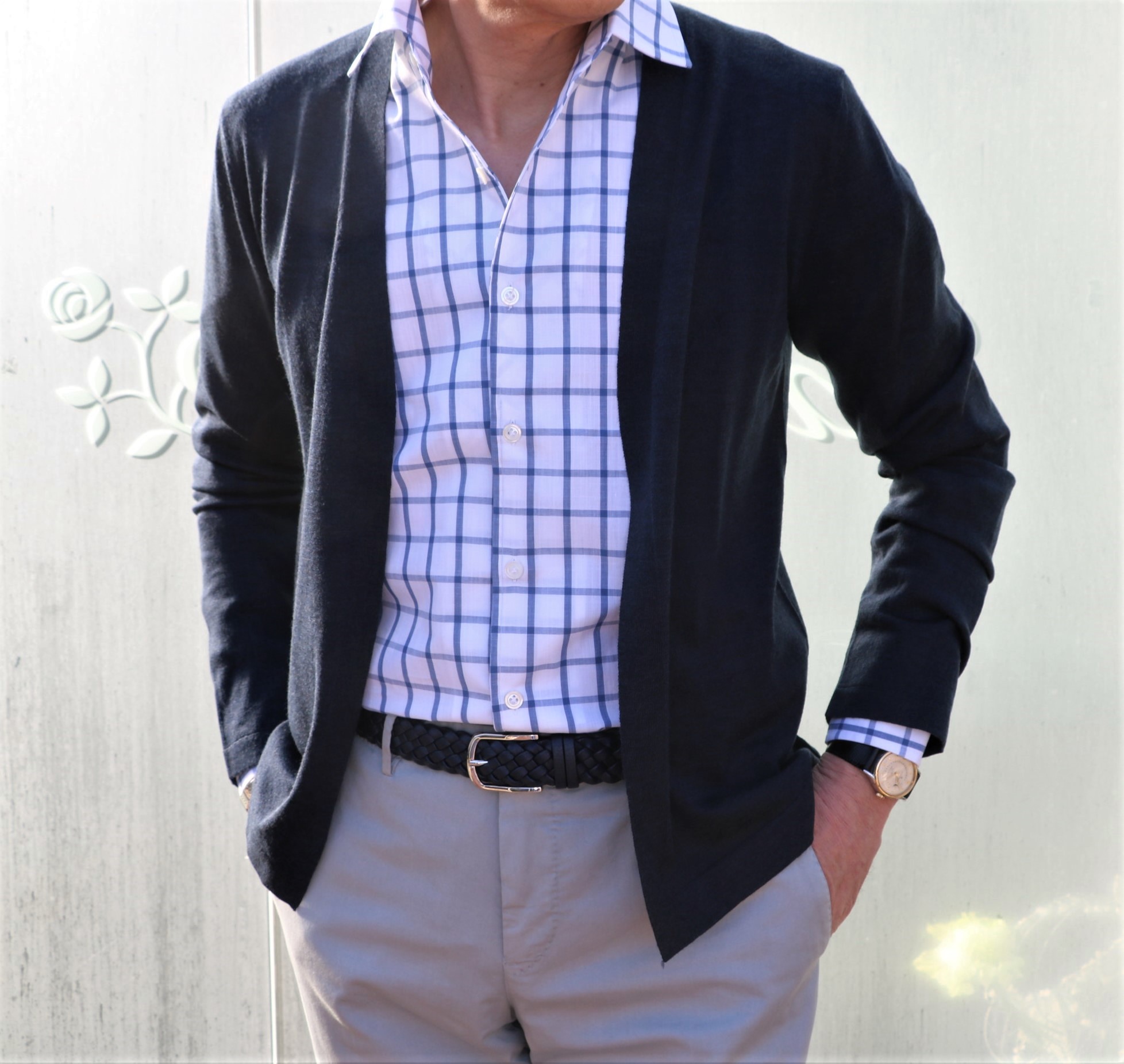 合わせているパンツは、INCOTEX(インコテックス)の「コットンシルクマイクロチェック柄ストレッチパンツ」。一年早かったかなと思わせるインのツータック仕様は、今季の方が気分でしょうか。靴は3代目として手に入れたSpring Court(スプリングコート)のG2です。