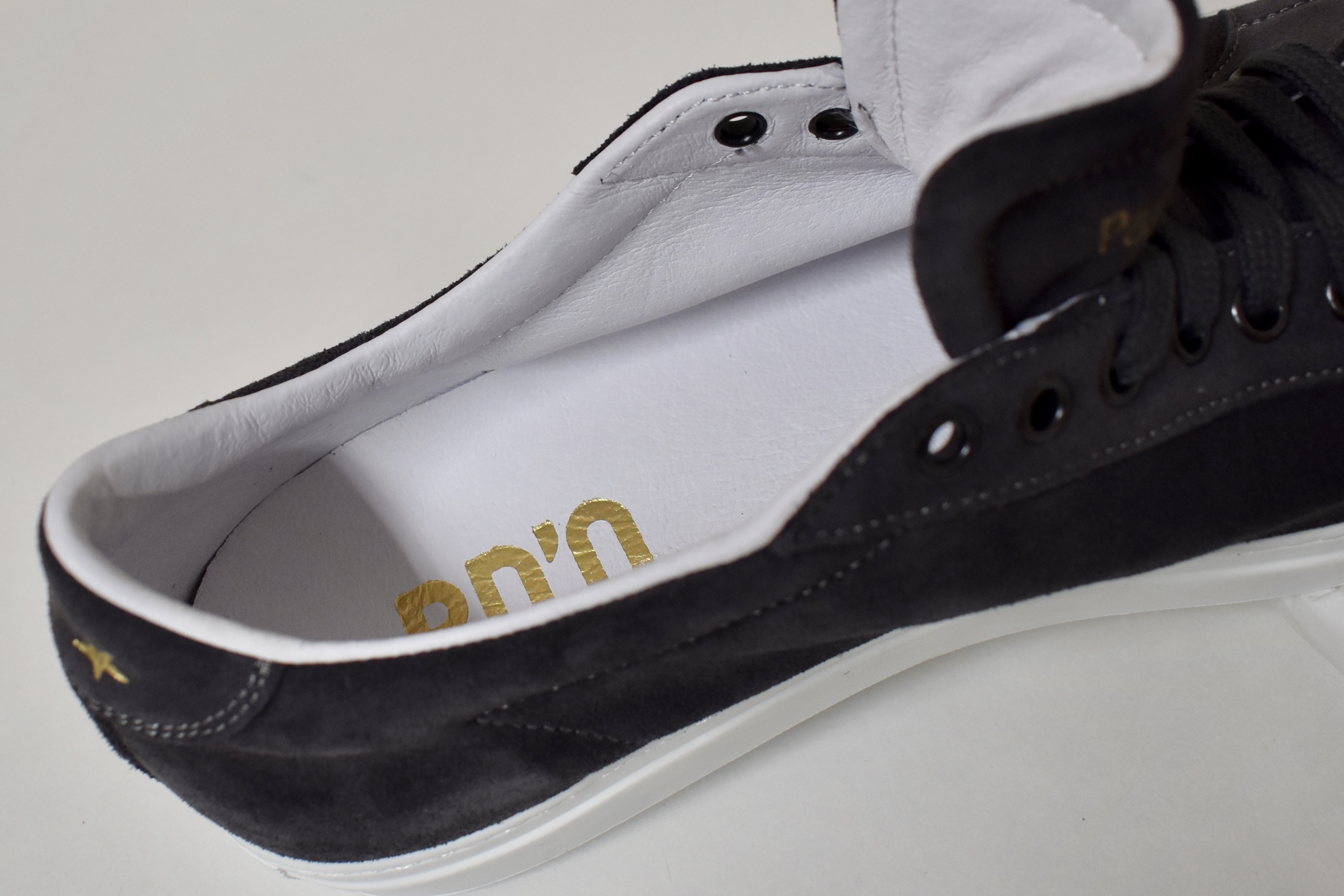 最後にディテールのお話です。ライニングまで惜しみなくレザーを使っております。これからは、インビジブルソックスを履く機会の増える時期。しっとりとした肌当たりの良さを感じていただけるはずです。加えて、立体的に成形されたインソール。特に土踏まずが盛り上がっています。「凄く履きやすいスニーカーですよ〜」とお勧めするパントのスニーカー。これらの細かな作りが、履きやすさの実現に一役買っています。