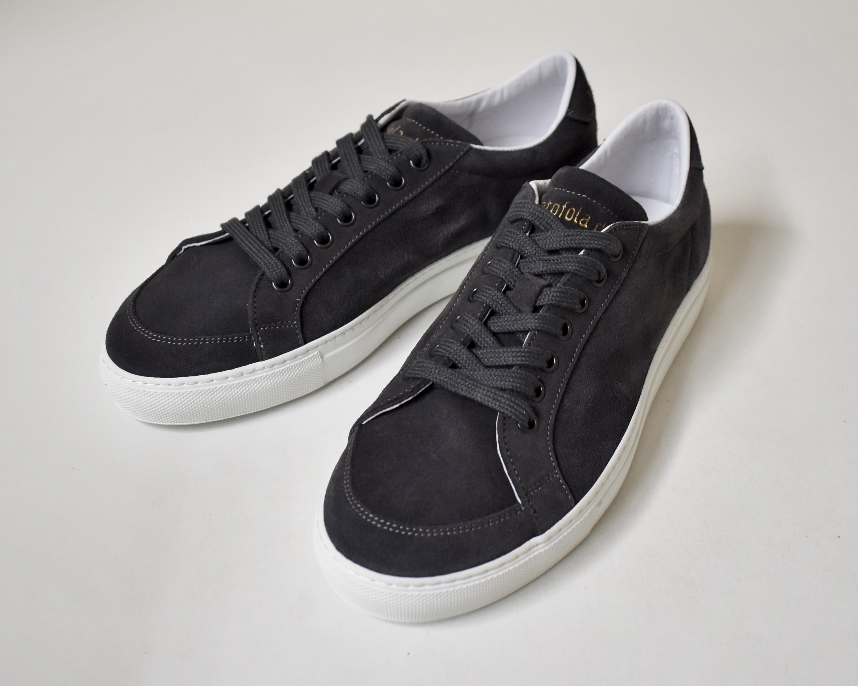 カーフレザーのスニーカーとなると、白と同等に魅力的な選択肢になるのが、ブラック。艶のあるその表情は、ラグジュアリー感があり、足元も引き締まります。履き込んでいくうちにシワが刻まれ、更に魅力的な顔つきへと変わってゆくことでしょう。