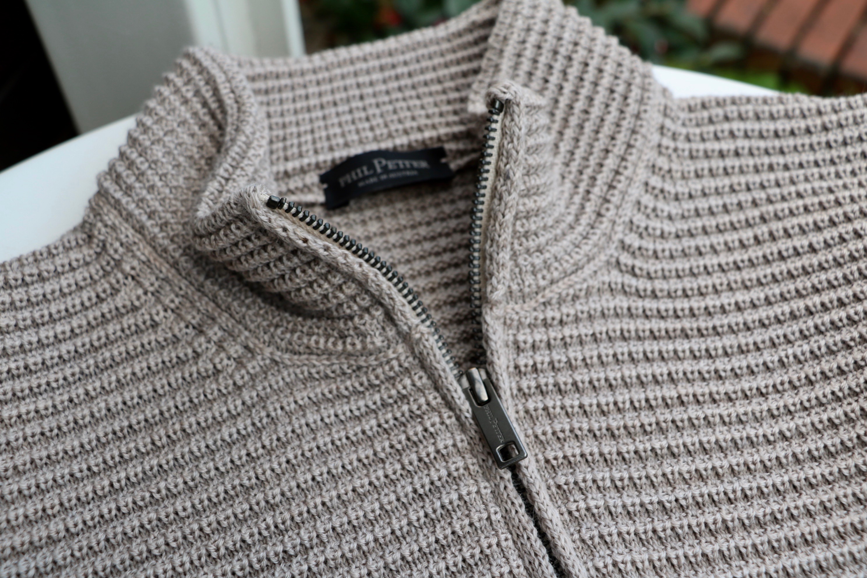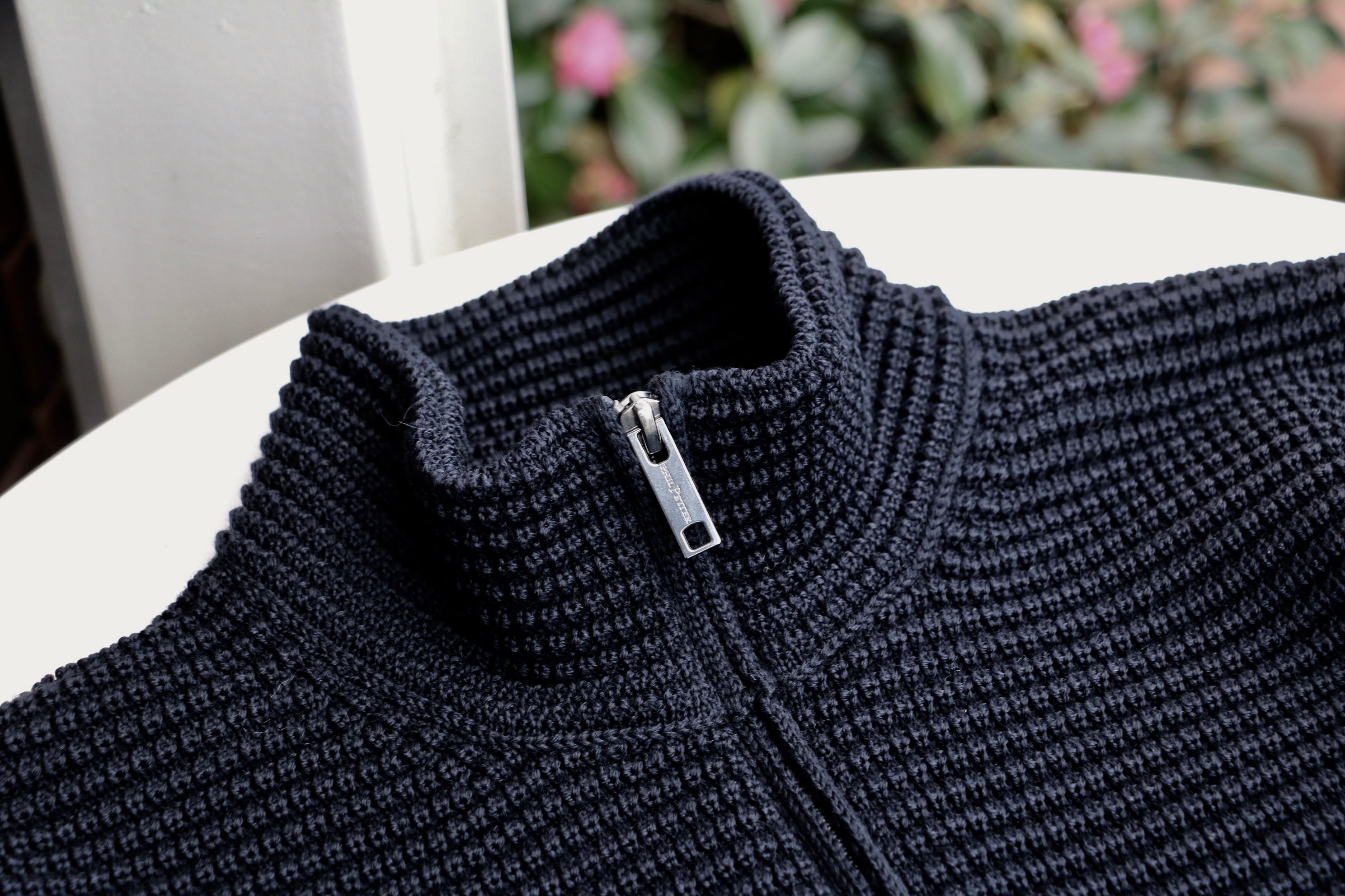 ラーベン編みによる立体感を楽しめると同時に、身頃と裾や袖口の切り替えのない一体感のあるzip-upニット。色目も素敵です。ややピンクを帯びた明るいベージュのベージュローゼに、最近、変わったフランス国旗に見るダークネイビーの2色をセレクトです。他のニットブランドにはない表現力で服好きの心を掴んでいる【PHIL PETTER/フィル ぺター】。私たちの品揃えに新しい風を吹き込んでくれています。