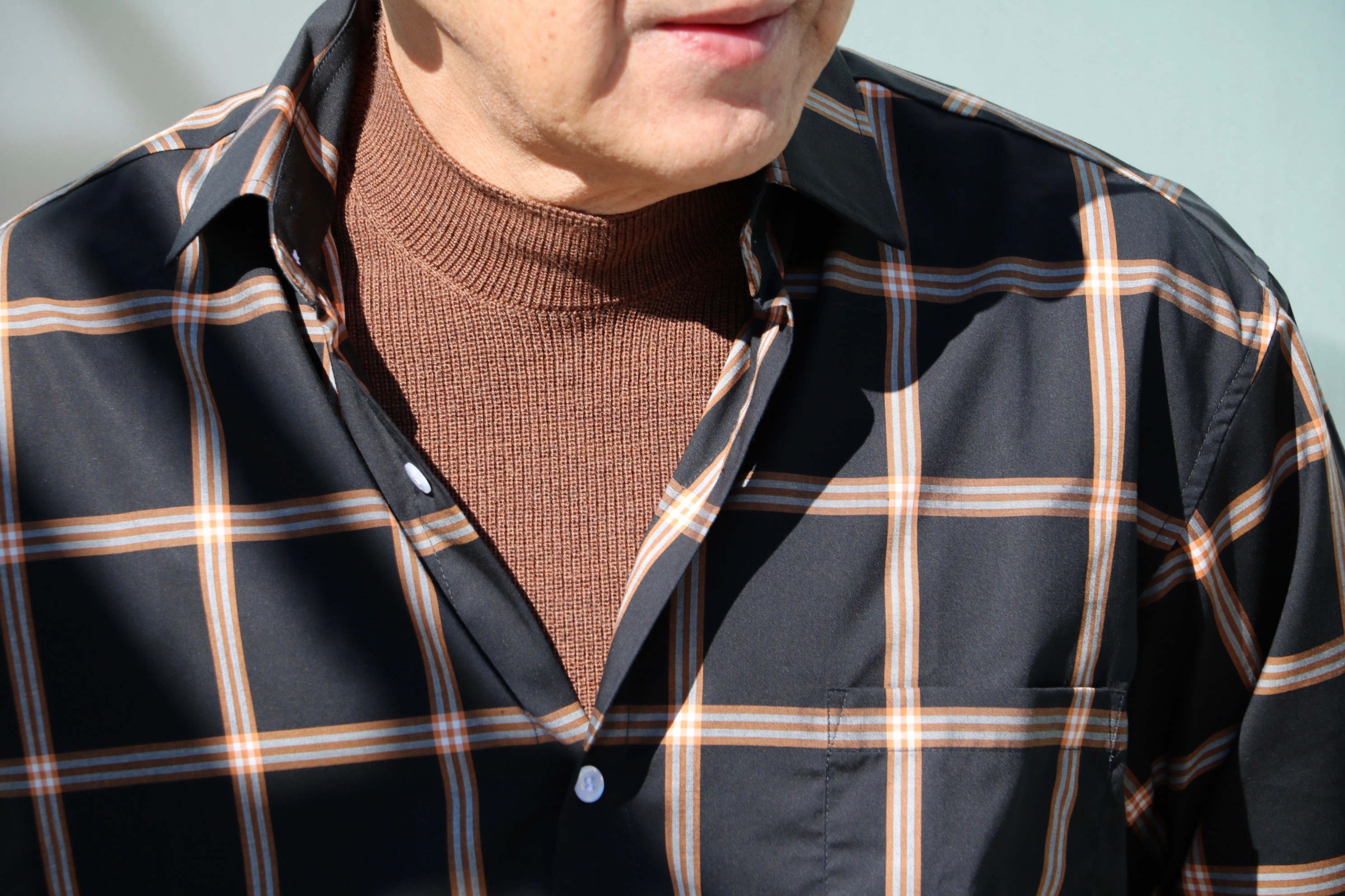 伝統柄のグレンチェックも、シルクが入ることで鮮やかな発色のクリアな印象に。ボリュームも抑えられ、首まわりを軽快に見せてくれます。