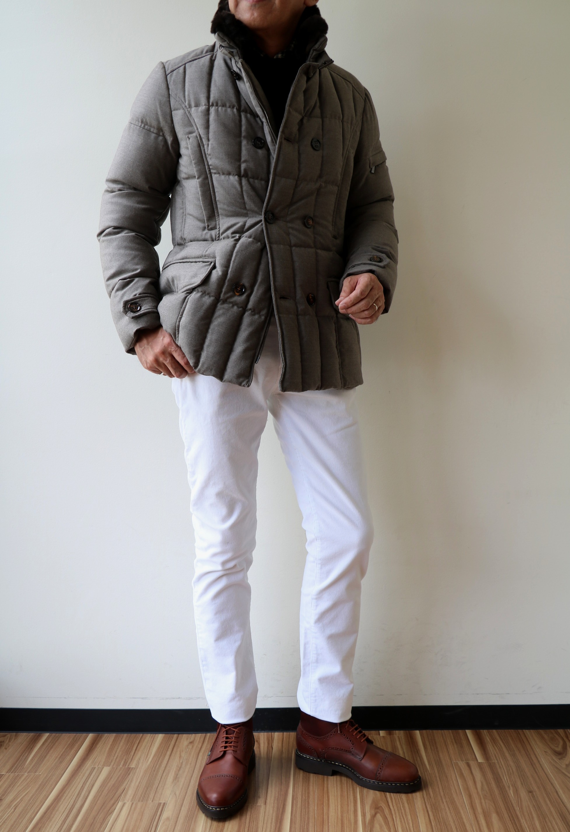 MooRER(ムーレー)の「SIRO」に合わせていたのは、コットンストレッチのコーデュロイパンツ。流行とは関係なく、冬の素材として、必ずセレクトしているコーデュロイ。夏で言えば、コードレーンやシアサッカーのような存在でしょうか。今季の注目度が上がりそうです。