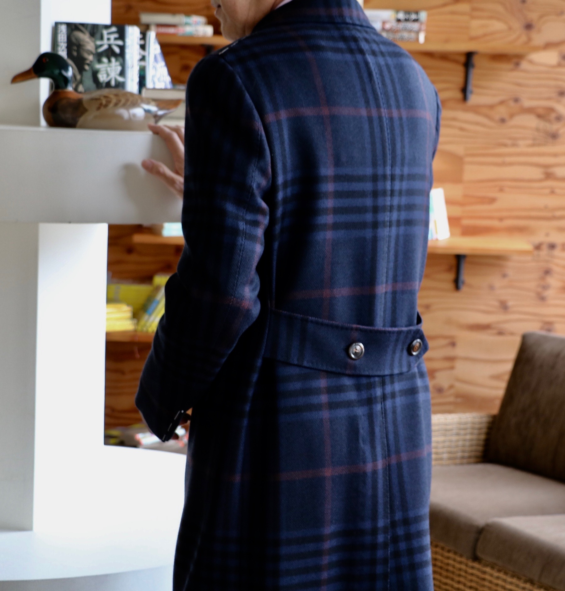 コートの生地選びは、随分、悩みました。無地ではつまらない、かといって私の好みばかりだと偏ってしまう...。そんな思考が彷徨う私の隣で、しっかり着込んで鏡に映る自分にうっとりしているジュニア。このパターンはまずい状況です。ただ彼の「高価だし、今回はやめておいたら」の声で、オーダーすることにしてしまいました。サンプルはブランド側からの提案。言い換えれば【Stile Latino/スティレ ラティーノ】一押しのコート。素敵すぎるに決まっています。