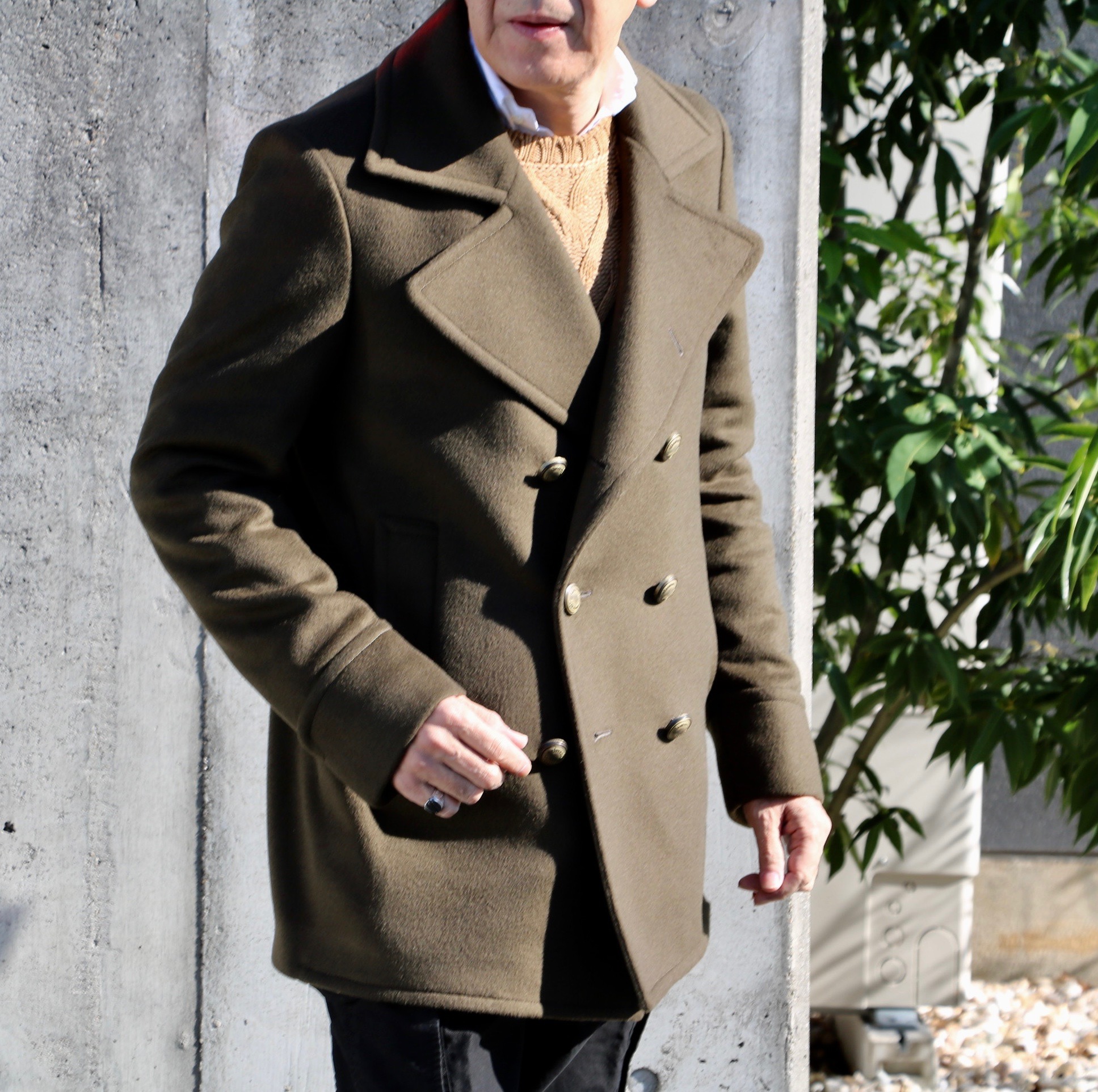 こんな感じで写真に収めたのは、Pコート、いやアルスターコートかポロコート。いやいや、いろんな要素が組み込まれたリーファーコートです。あるいはPコート風というのが、わかりやすいかもしれません。
