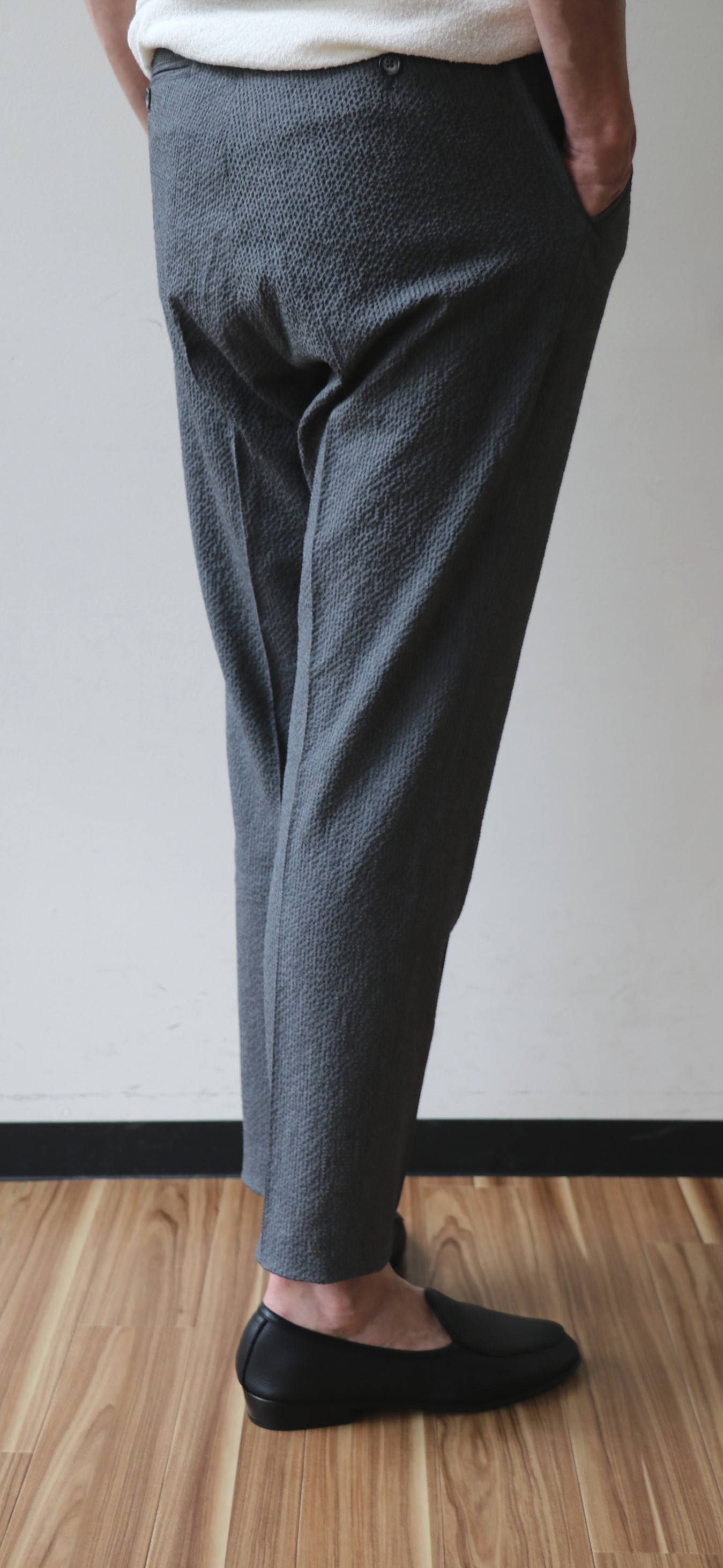 MODEL:「CHAD」シアサッカー地シャーリングパンツ