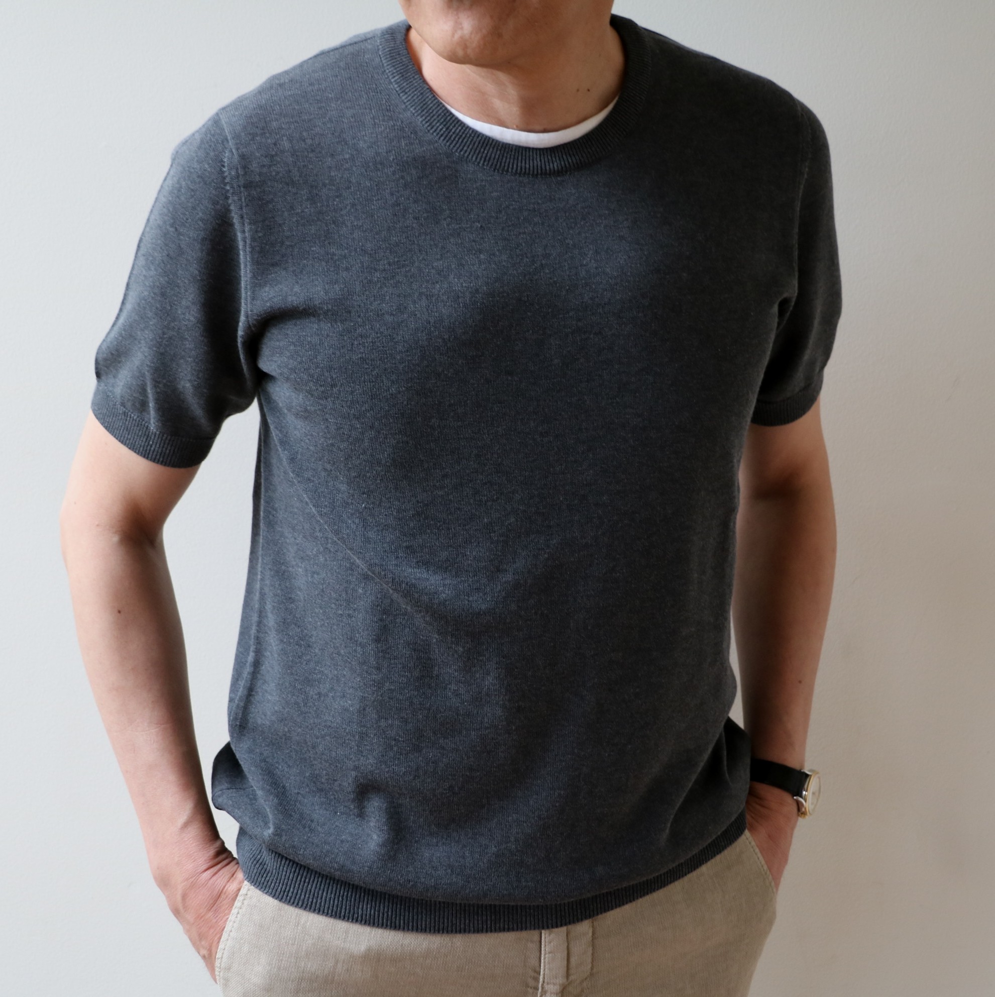 MODEL:12Gドライコットン半袖クルーネックセーター