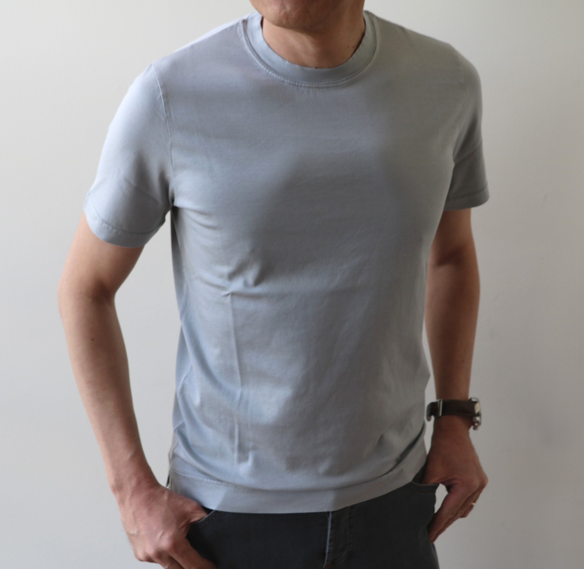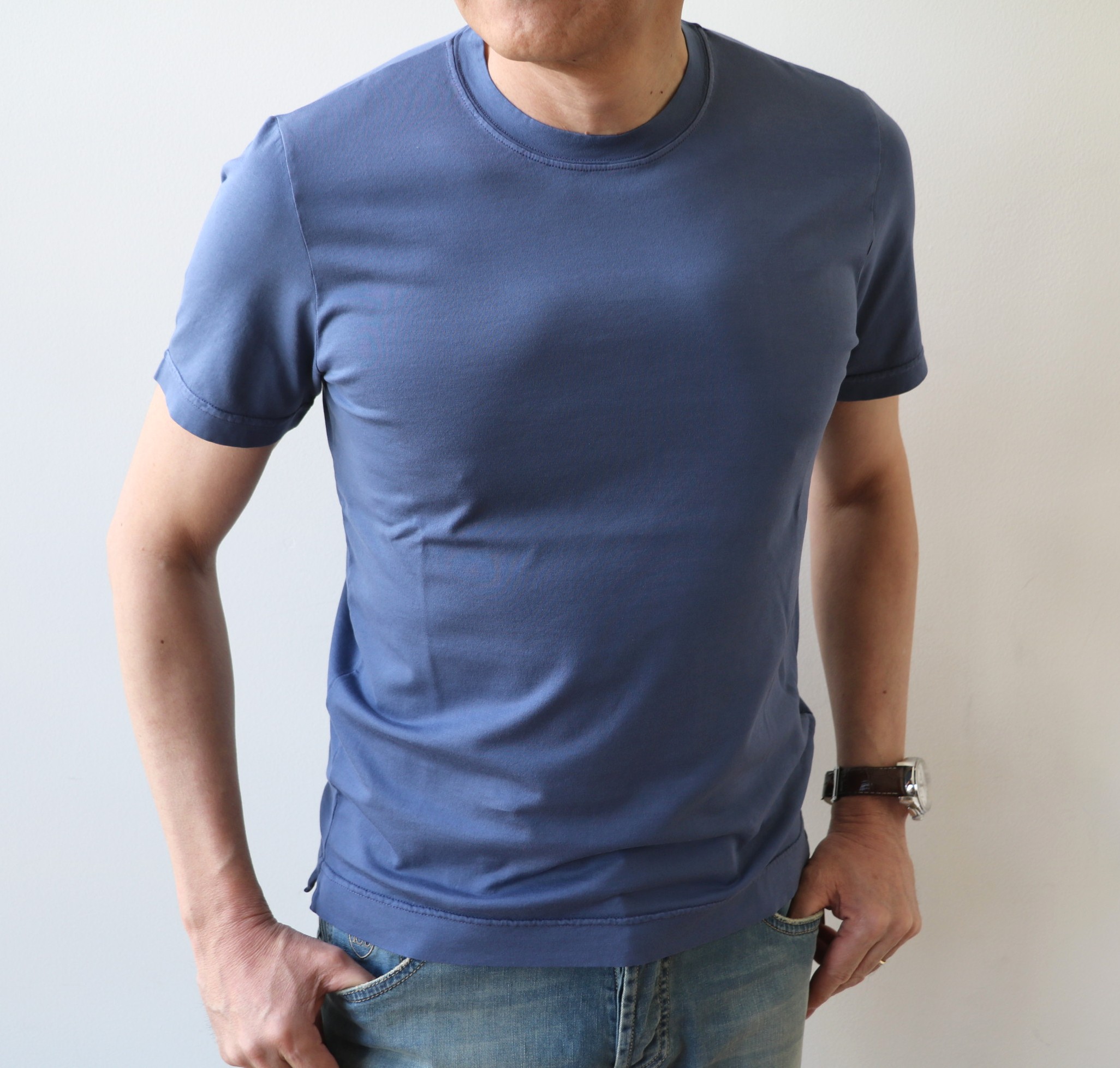 エジプト綿の「GIZA45」から「GIZA87オーガニック」に変更された半袖Tシャツ。その違いはと言えば、Lighter Comfort。肌触りの良さはそのままに、より軽い着心地です。フィットモデルは、JAPAN FITが継続されたことで、コンパクトなフィッティング。カラーは、ホワイトの他、ミディアムからライトなトーンでセレクトしております。