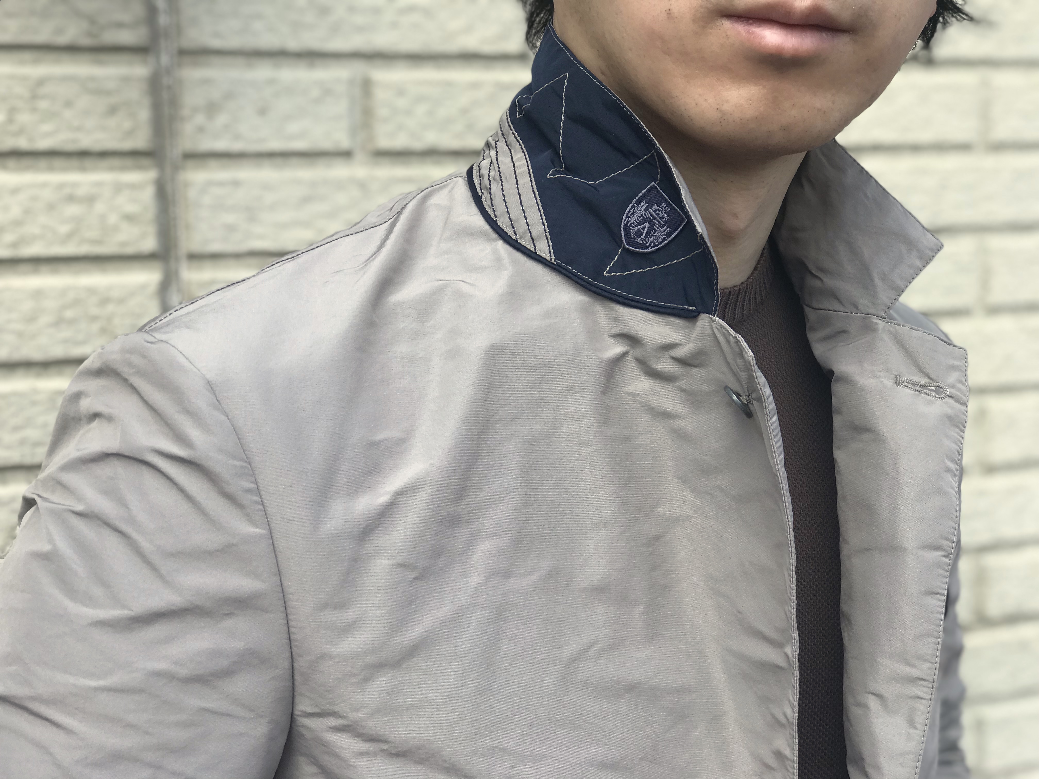 ここからは、タカイがご案内する【AQUARAMA/アクアラマ】。コートとブルゾンを1型ずつご案内します。