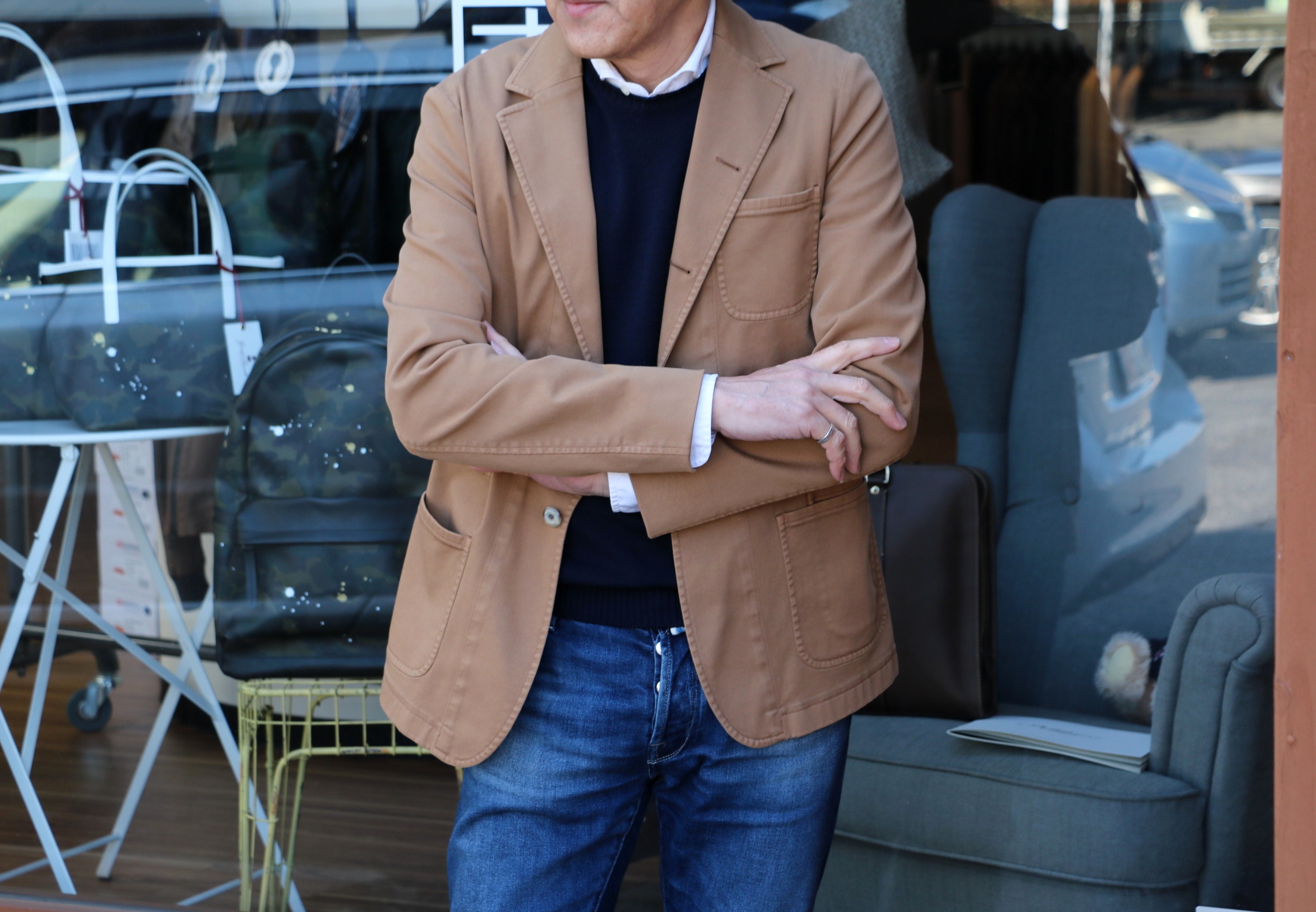 本日の出で立ちに羽織ったのは、新作のBOGLIOLI(ボリオリ)...と、ご案内していきたいところですが、お許しください。実は、本日予定していたのは、初登場のシャツブランド【Maria Santangelo/マリア サンタンジェロ】なんです。残念ながら、準備不足です。明日のご案内に延期させていただきます。その代わりではありませんが、昨夜、SUGURU blogを更新をしております。宜しければ、そちらに立ち寄っていただければ幸いです。尚、蔵庫/magazzino blogは、マスヤマが人気の【Giannetto/ジャンネット】をご紹介しております。ぜひ、ご覧ください。