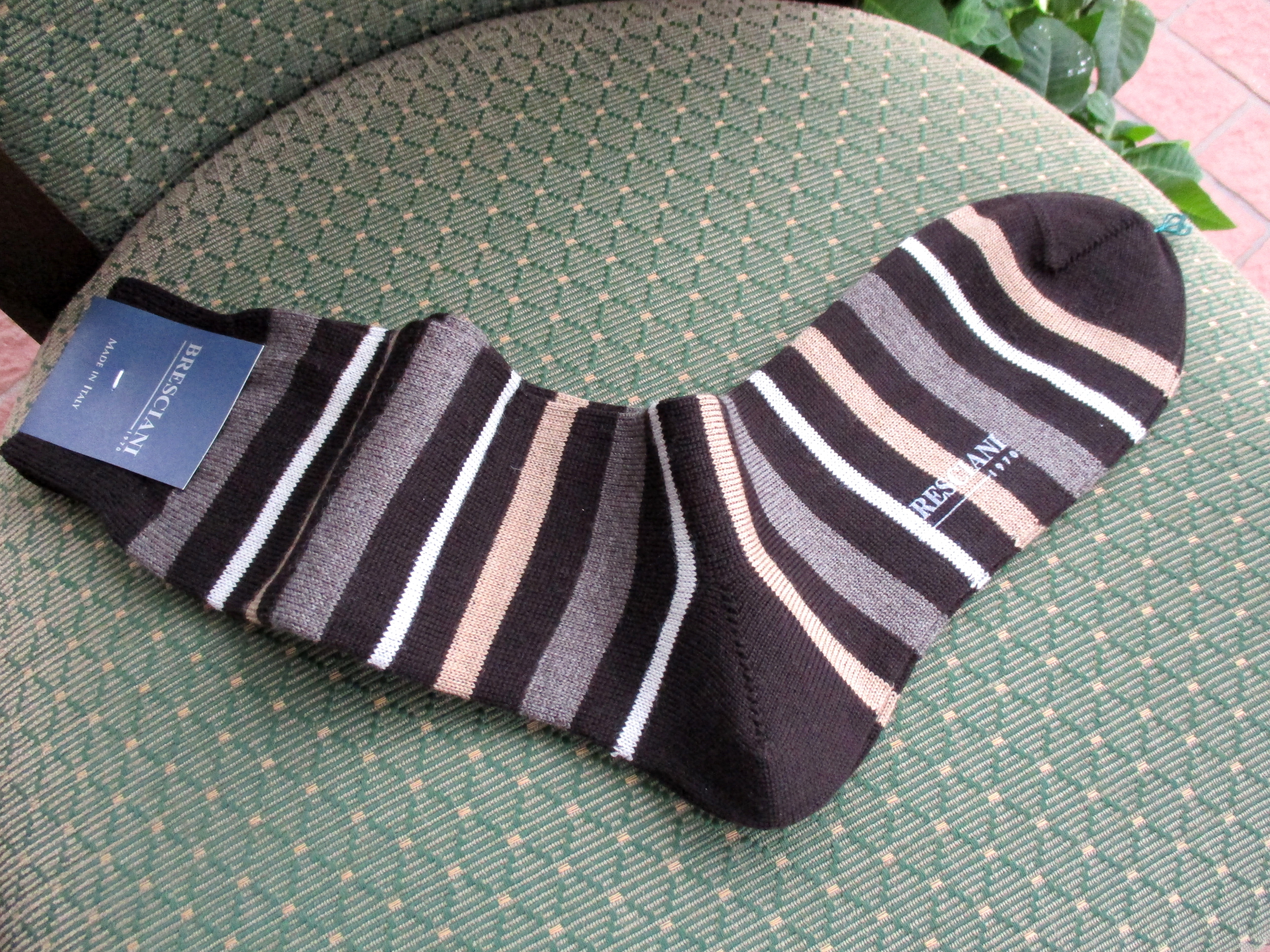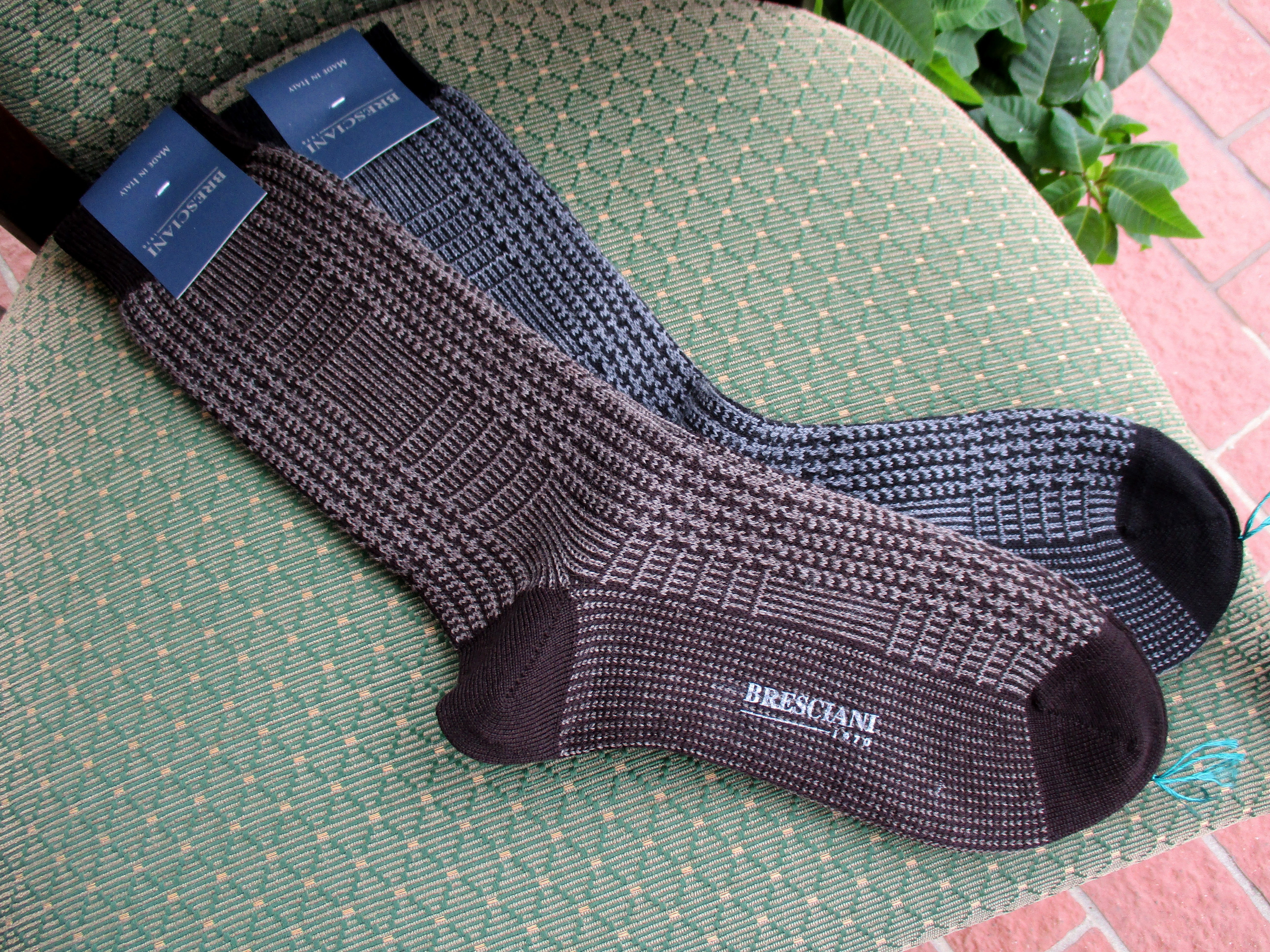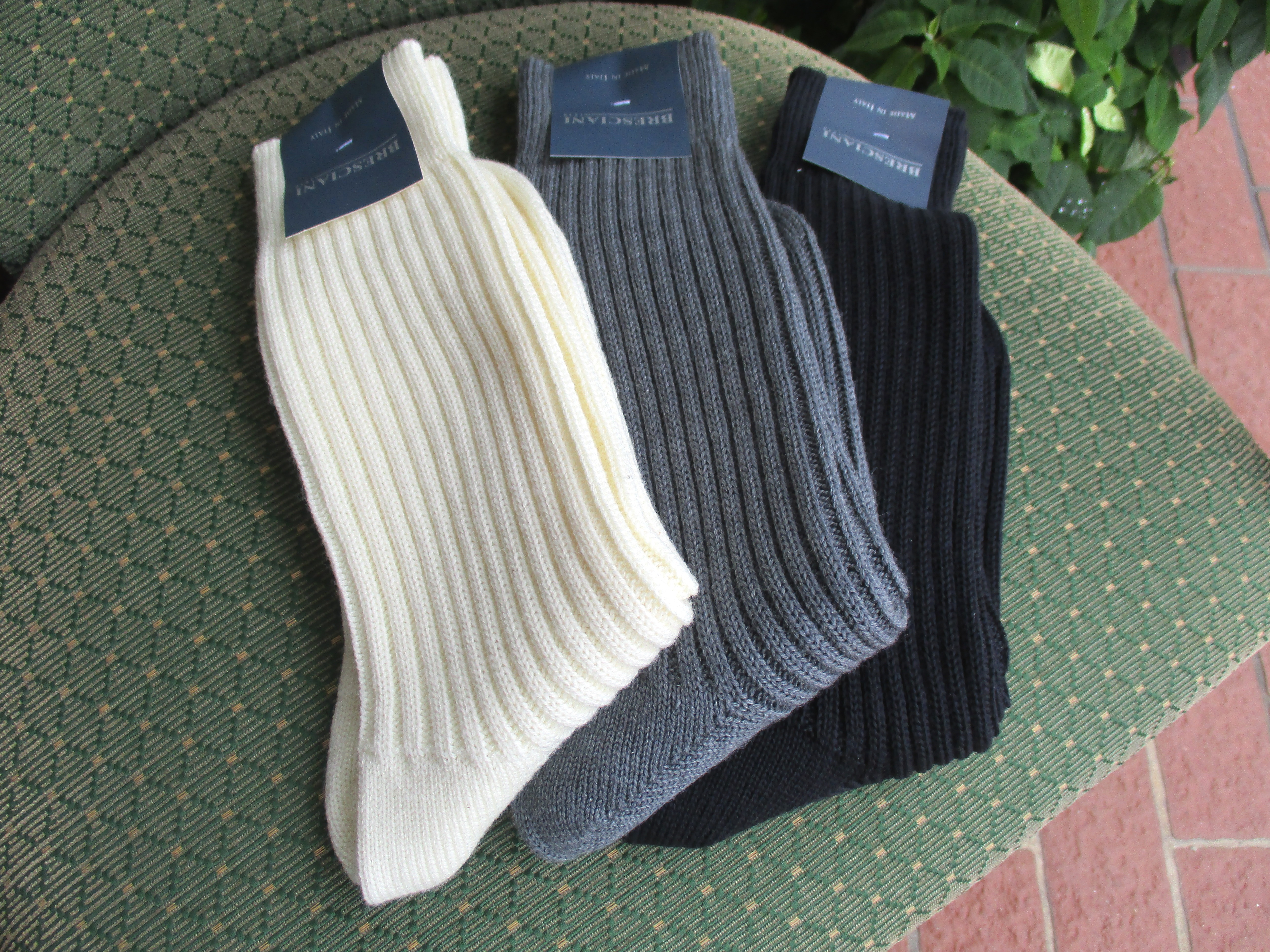 いや、話が逸れました。今回、足首を温めてくれるのは、こちらも初登場の【BRESCIANI/ブレッシアーニ】。1970年、イタリア・マントヴァで創業した高級靴下メーカーです。ベルガモの自社工場のみで全て生産し、オーダーメイドのような、足に吸い付くような穿き心地を提供。内緒ですが、エルメスやプラダなどのOEMも手掛け、有名な専門店、百貨店での取り扱いも多く、世界中で名を馳せている靴下ブランドなんです。