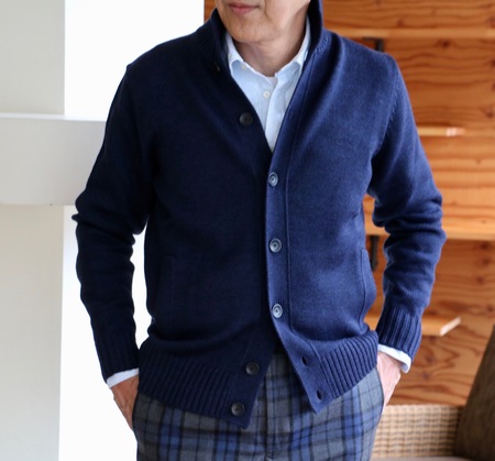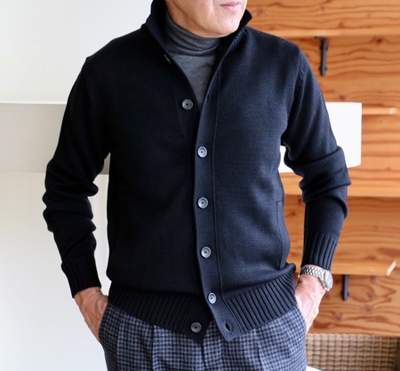 なぜか写真がフラフラ。カメラマンは?ジュニアでもマヤさんでもありません。技量の差?いや、個性とでも言い換えましょう。セレクトする際、ネイビーを外せば必ずリクエストが、ブラックを外せば「しまった!!」と必ず後悔する、似て非なる2色なんです。そういえば、私もそれぞれの色目をサイズ46と48で2枚ずつ持っていました。古い方が48、新しいのが46。ここ1、2年は古い方の48を着ています。一時期、タイトな着こなしがもて囃されましたが、やはりミドルゲージはゆとりが欲しいものです。