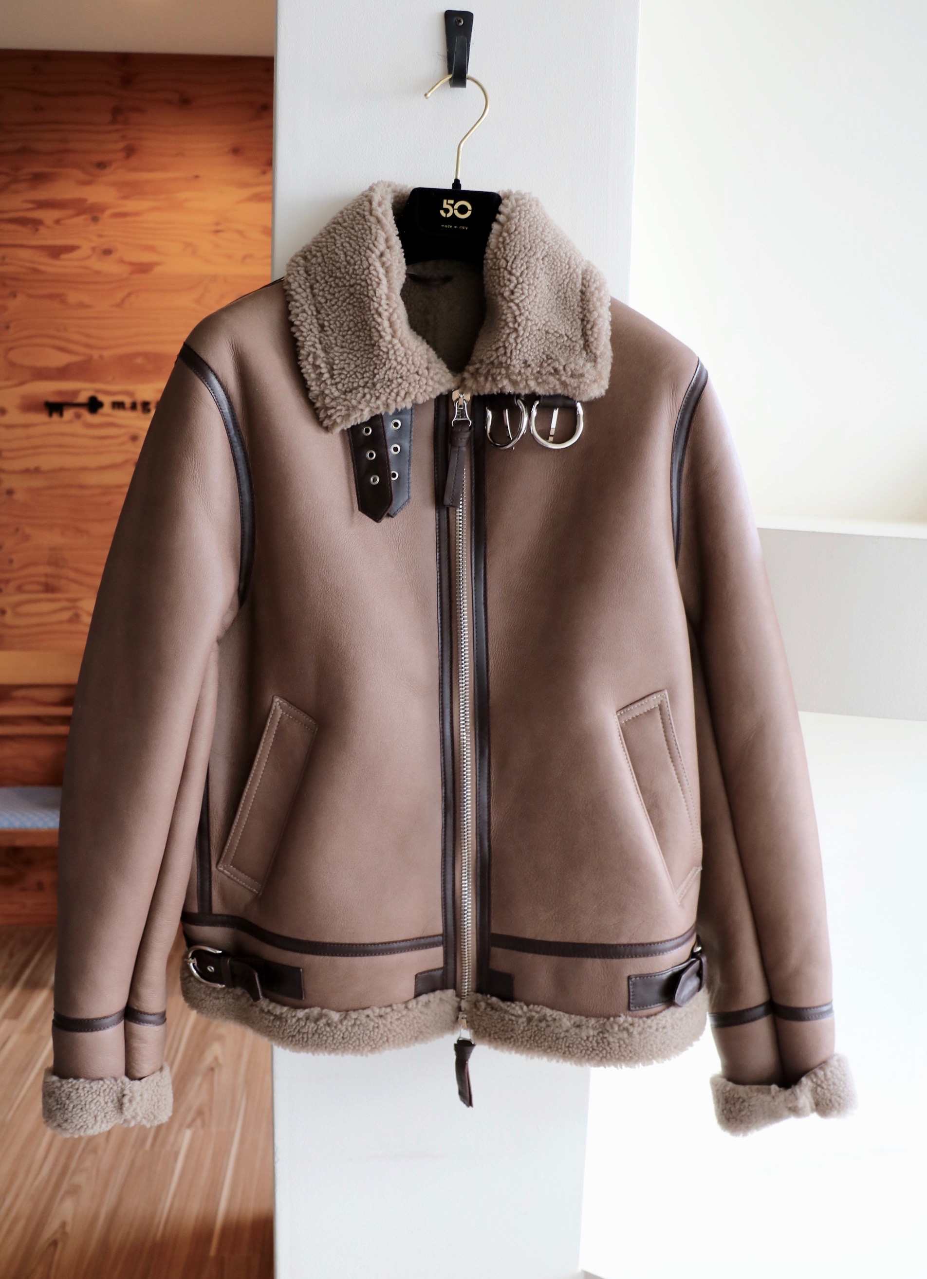 この色目は初めての展開。新色かもしれません。コルクのような柔らかな色目です。サイズバランスの良さに定評のある【CINQUANTA/チンクワンタ】。この「B-3タイプ ムートンフライトジャケット」も年々進化しているのでしょうか。最初の頃に比べると、より日本人の体型にあってきています。代理店さんの努力の成果が現れてきているのかもしれません。
