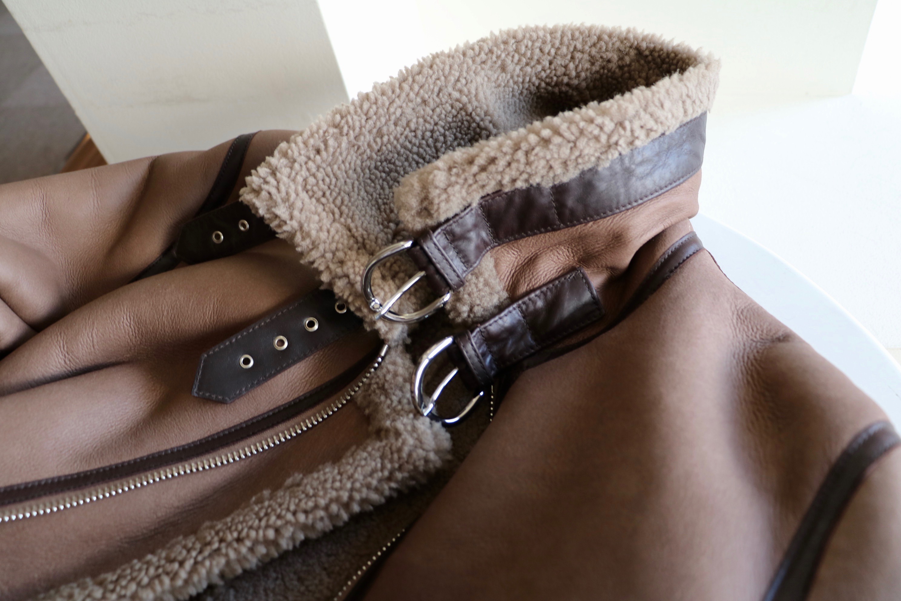 しっとりと柔らかく、手に吸い付くような手触りを持つシープスキン。こちらも着用シーズンの長いレザージャケットになります。ボアを外していただければです。