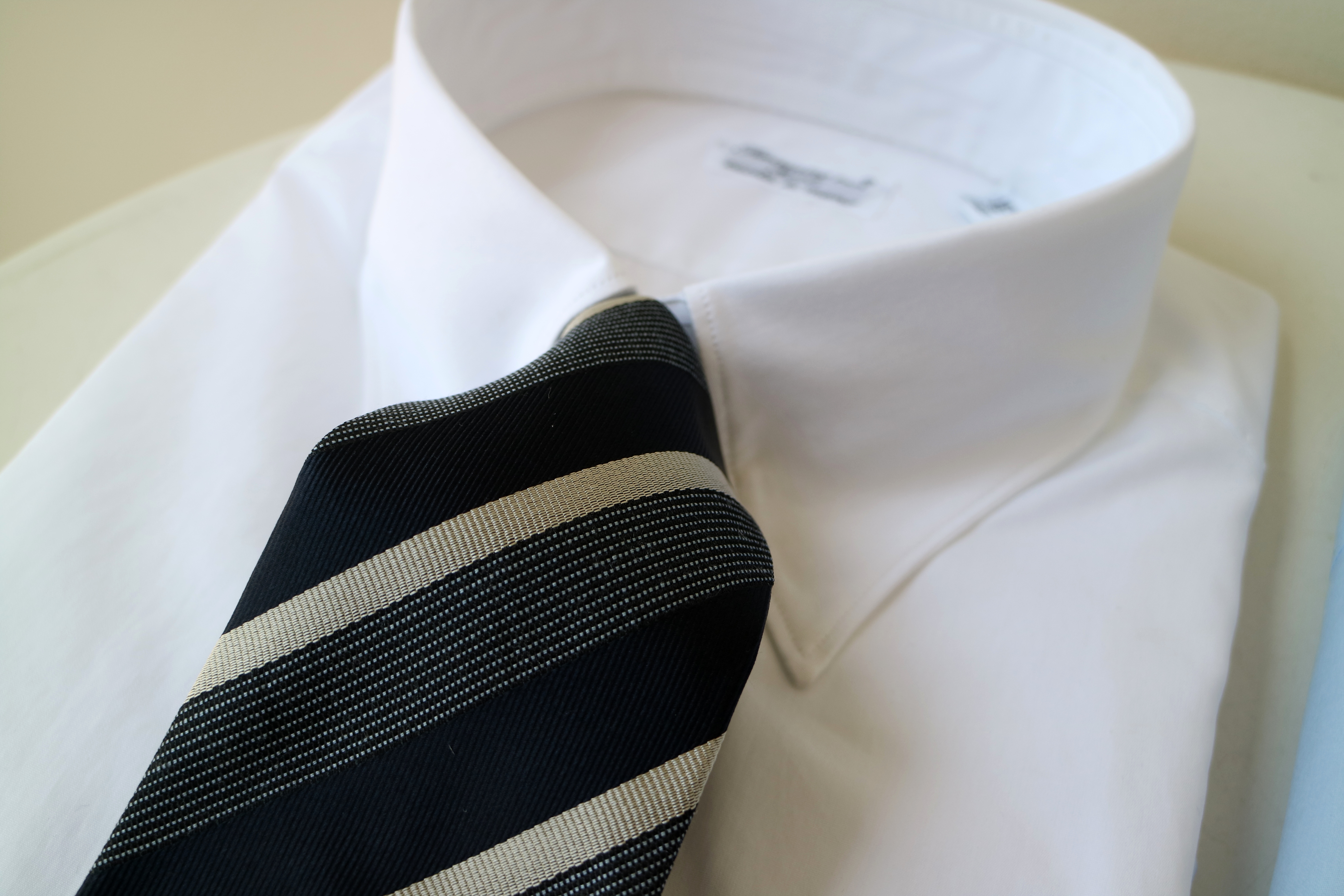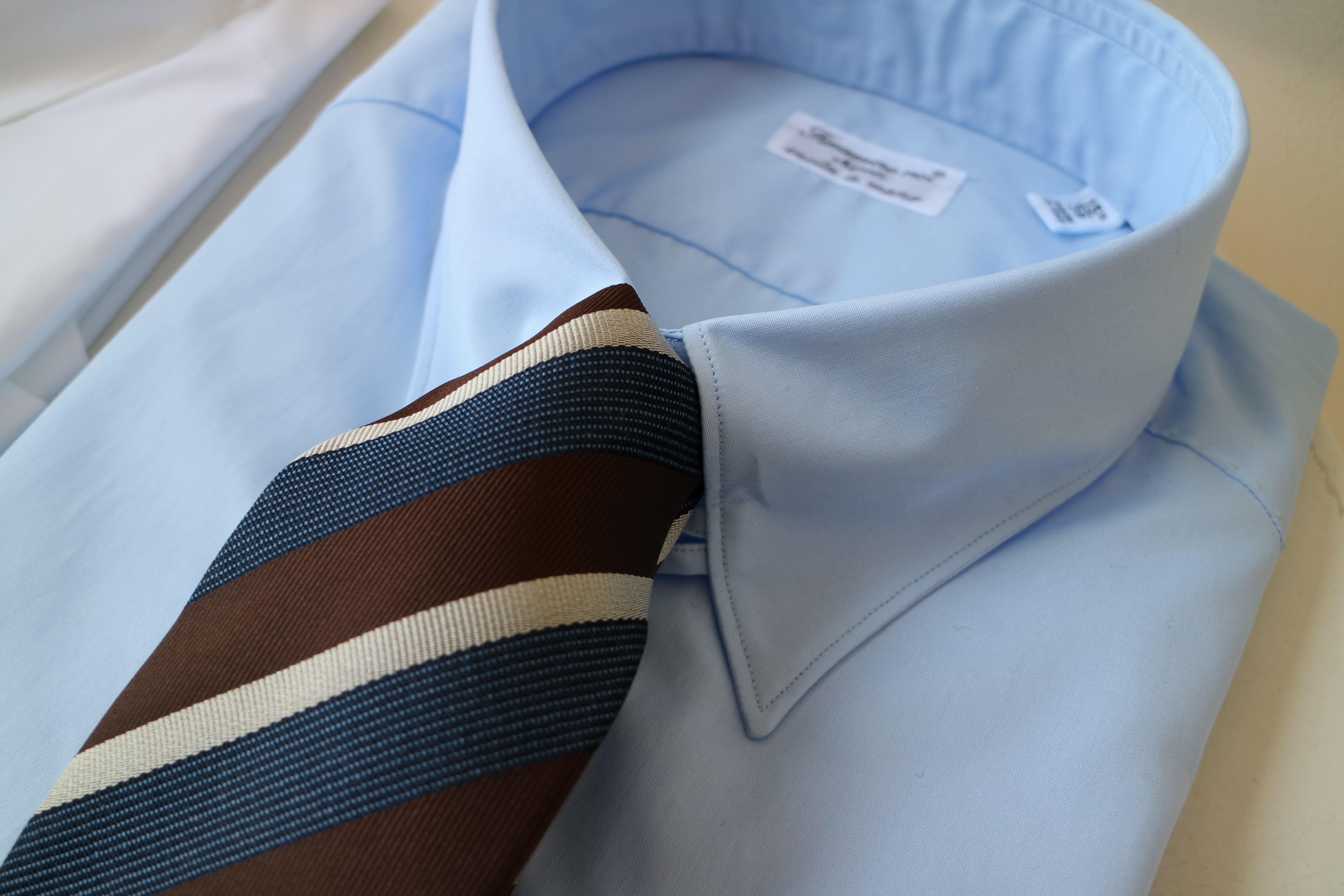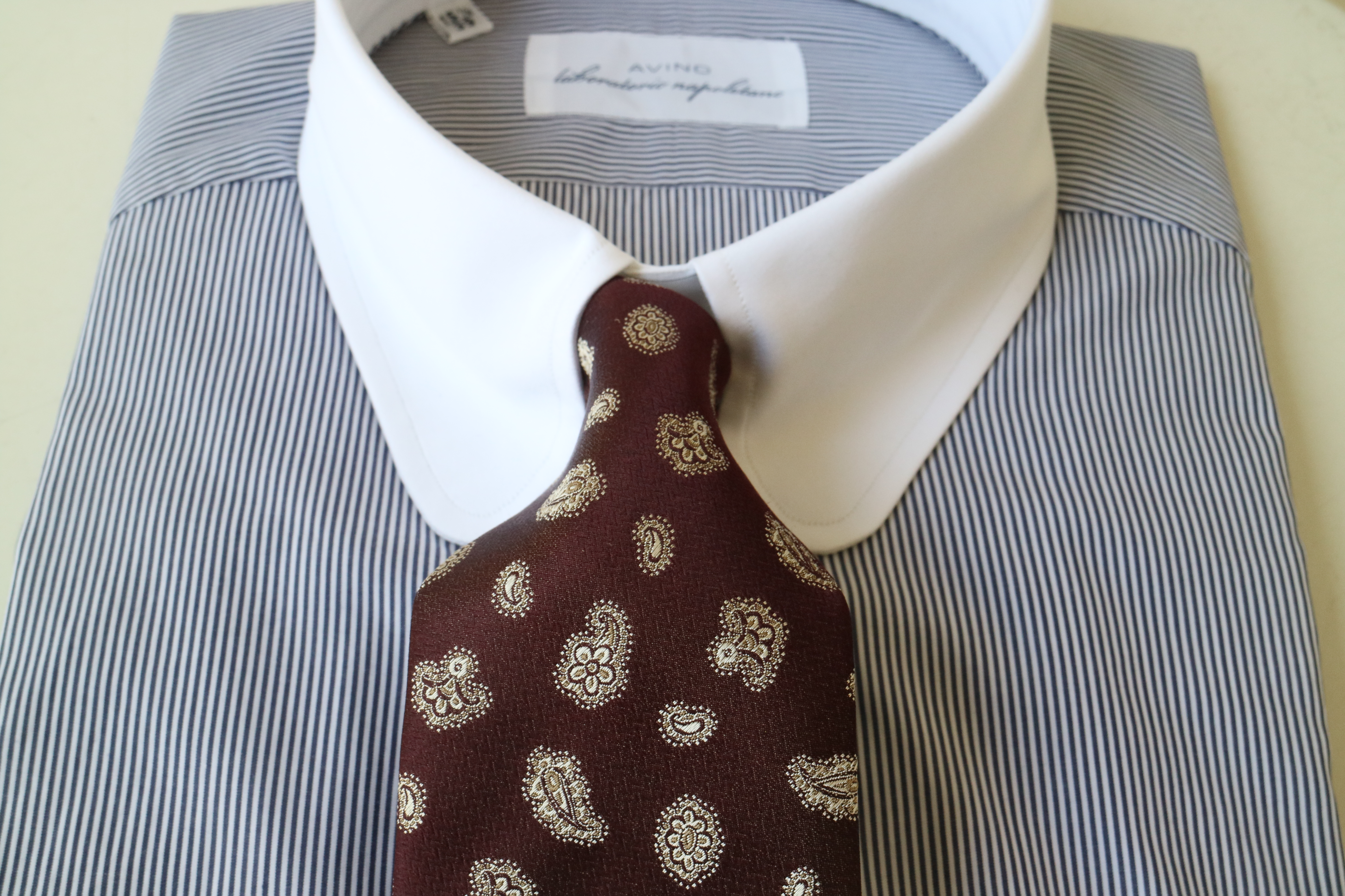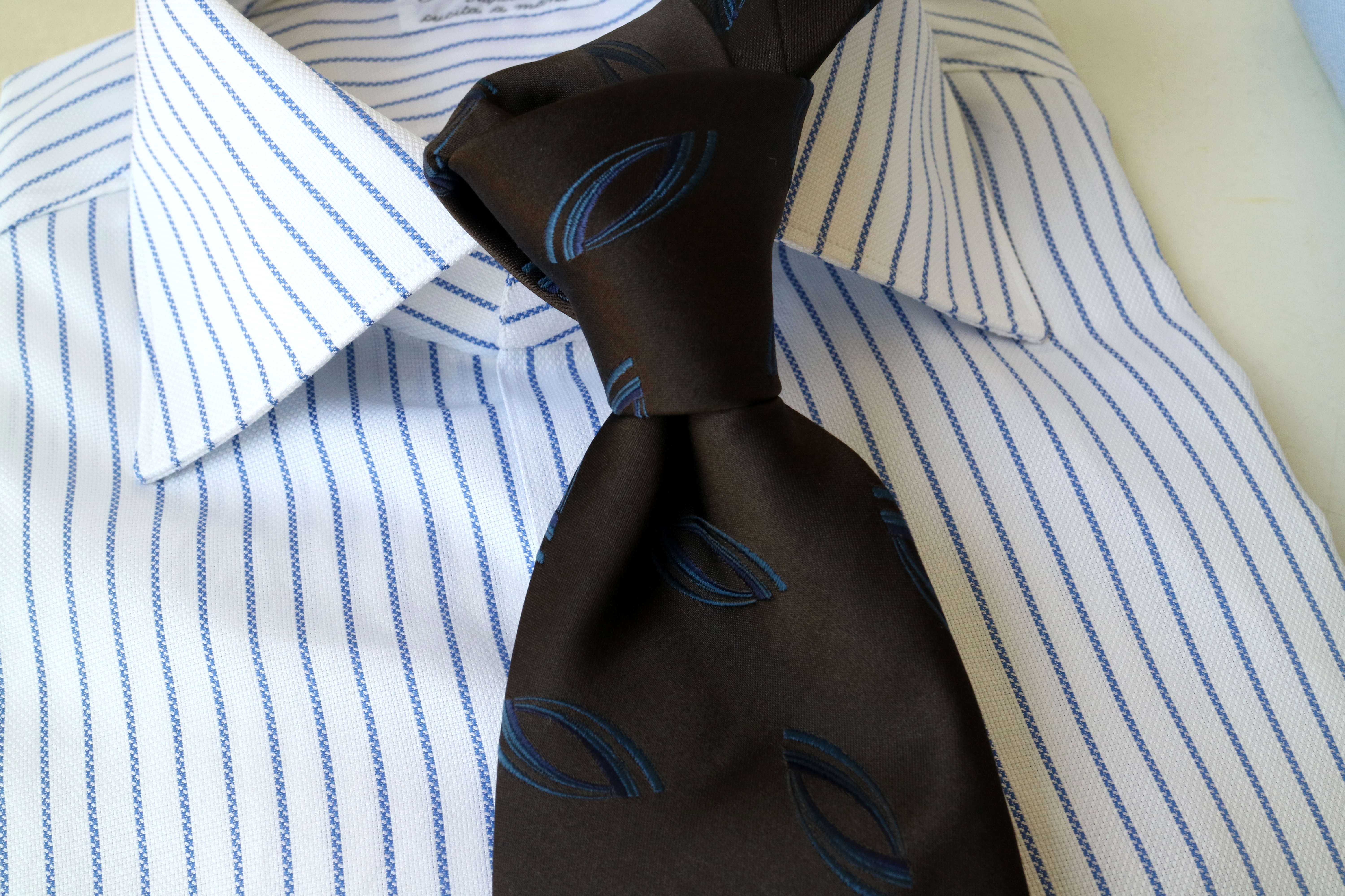 ストライプの向きを気にされる方は少ないと思いますが、雑学として聞いてください。右上がりのストライプが、本来正式なイギリス式。この向きを変えたのが、あのブルックス・ブラザーズ。たぶん、今でも右下がりなはずです。