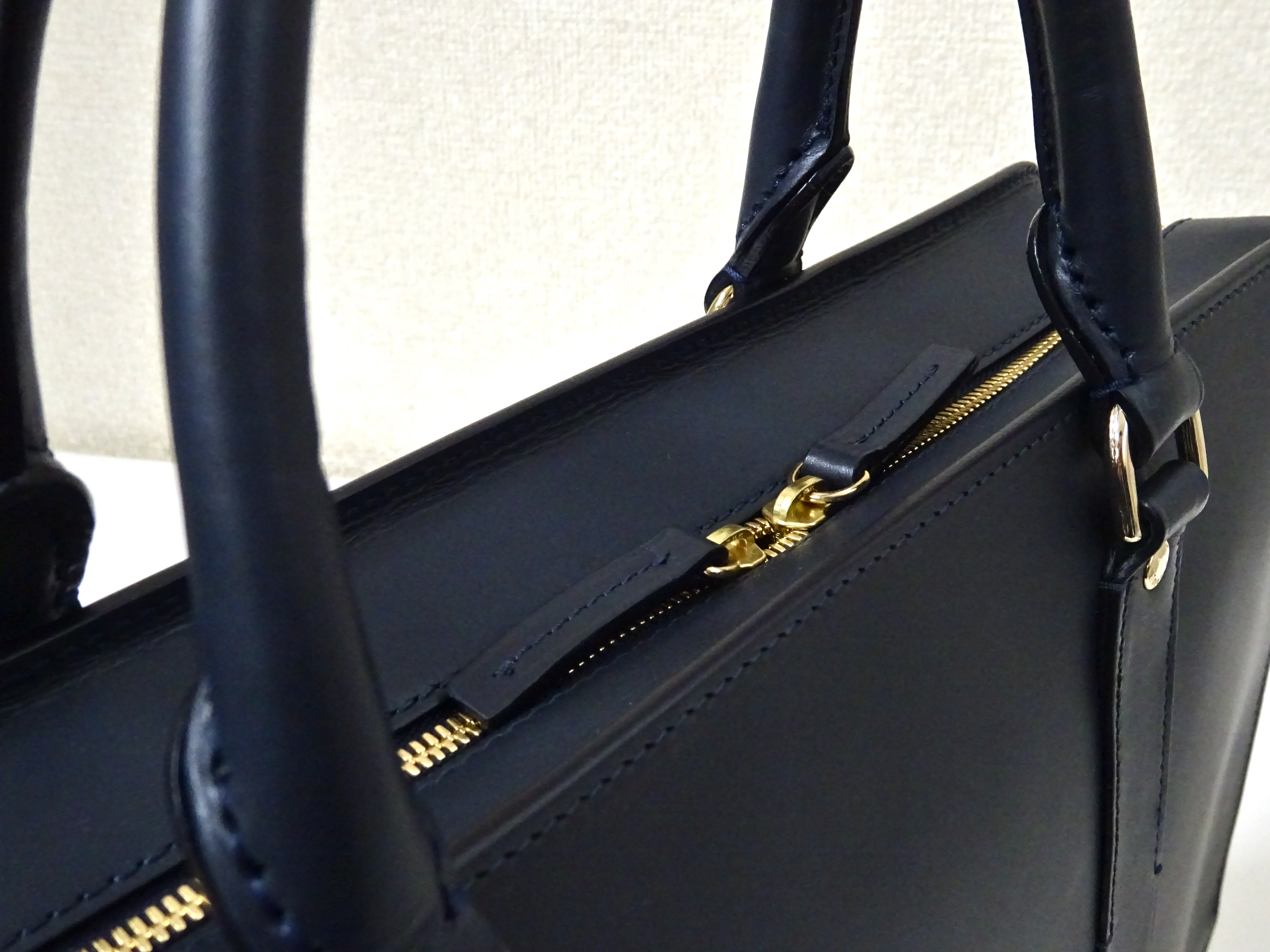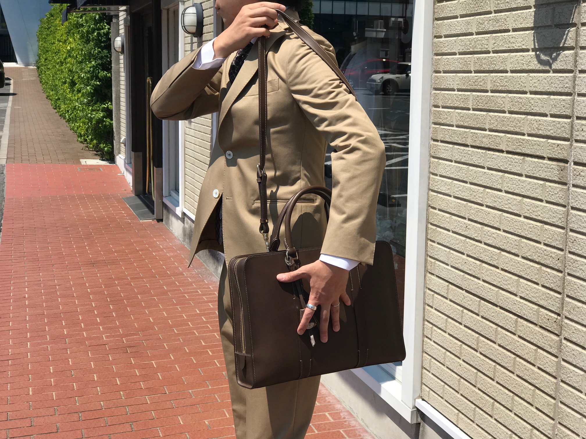 ビジネス仕様のブリーフバッグは、コーディネートに絶妙な安定感と安心感を与えてくれるネイビーとトープの2色をご用意です。