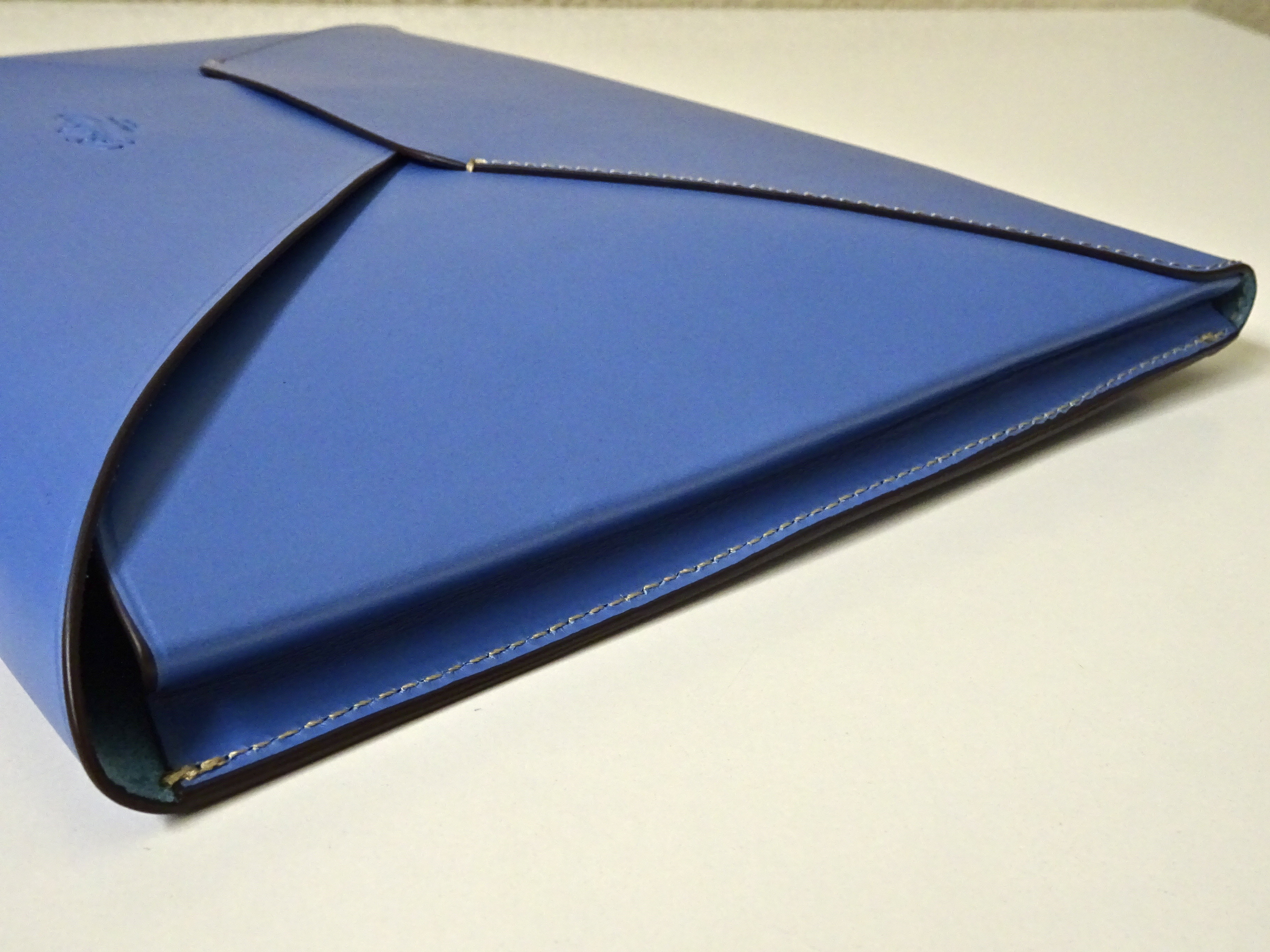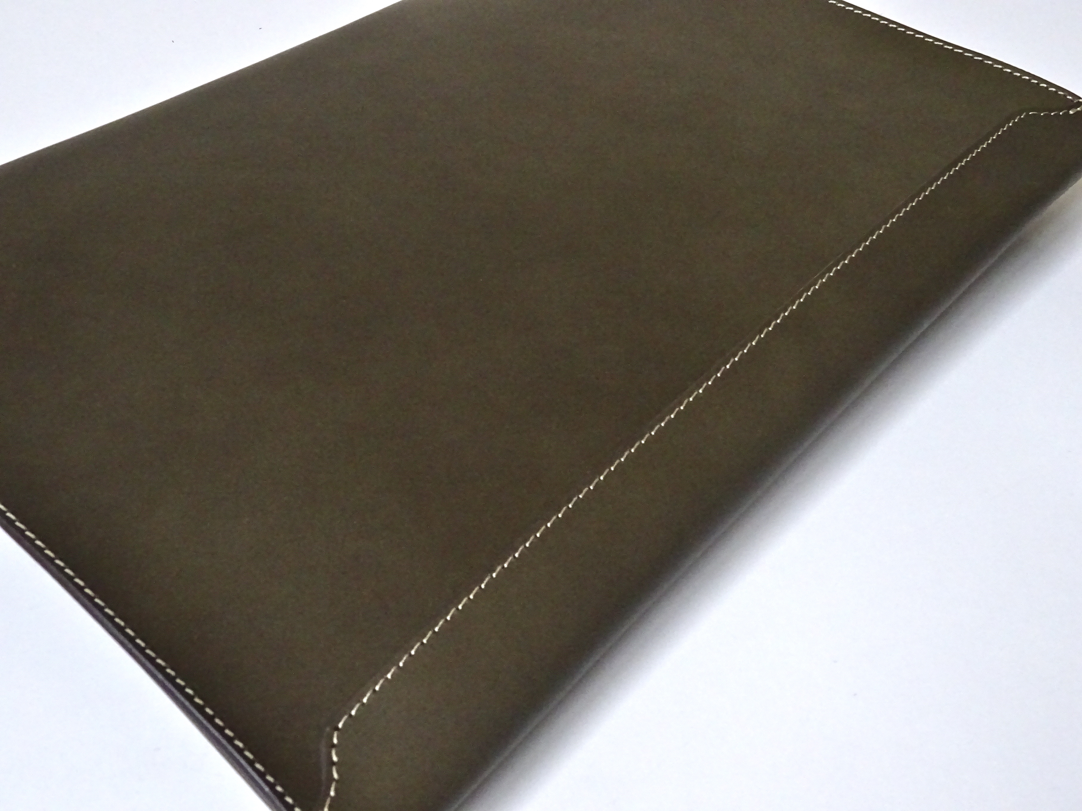 3㎝ほどのマチのお陰で持った感触はふっくらしているので、ある程度の厚みは手の収まりを良くしてくれます。さらに、裏面の下部には生地の折り目とステッチが入っており、これがちょうど指にフィットするようになっています。