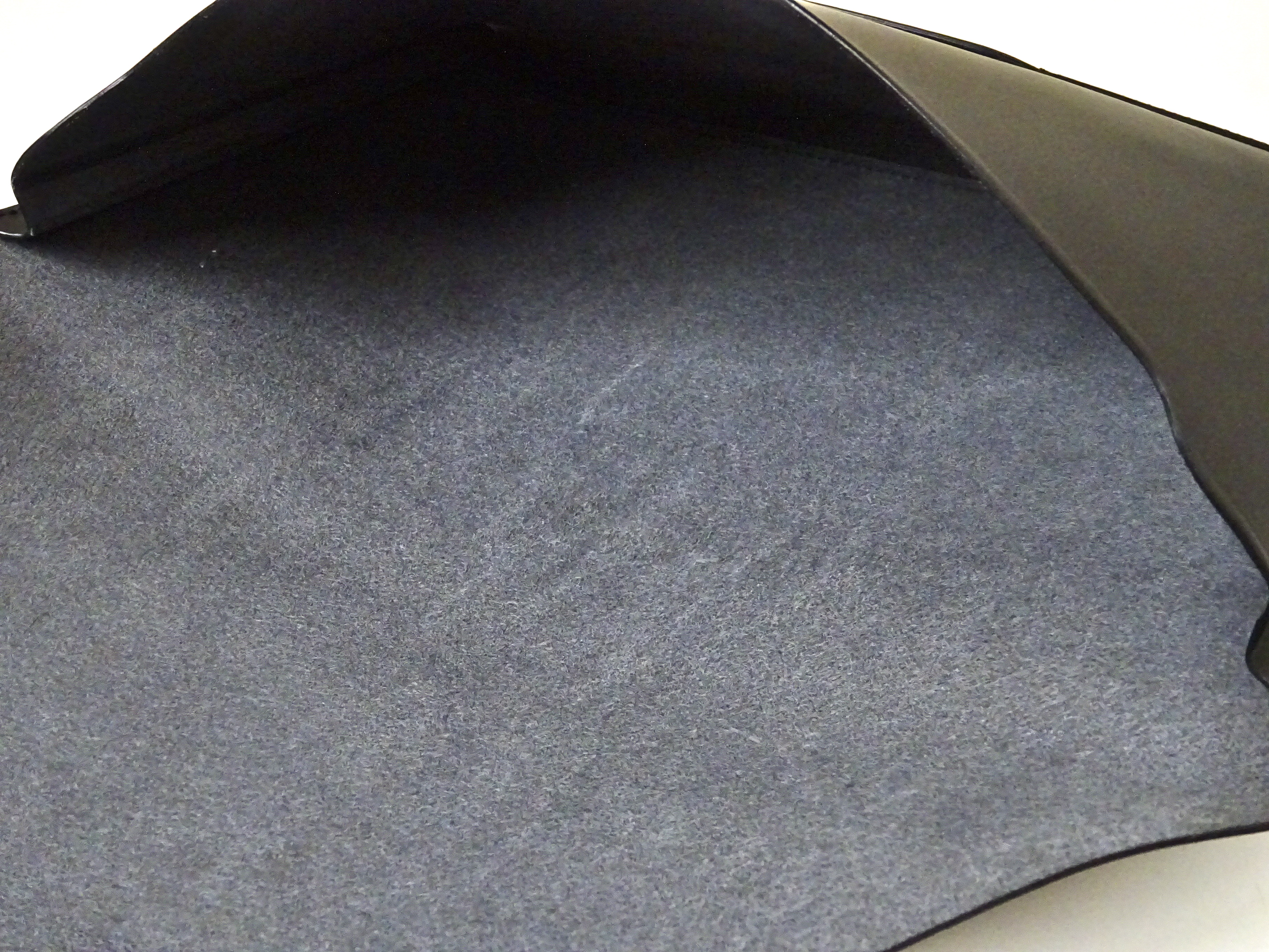 底には鋲が打ち付けてあり、堅牢なレザーは使い込んだ後も独立してくれるので、常に安心して体の傍らに置いておくことができます。ライニングは両色ともレッドのキャンバス地です。