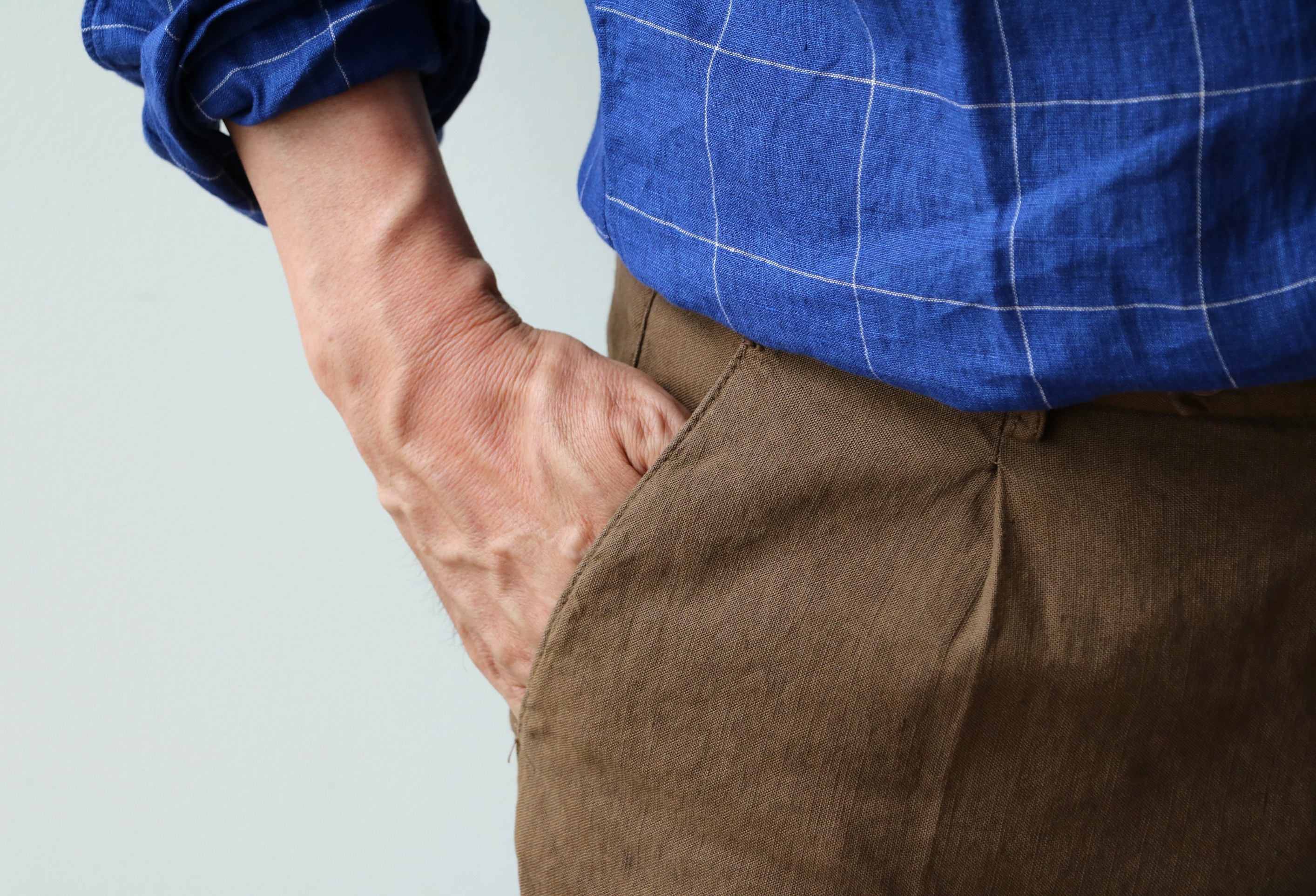 合わせているカットソーは、ZANONE(ザノーネ)の「リネン・コットン微塵ボーダーTシャツ」。一番上のインディゴネイビーです。そして、パンツはINCOTEX(インコテックス)のリネンパンツ。足元はParaboot(パラブーツ)のローファーを履いております。やはり夏には欠かせないリネン素材。吸水性、速乾性に優れ、カラッとした風合いと肌触りは、他の繊維では体感できません。