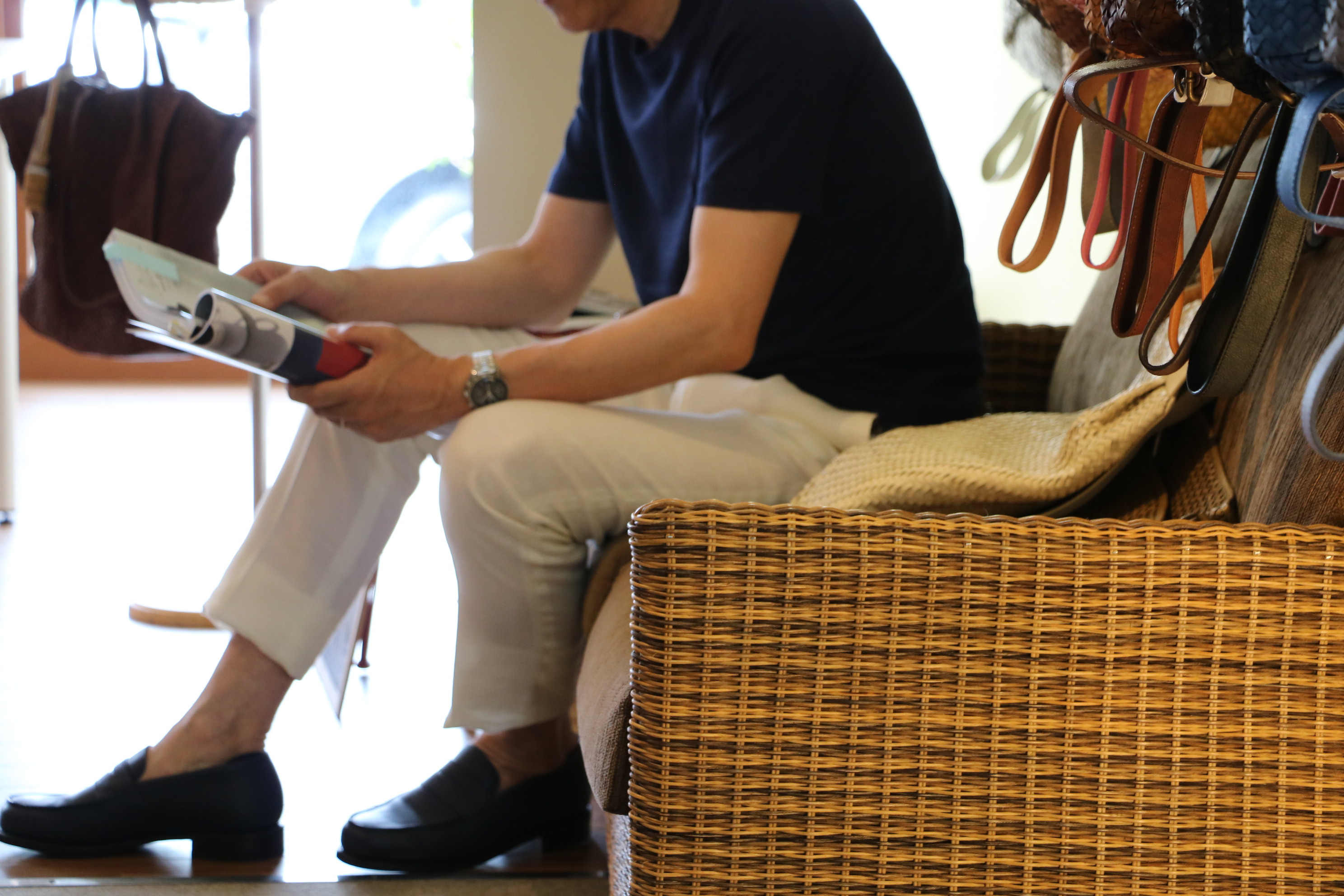 トラッドと呼んでいた時代があります。和製用語ではありますが、この4文字でファッションのジャンルを示すことができたんです。伝統的なスタイルという意味で、当時はアメリカン・クラシックのことを指していました。その後、英国への憧れに変わり、そして、最終的にクラシコ・イタリアに辿り着きましたが、嗜好は当時とあまり変わりません。学生時代から大好きだったタッセルスリッポン。当時、履いていたのはリーガルのものでしたが、今回、"あの素晴らしい愛をもう一度"で、ライトブラウンのタッセルローファーにたどり着きました。オールシーズン使える靴だけに、今月一杯の期間限定とさせていただきます。本体価格59.000円→42.000円