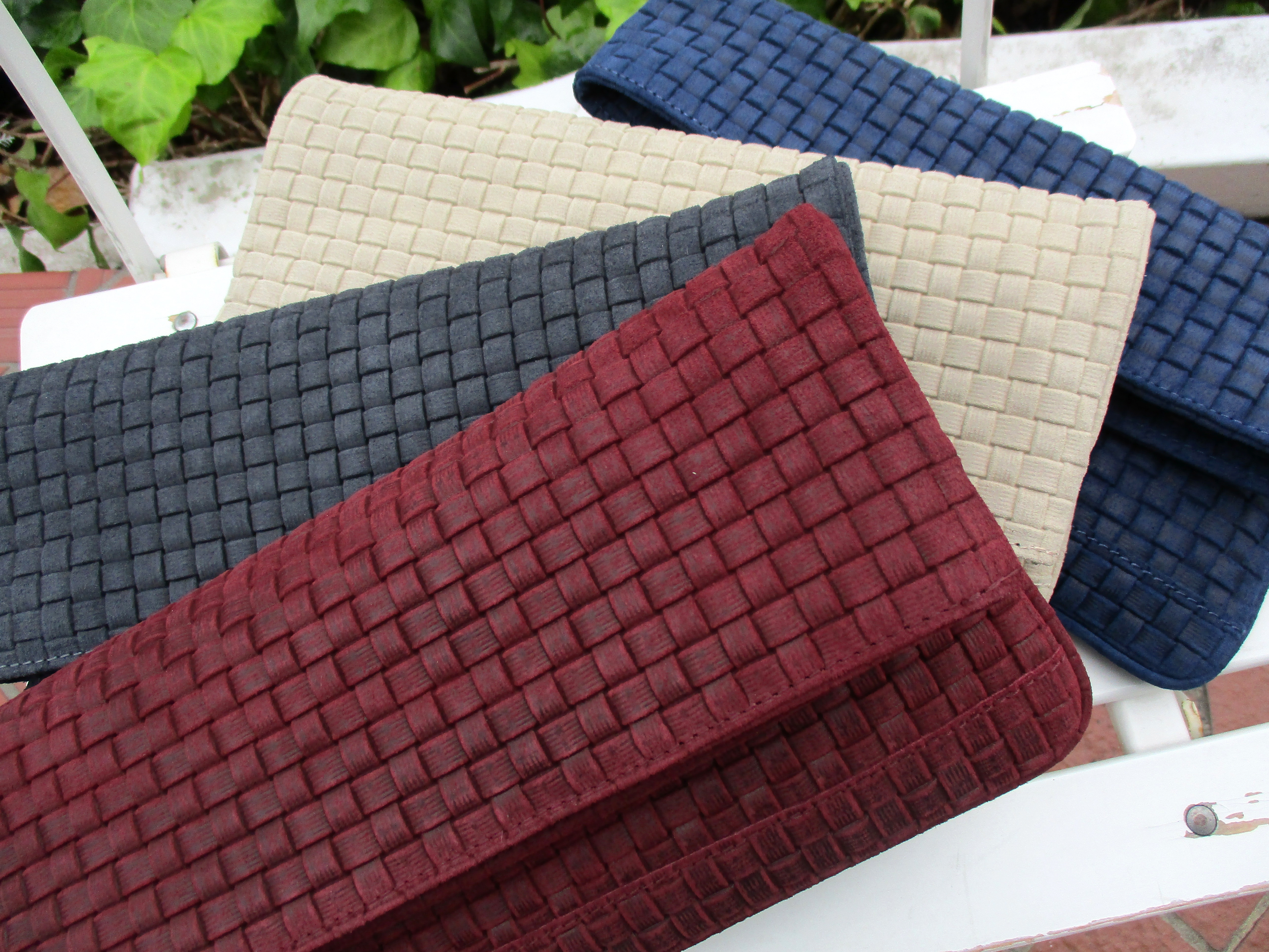 そしてもう一つ。同じくスエードのイントレチャート風のレザーを使用したクラッチバッグ。