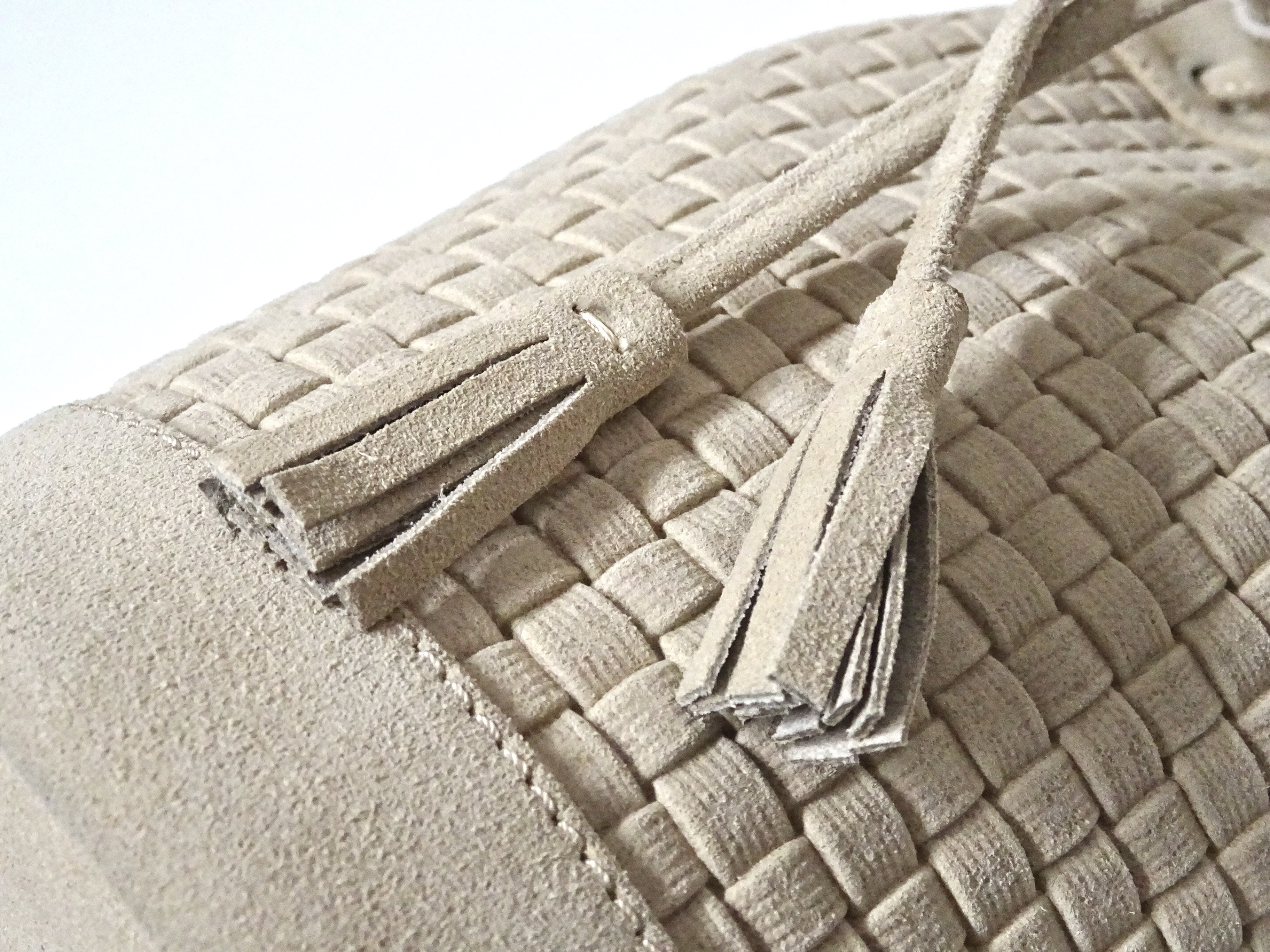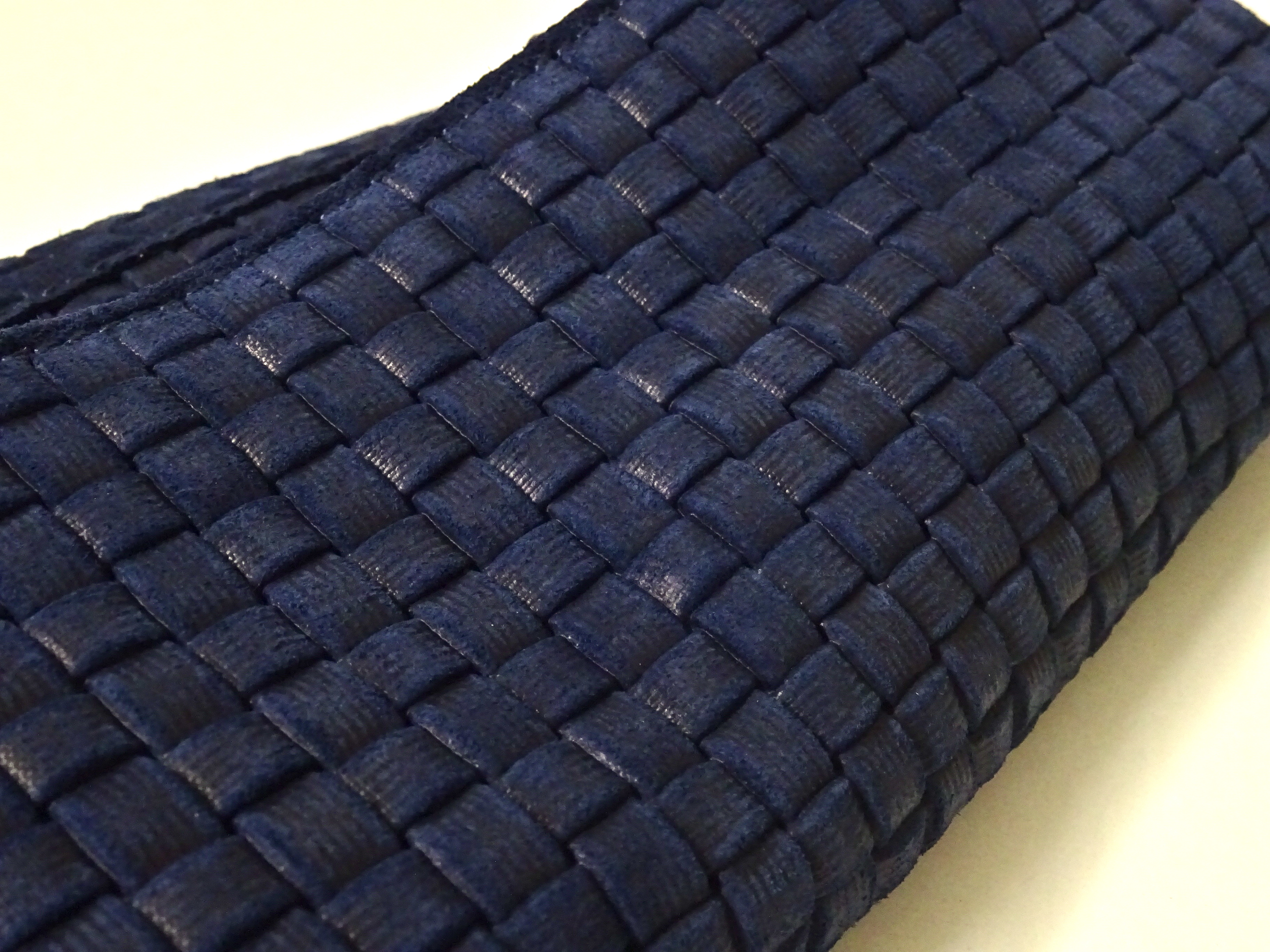 実は、表面のレザーは実際に編み込まれているのではなく、編み込み風の型押しです。凹凸の立体感があるのでかなりリアルです。