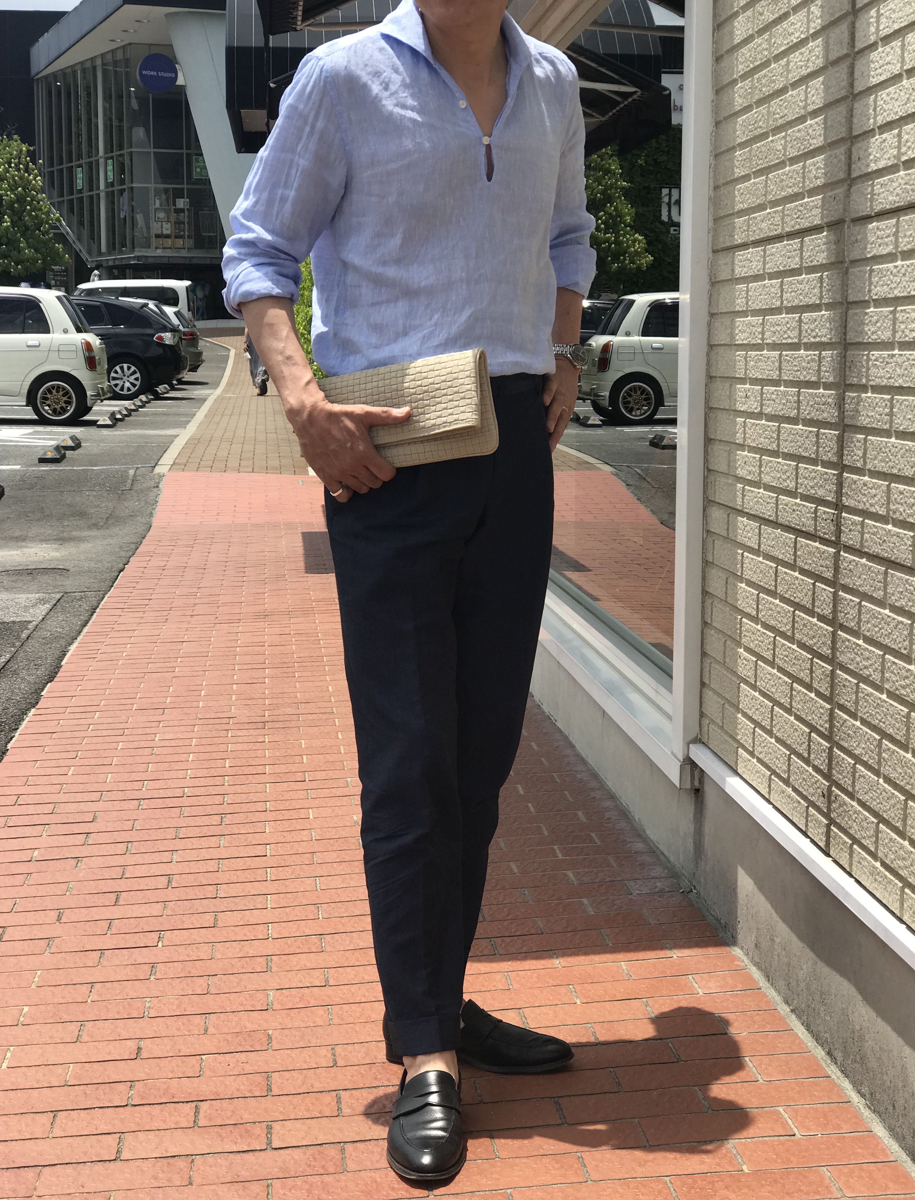 合わせたシャツは私物のFinamore(フィナモレ)、ネクタイは未公開のFRANCO BASSI(フランコ バッシ)、靴はCROCKETT&JONES(クロケット&ジョーンズ)です。