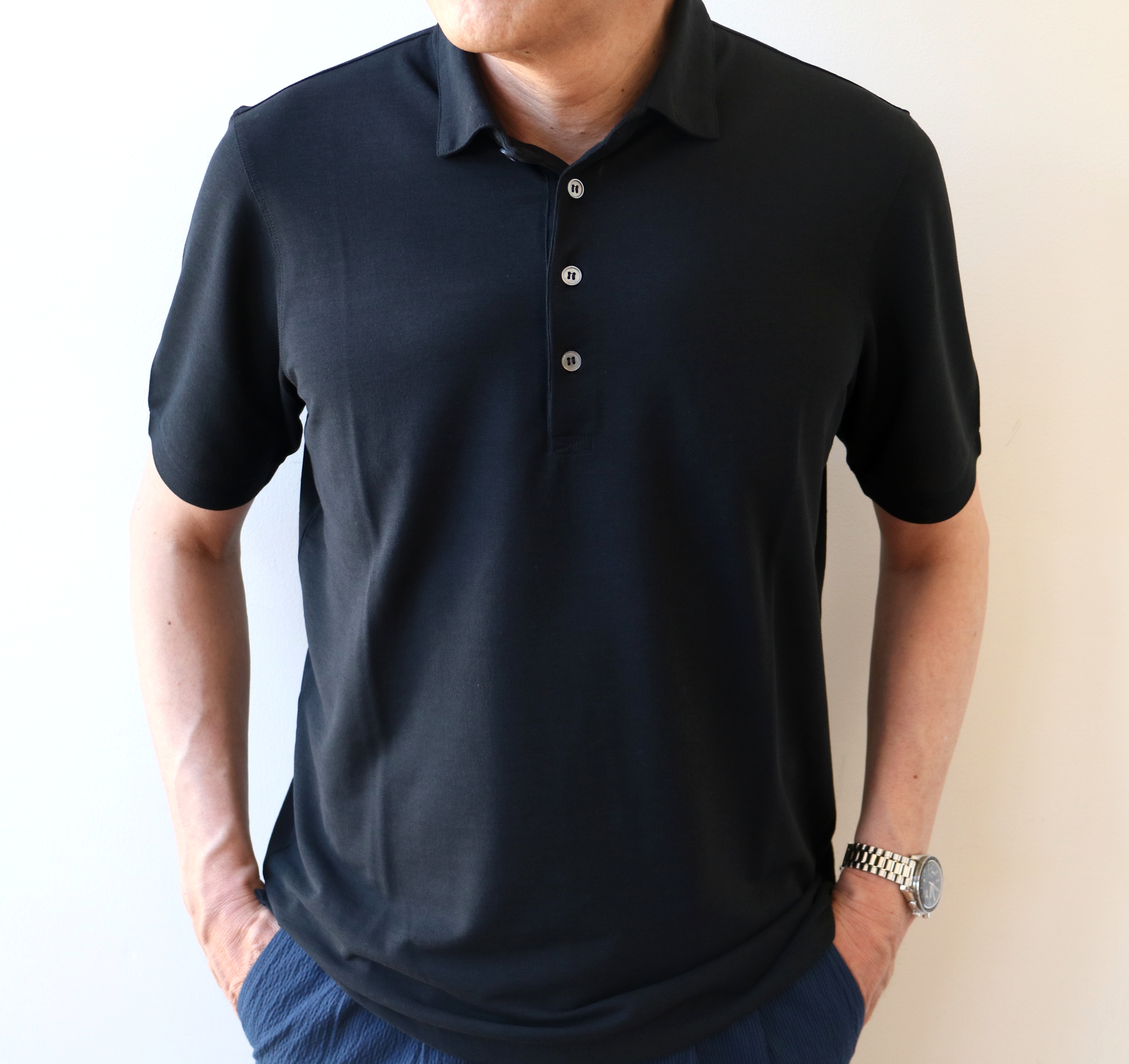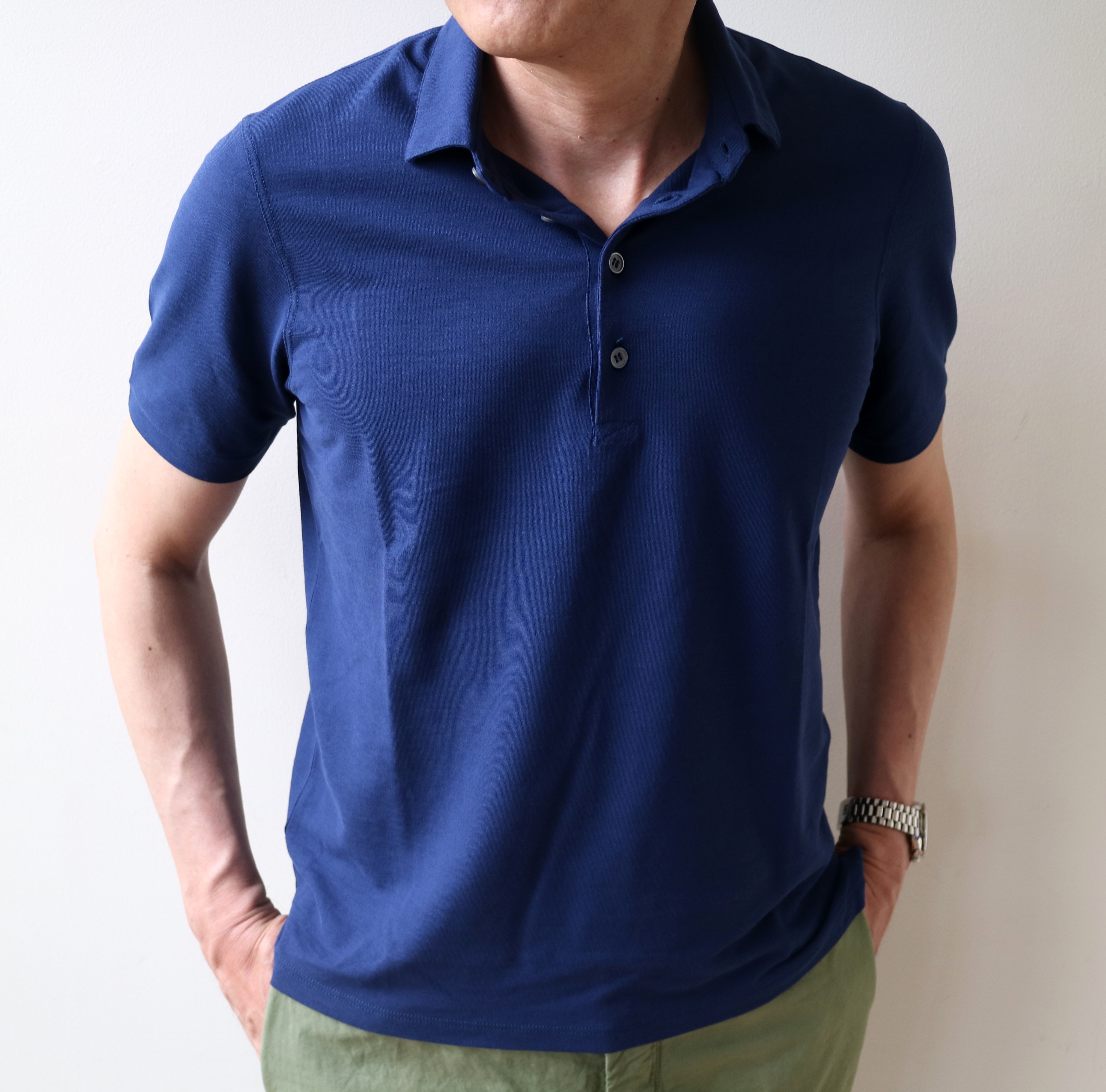 時々サボっておりますので、働き者!!ってことはありませんが、1ヶ月ぶりの休みです。休みだからと言って、起きるのは何時もと同じ。軽い食事をとってから湯船に浸かるのも、長年の習慣です。夜は体を洗ってから湯船に。朝は湯船に遣ってから頭を洗う。この順序は変わらず、海外でも必ずバスタブつきのホテルを選びます。どちらかと言えば熱めの風呂が好きで、この季節は汗が吹き出ます。すぐに着替えるのは躊躇しますが、昨日は休み。洗濯物を干しながら、何を着ようか...です。選んだのは、ZANONE(ザノーネ)の「ICE COTTON」。やはり、見た目の涼しさ以上に着用した際のヒンヤリ感。一度、体が覚えてしまうと、手放せなくなります。