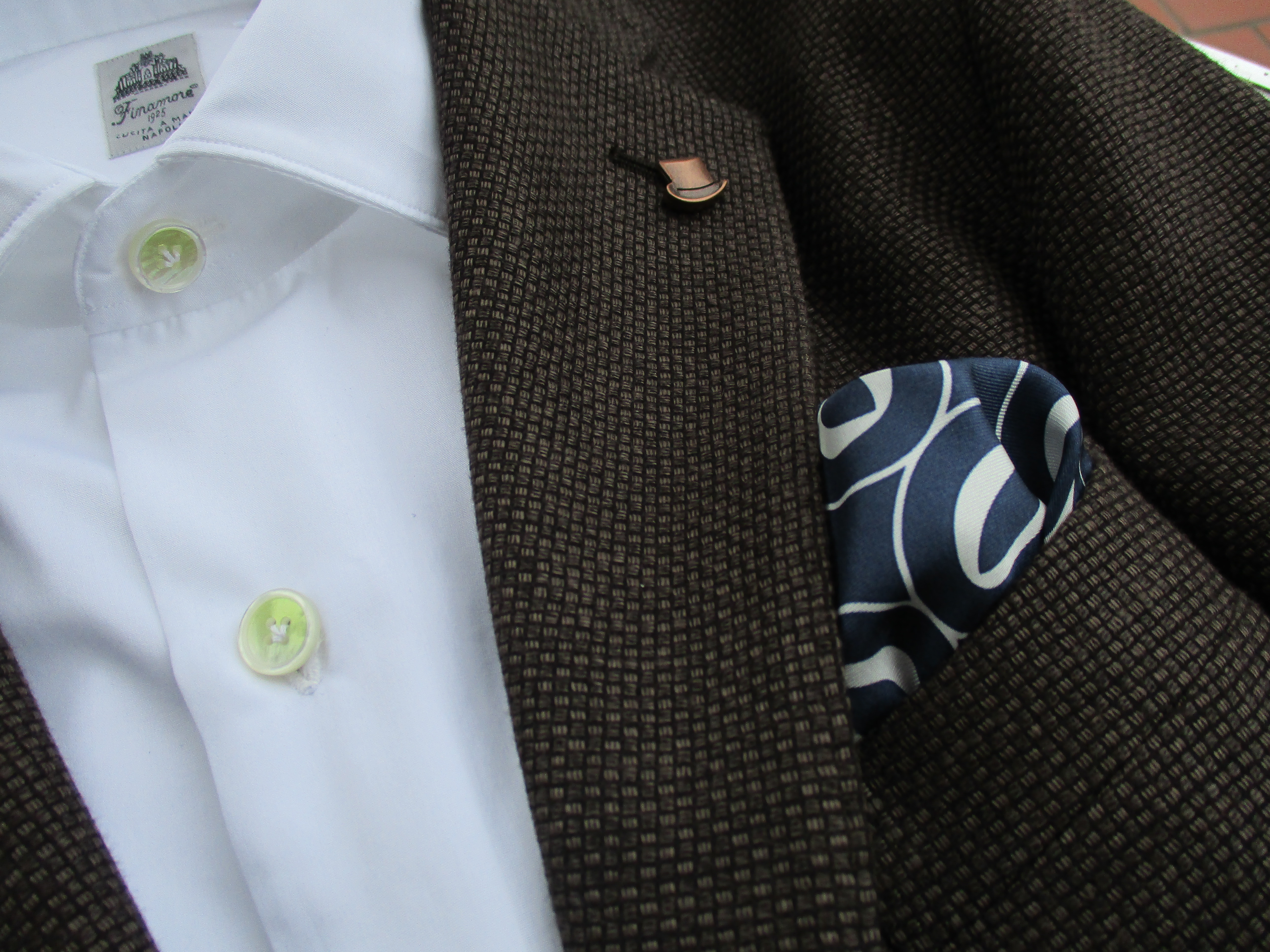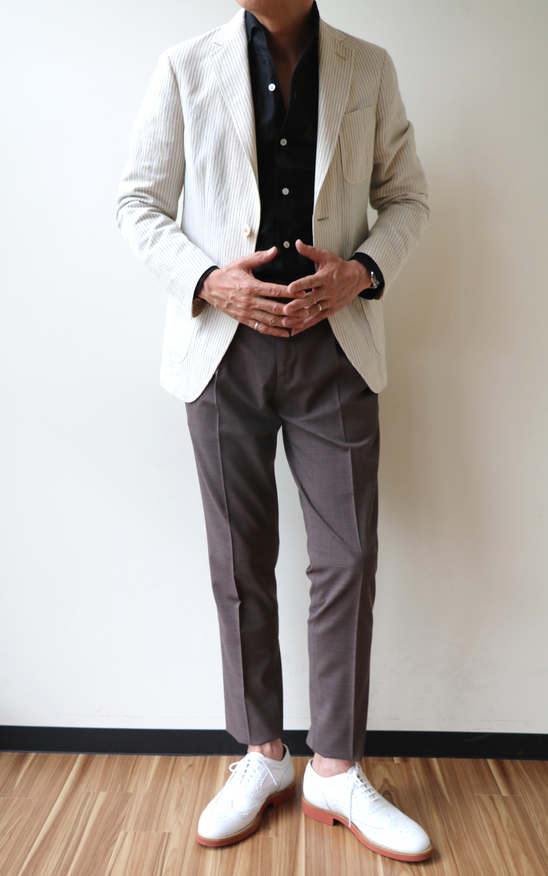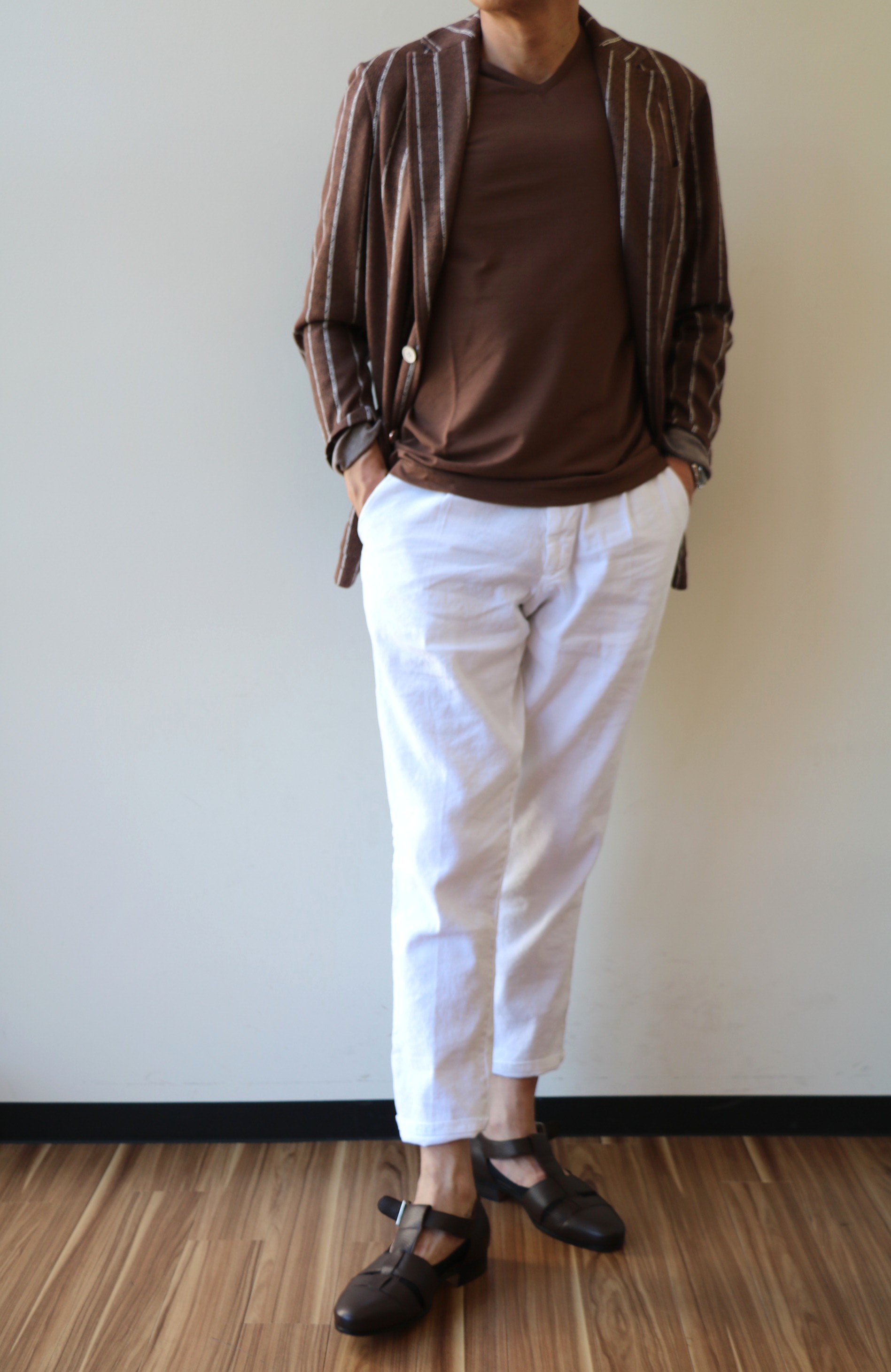 上の写真は、4月30日のもの。季節が進むと、コーディネートも変わります。今回、合わせたジャケットはTHE GIGI(ザ・ジジ)、シャツはFinamore(フィナモレ)、靴はDOUCAL'S(デュカルス)。シックだけど軽やかな組み合わせにしました。