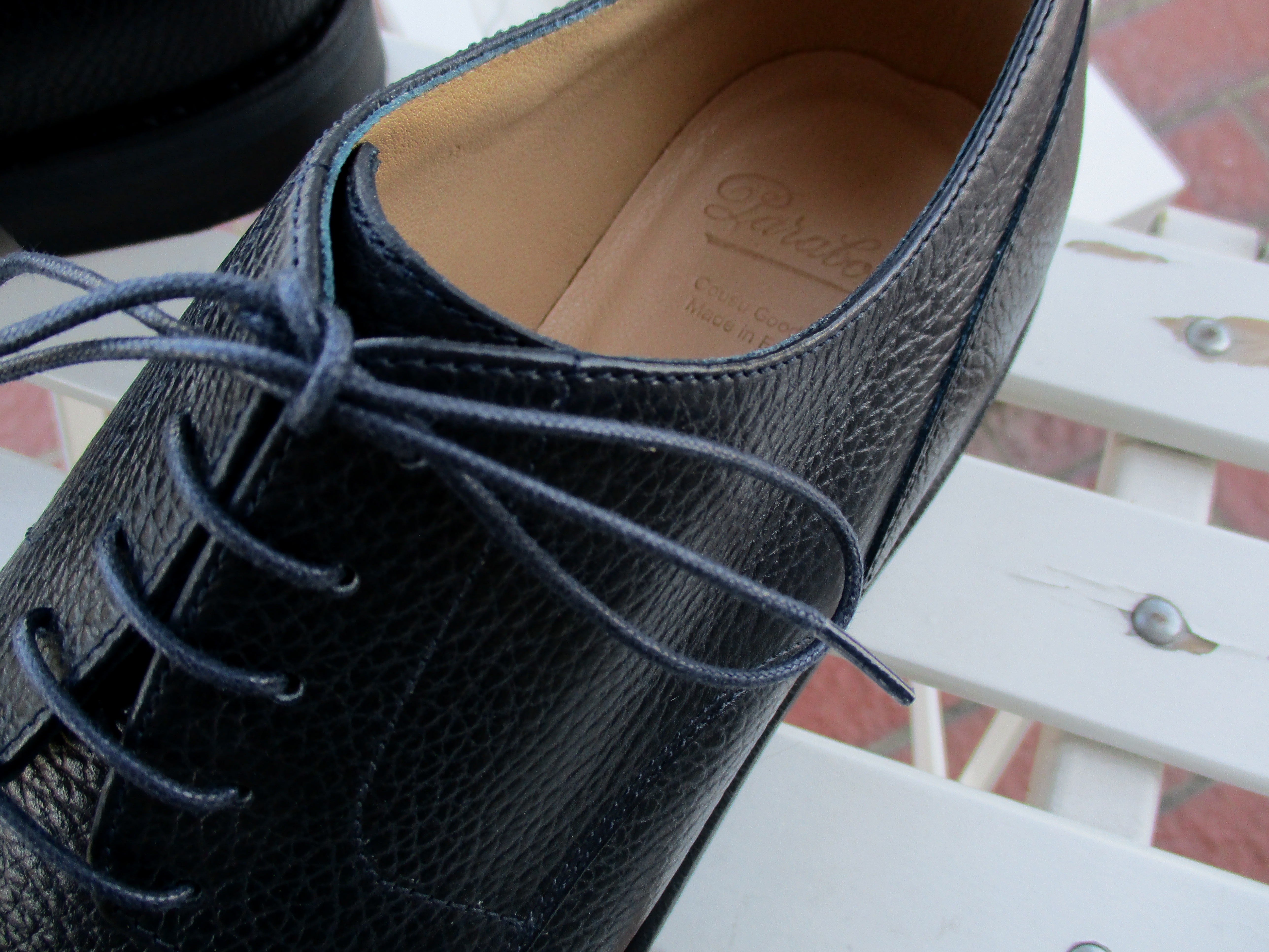 本日のご案内です。私物のニット(JOHN SMEDLEY)に少し前に購入したINCOTEXのパンツ。マガジーノで展開のジャンネットのジレを借りてコーディネート。注目していただきたいのは、Paraboot(パラブーツ)の「CHAMBORD/シャンボード」です。