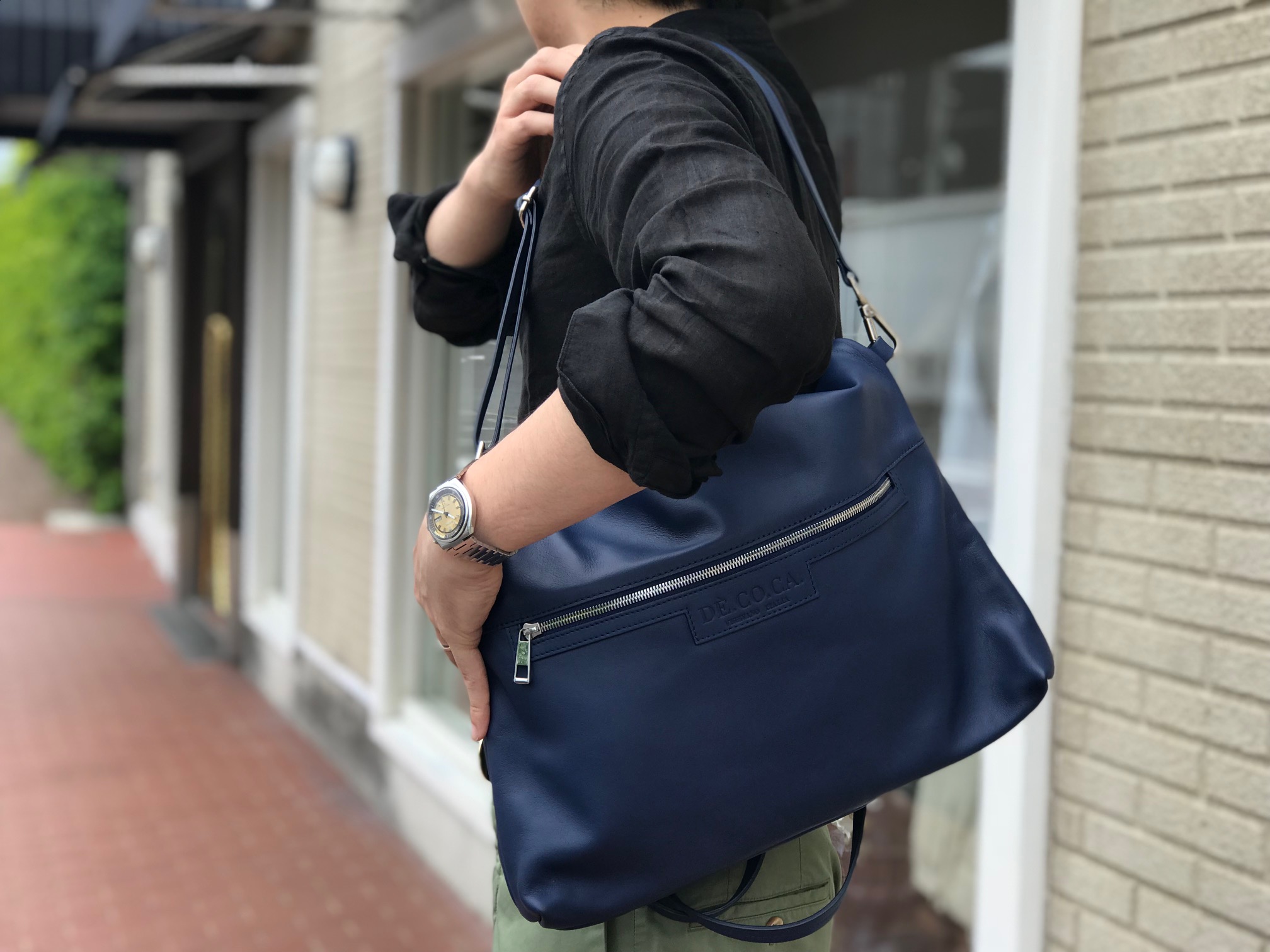 そのDÉ.CO.CA(デーコカ)のバッグを持って登場です。これからは、いや、今までもありましたが、蔵庫/マガジーノの商材と混ぜ合わせてご案内していきます。