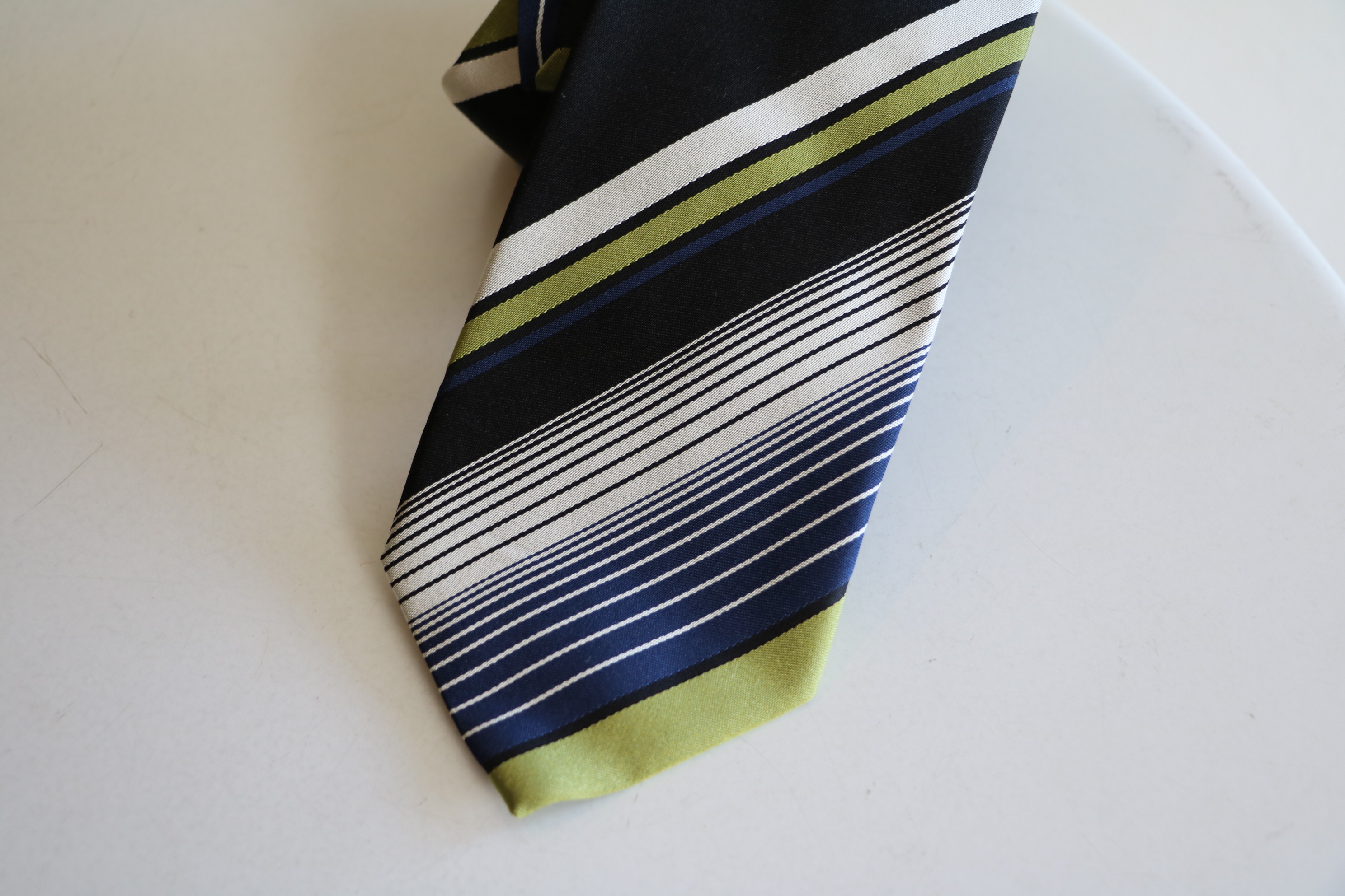 MODEL:「Black Label」カラーベースストライプ柄シルクタイ