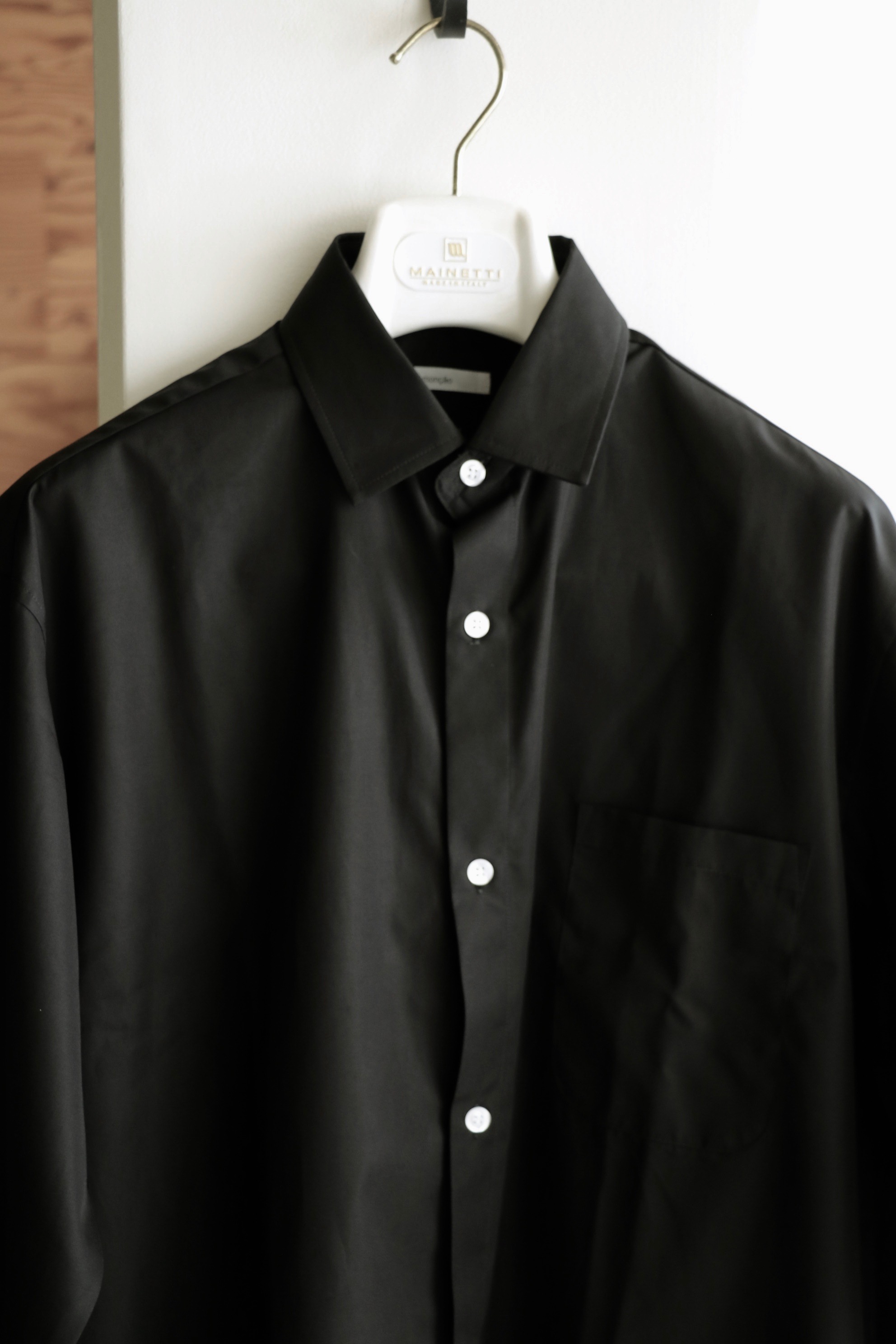 洗いざらしのOXフォードやデニムとは全く異なるシンプルでモダンな佇まい。ただ、シンプルな服ほどごまかしが利かないのです。襟の大きさや角度、ポケットやカフスのデザインもそうです。全て計算されていても、デザインを前面に出すのではなく、いかに美しく、着る人の個性を引き出せるかが問われます。初めて展開する際に迷った理由もそこにあるのですが、思い切ってバイイングし、店頭に並べ、自分で着用して、全ての迷いが吹き飛んでしまったのが【monção/モンサオ】のシャツなんです。