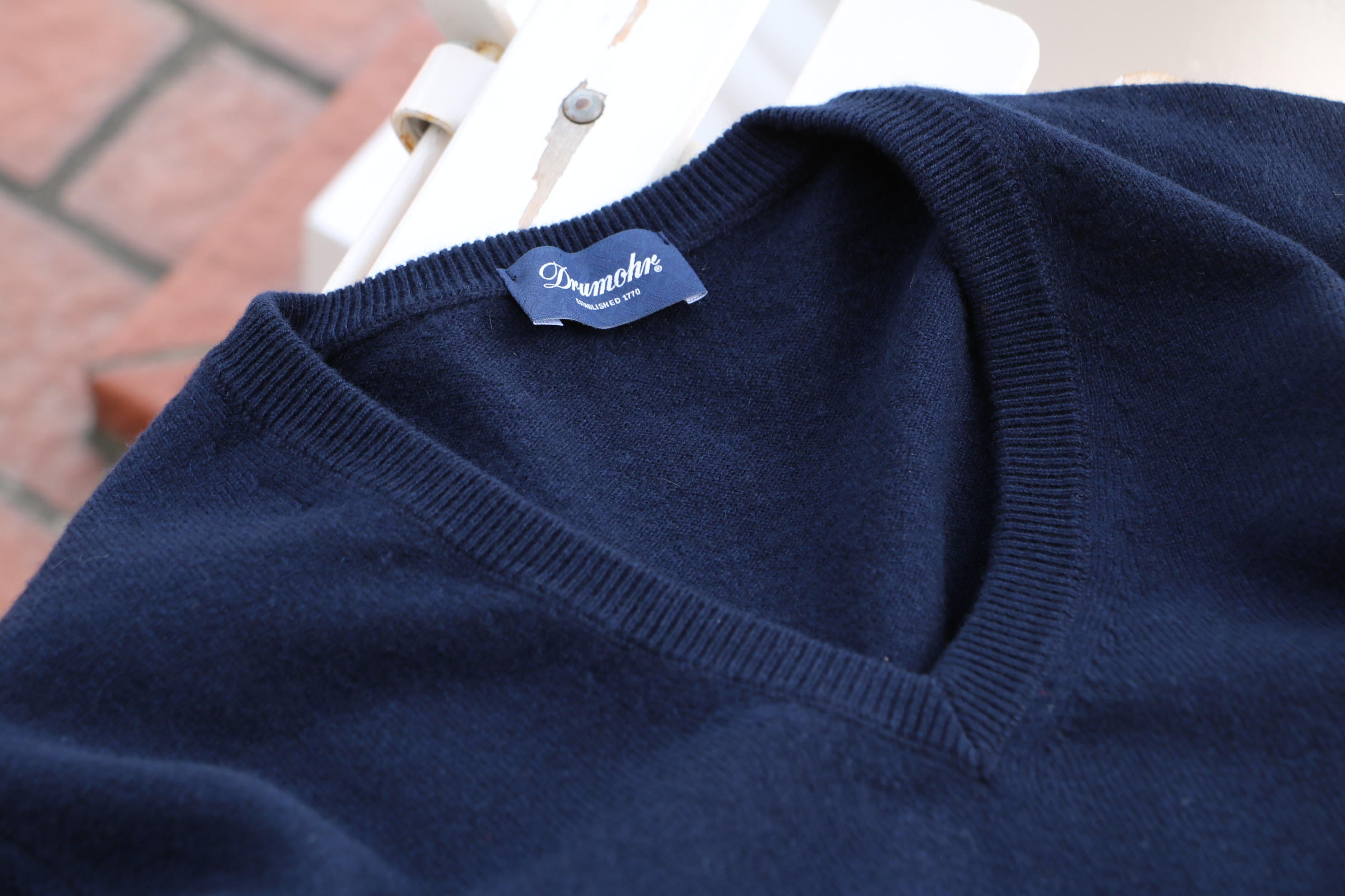 今季、英国スタイルを気取るなら、12ゲージのVネックは必要です。英国スタイルと書きましたが、イメージとしては往年のハリウッドスターのプライベート写真。特にスティーブ・マックイーンのスタイルに憧れます。カシミアのVネックセーターにバラクータG9なんて最高にかっこいい。書き出すと、カシェートブログになりそうです。元々は英国ブランドだった【Drumohr/ドルモア】。当時のアメリカ人が装う英国スタイルに言及してしまいます。