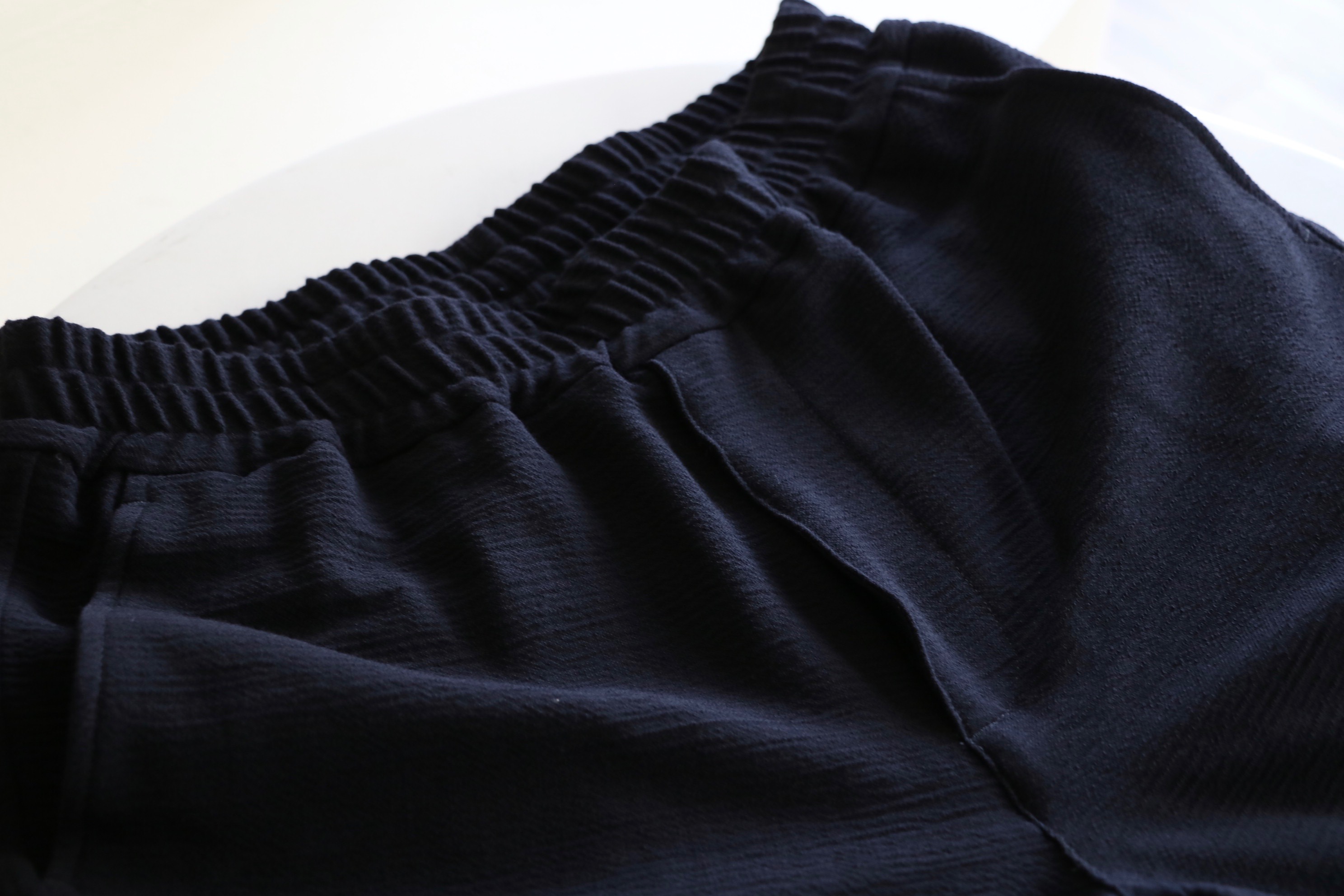 ウールジャージ オーバーシャツのセットアップになる組下のシャーリングパンツ。サイズが欠けての入荷でしたが、本日、揃いました。