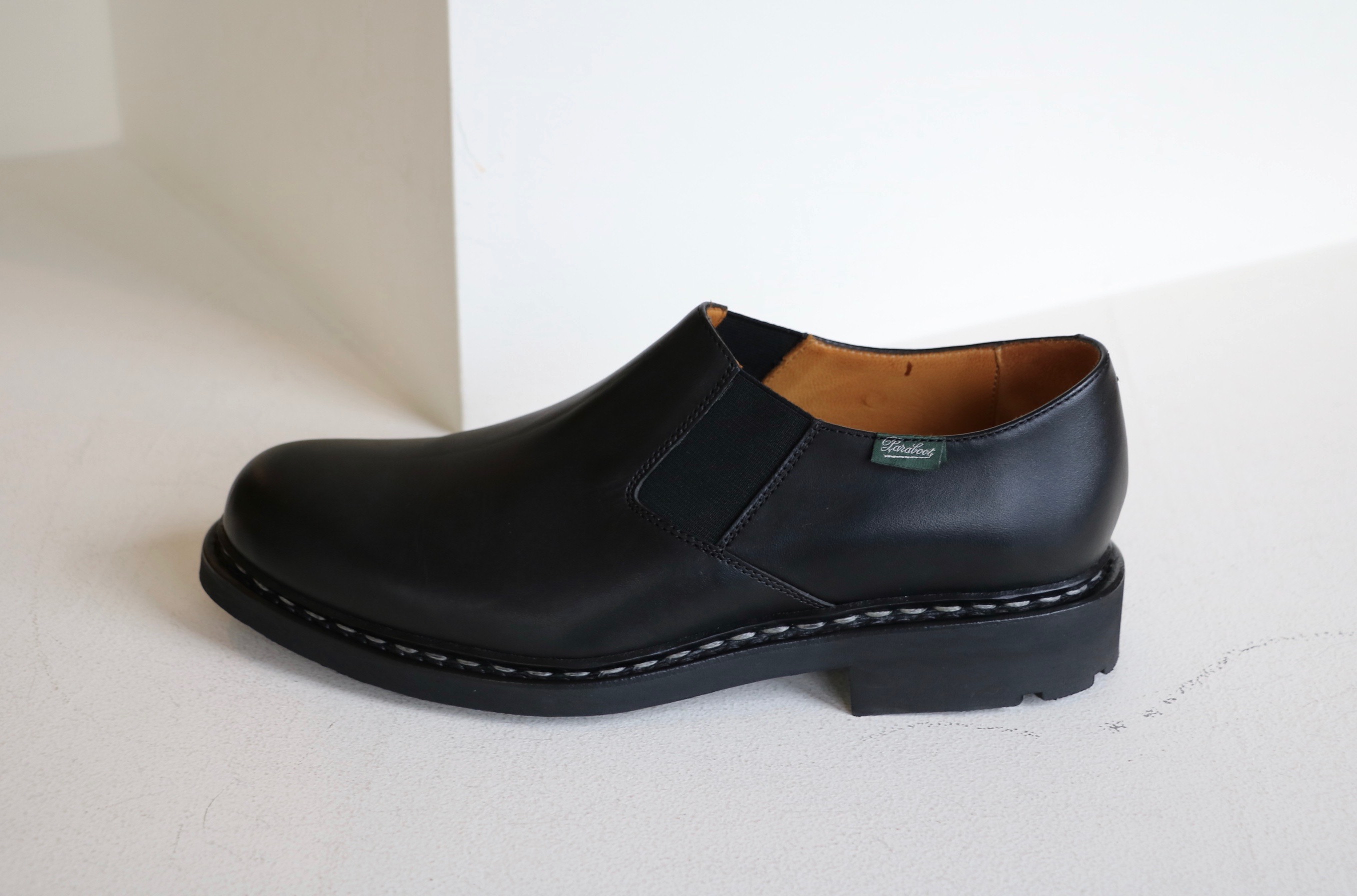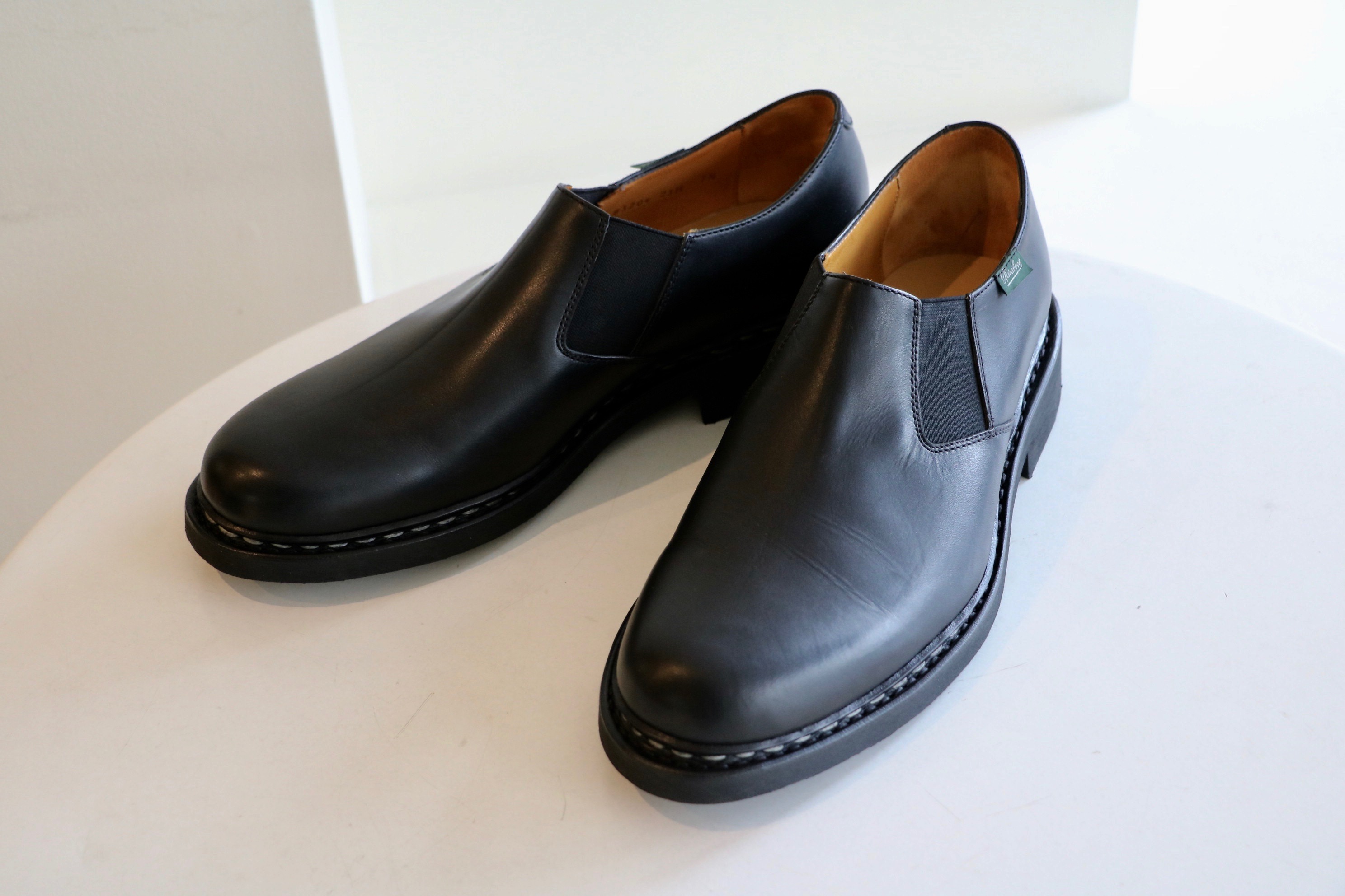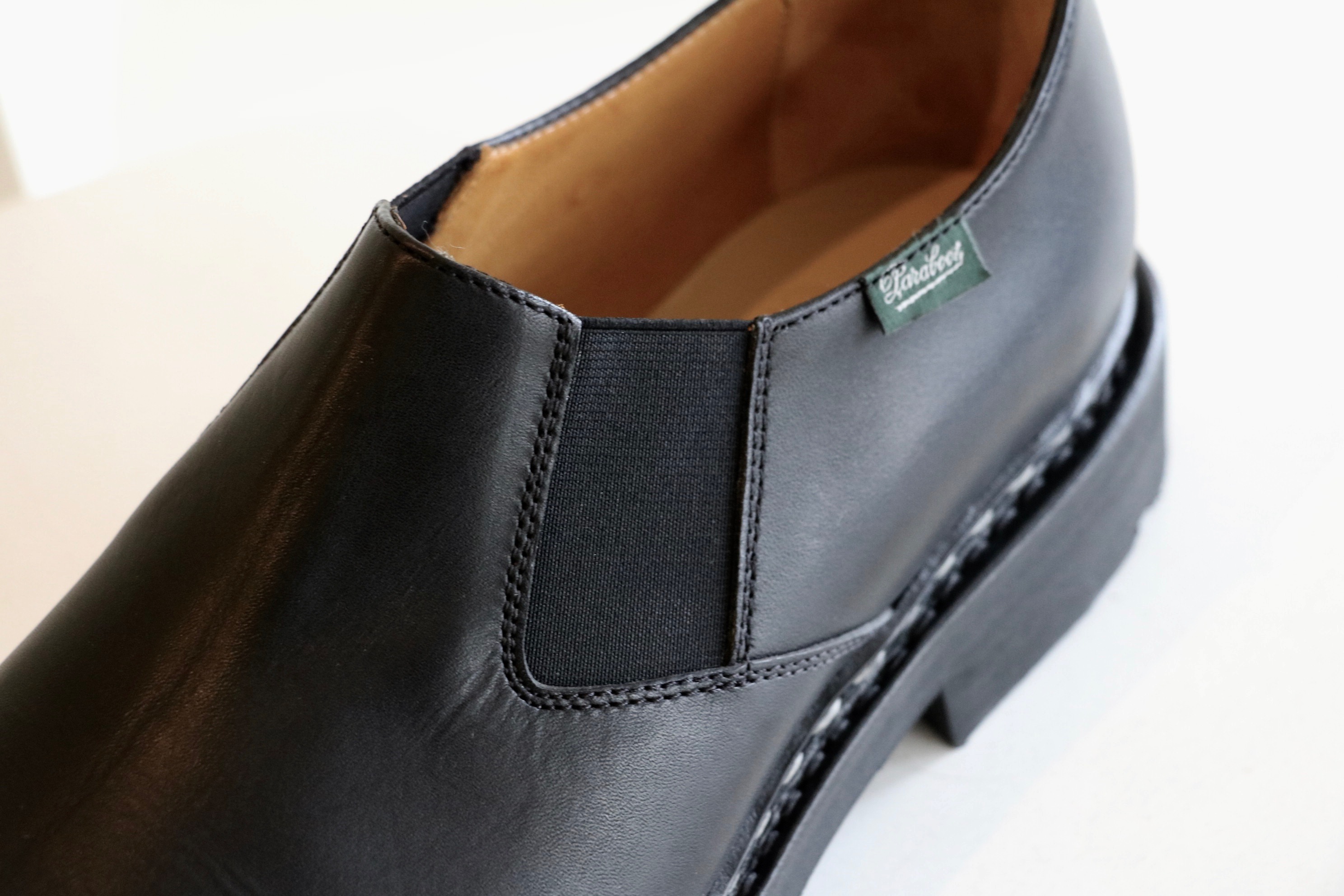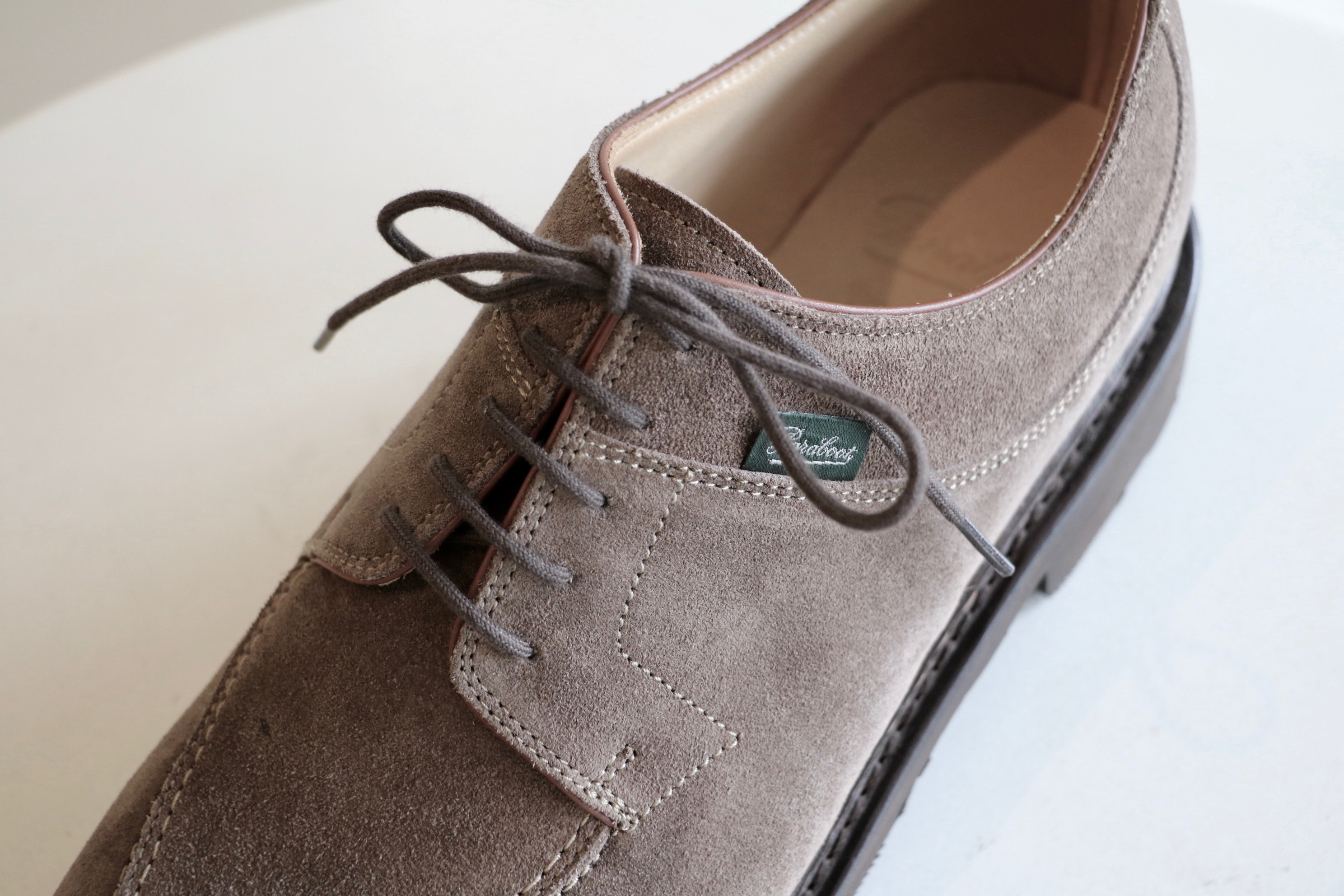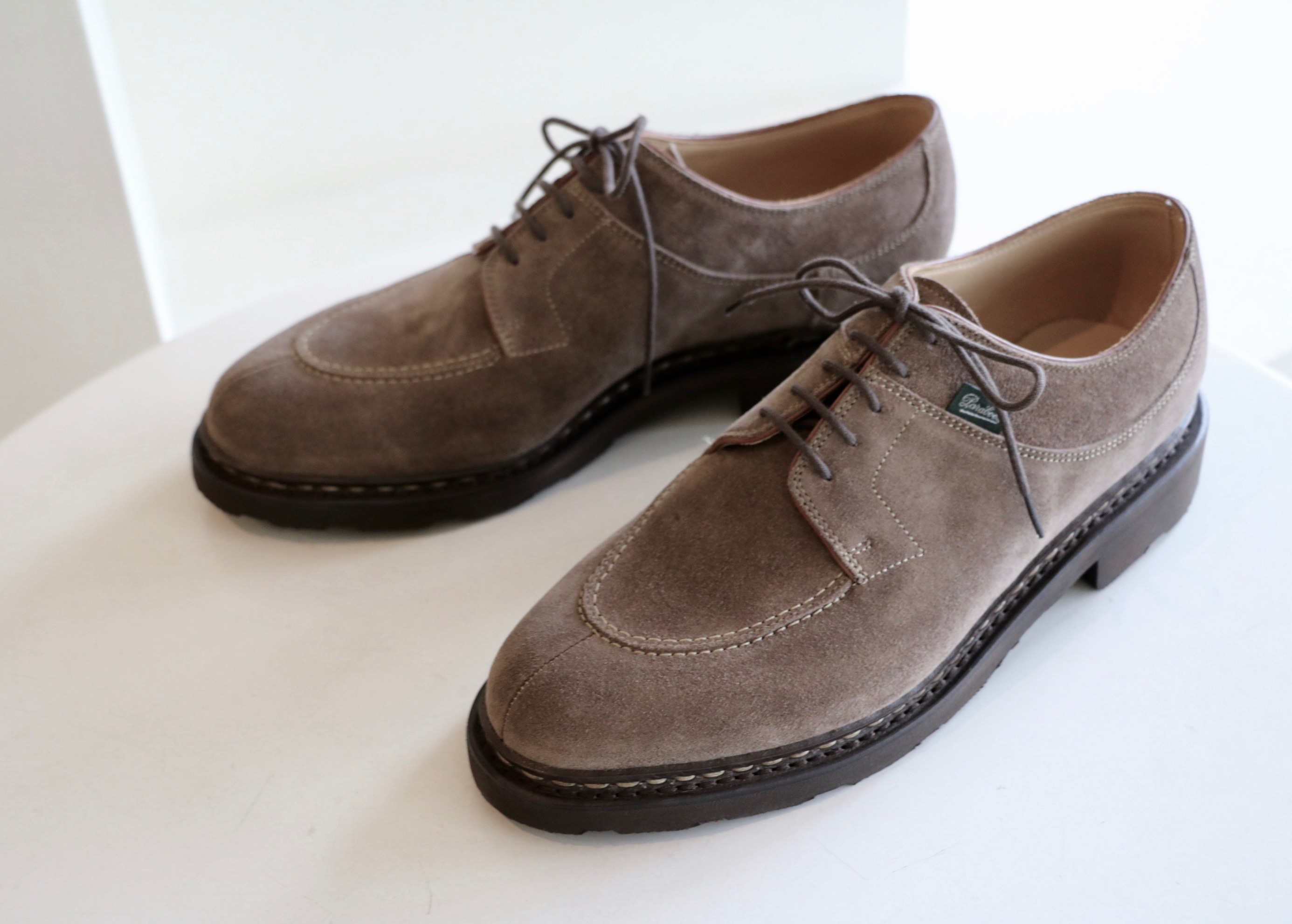 本日のメインです。先にご紹介のバレナの足元をご覧ください。入荷以来、頻繁に合わせている靴は【Paraboot/パラブーツ】。2型、ご用意しました。