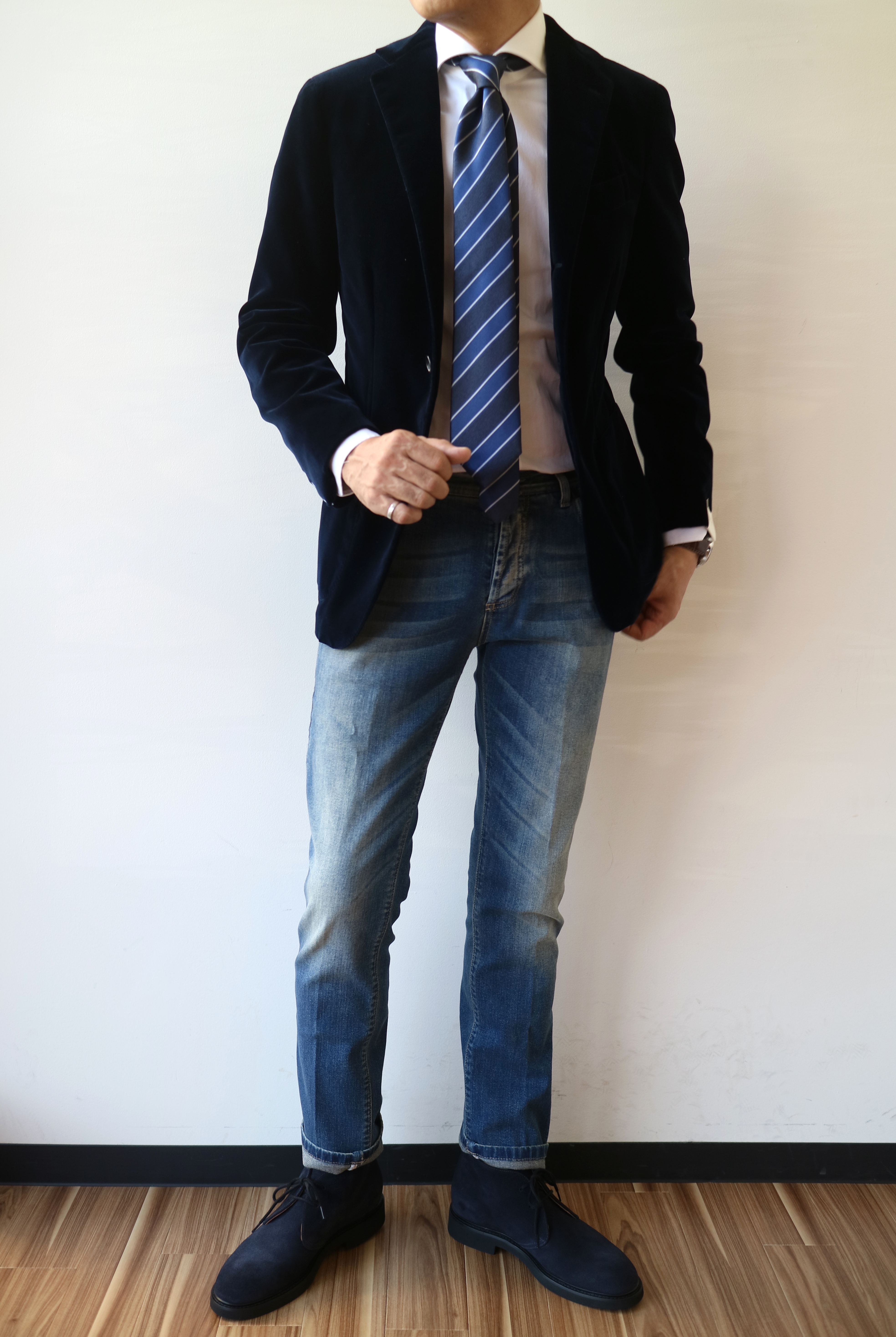 ジャケットに合うジーンズ作りたい、そんな熱い思いから生まれたイタリアンデニム。その先駆けとして有名なデニムブランドといえば、JACOB COHEN(ヤコブ コーエン)。日本でも、そのスタイルは今では当たり前になりましたが、さらにネクタイをしてのタイドアップはいかがでしょう。我々の世代にとっては、ラルフ・ローレンの着こなしを思い浮かべるのですが、彼が1968年にブランドを立ち上げる前、ブルックス・ブラザーズでネクタイのセールスをしていたことと関係があるのかもしれません。その話はさておき、スーツにノータイスタイルがあるなら、ジーンズにネクタイの着こなしは、もっと増えても良さそうです。