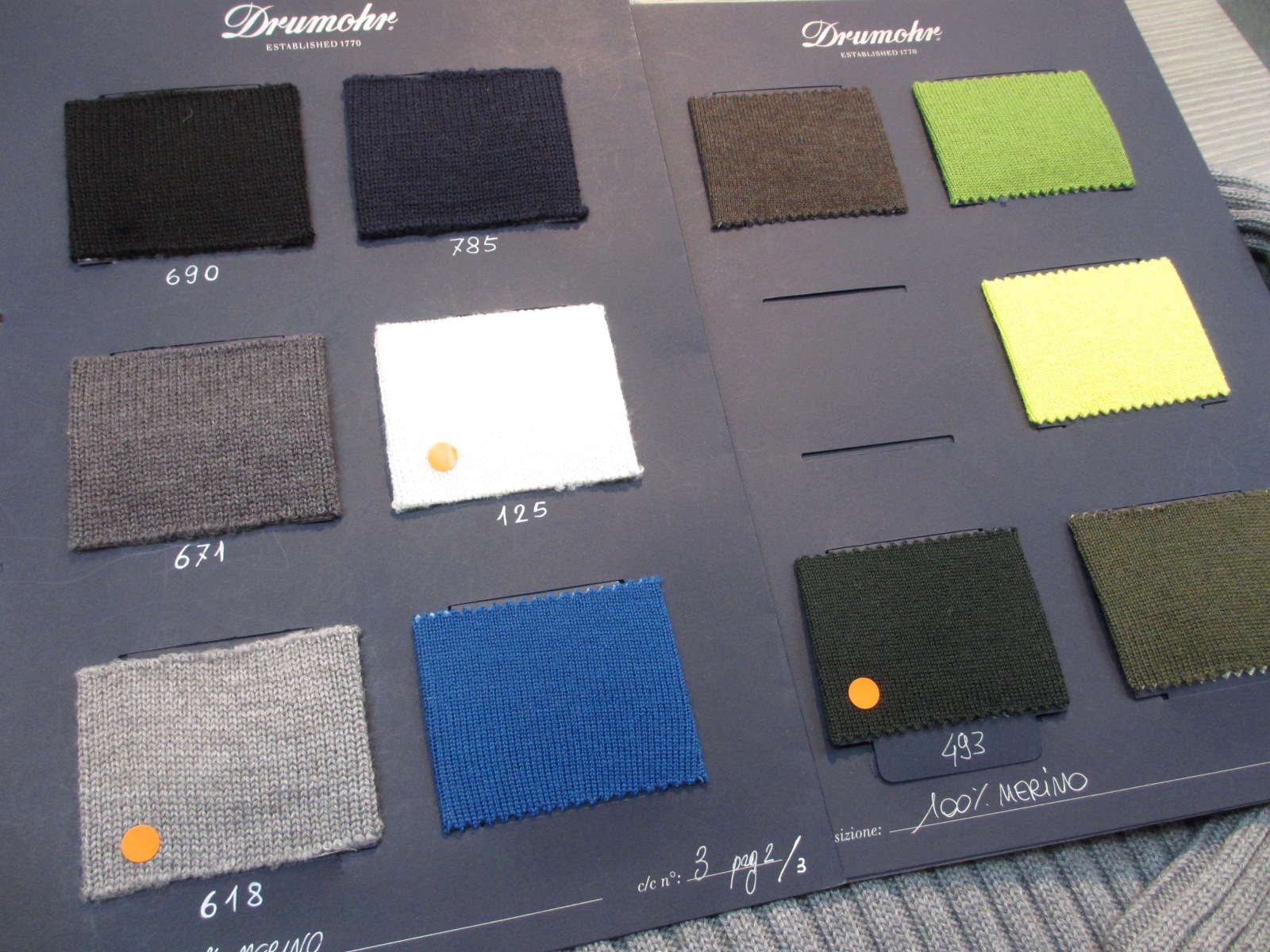 今回、入荷したのが、アイボリーホワイト、アスファルトグレイ、ネイビーの3色(上の写真)。実は、プレコレクションとメインコレクションの両展示会でオーダーしております。それほど、求めていたニットです。ライトグレイ(618)とダークオリーブ(493)は近日入荷です。