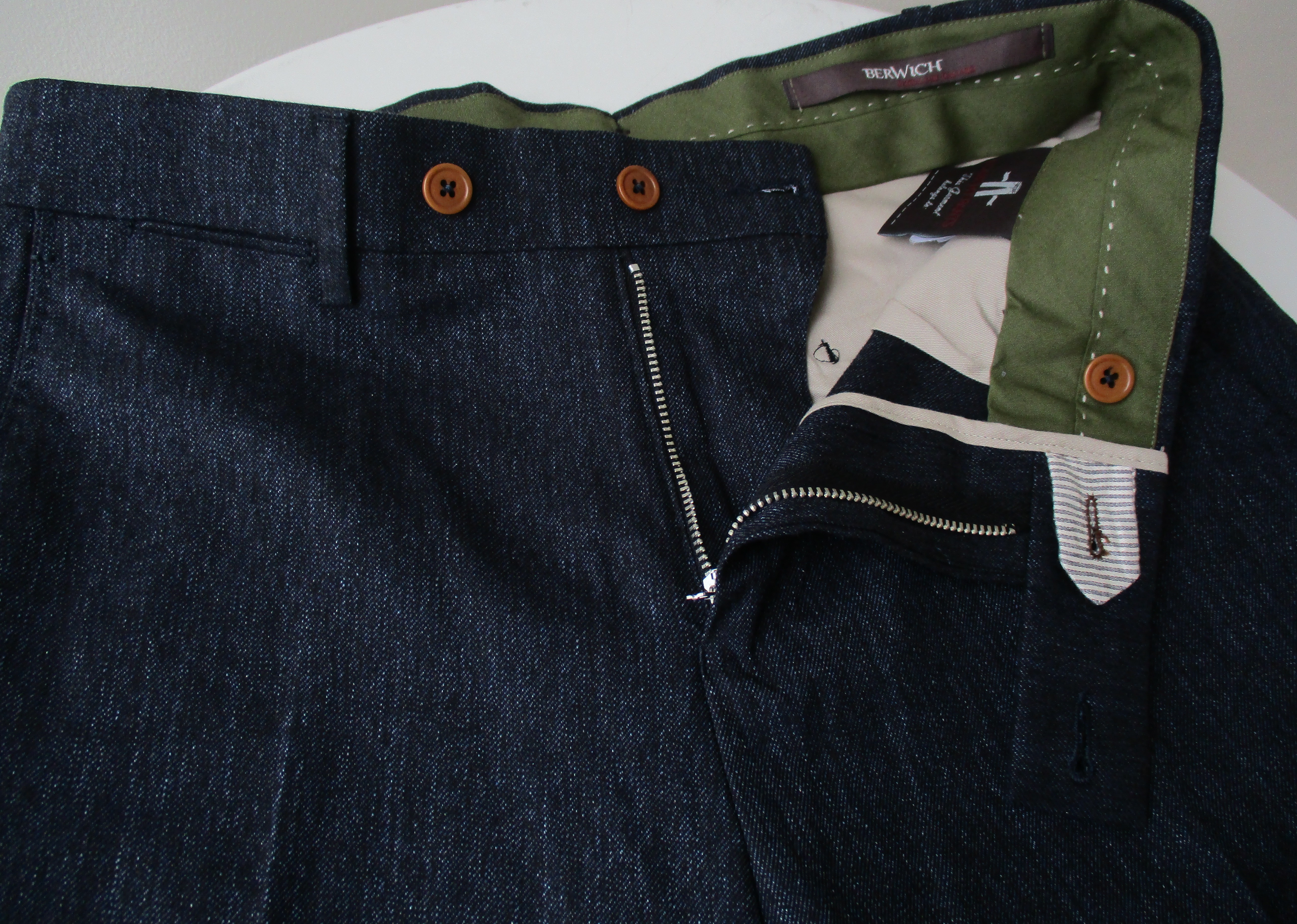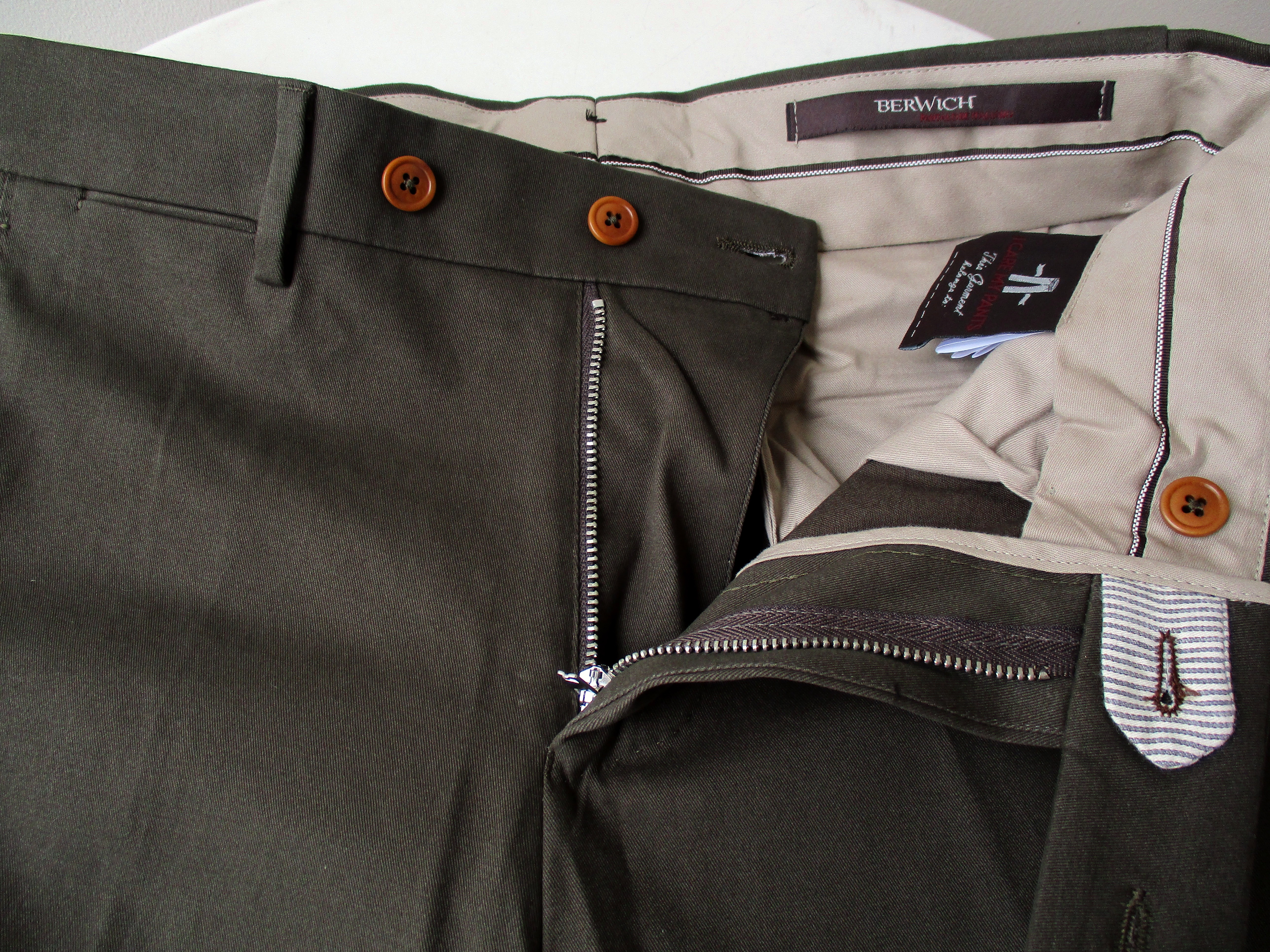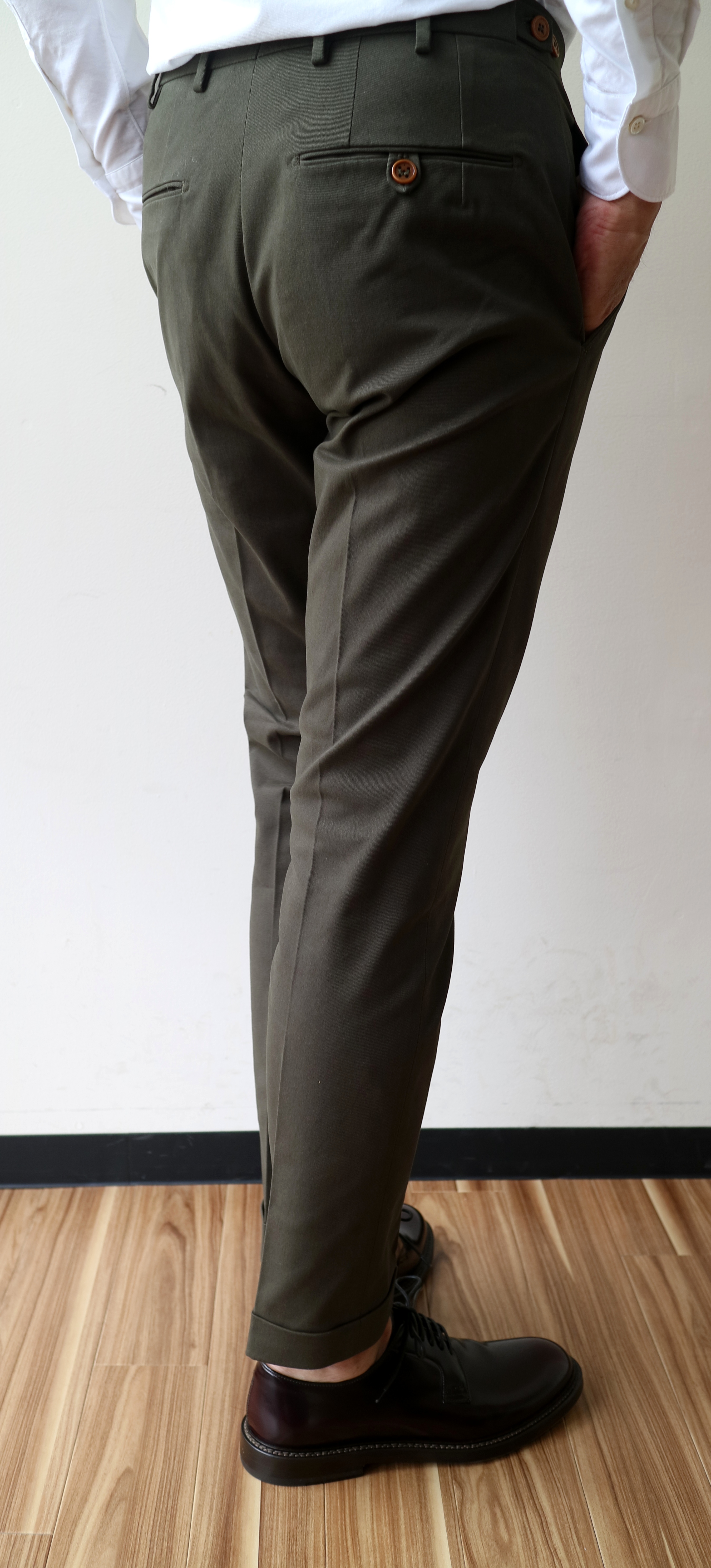 合わせたパンツは、グリーンがBERWICH(ベルウィッチ)、ブラウンとネイビーはPT01(ピーティーゼロウーノ)です。