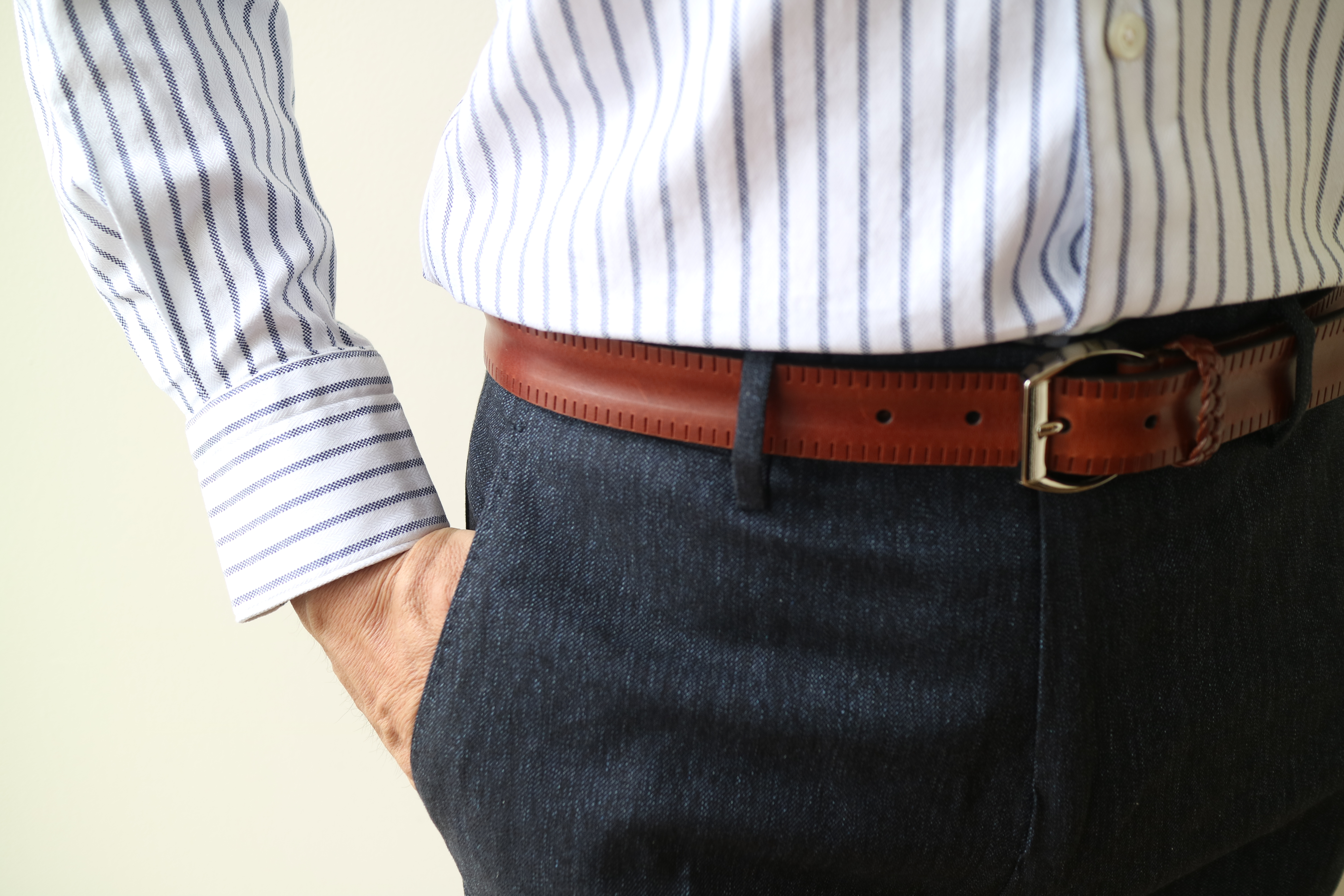 先日、ご案内させていただいたTIBERIO FERRETTI(ティベリオ フェレッティ)の「ファジング仕上げベルト」。コニャックの色合いが明るすぎていましたので、撮り直してみました。ベルトレスで穿くもよし、しても良しです。