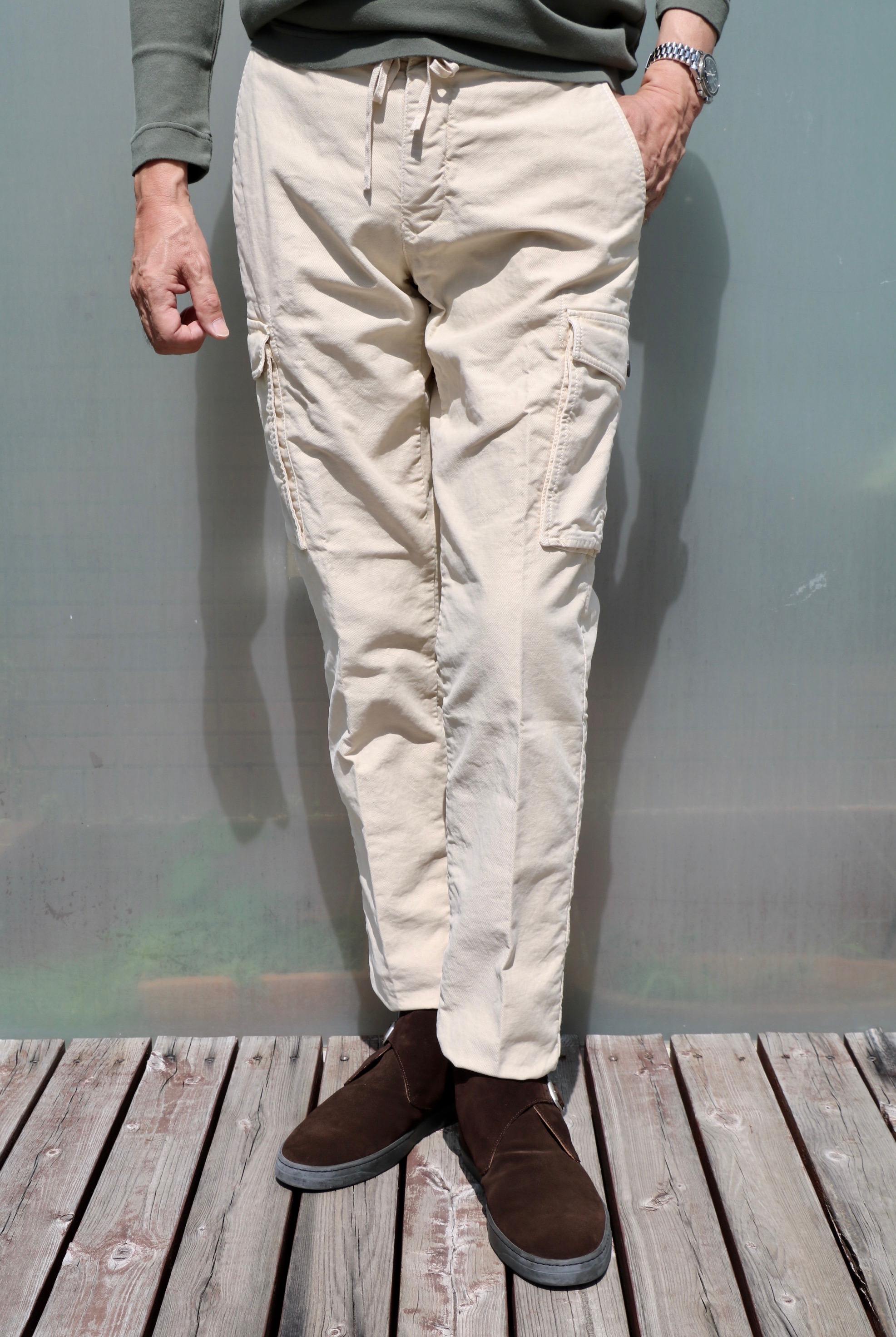 MODEL:「TAPERED FIT」コットンストレッチ ドローコード付きカーゴパンツ