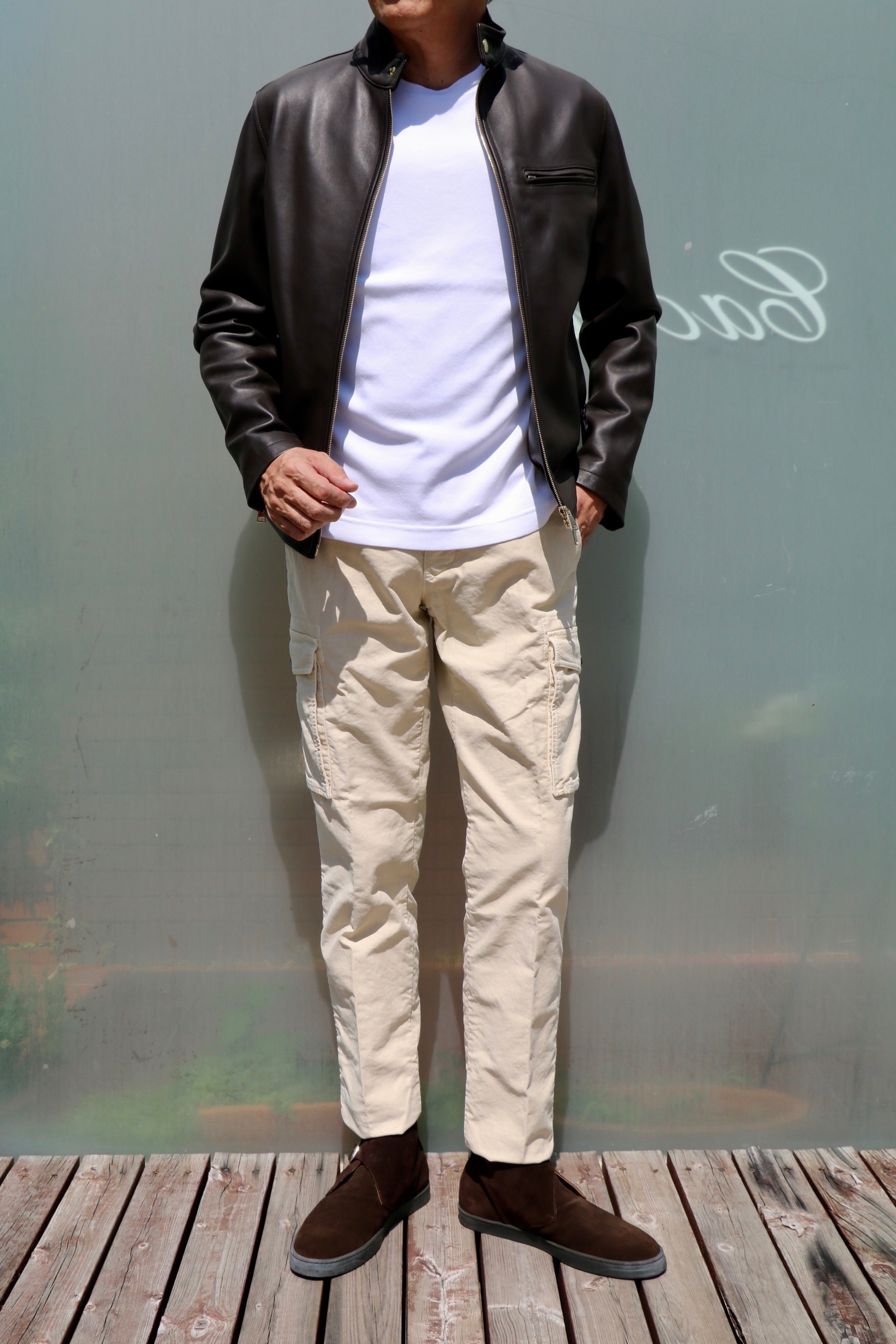 本日は、【ZANONE/ザノーネ】から一枚でも様になるロングスリーブのTシャツと【INCOTEX SLACKS/インコテックス スラックス】のカーゴパンツを、私たちが扱うレザーブランドを交えて、ご紹介していきます。