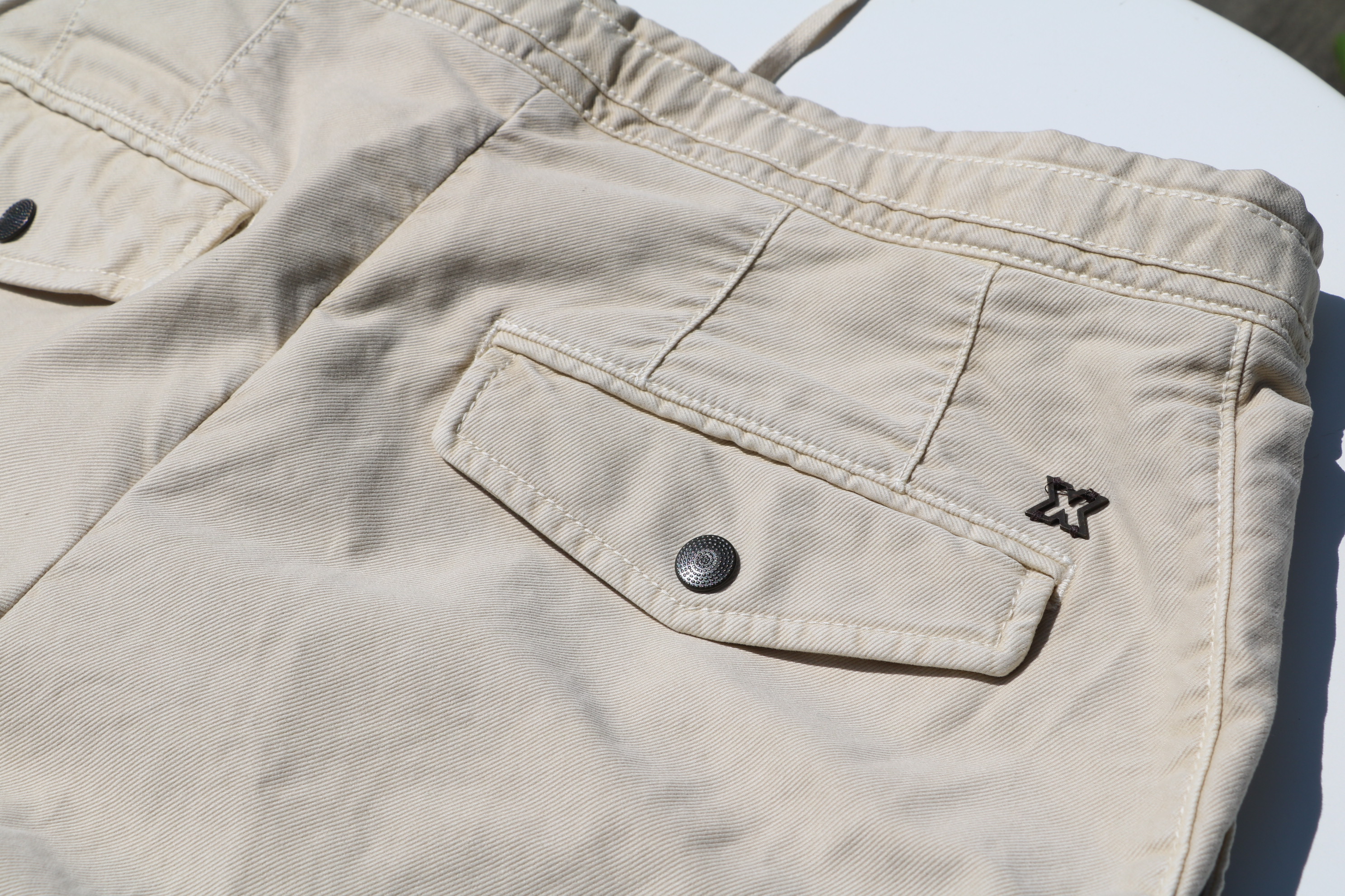 色違いのオリーブです。私と同じ46を穿かれるお得意様のW様。31サイズのブラックをお求めになられ、数日後、穿きやすいからといって色違いのオリーブを購入されていきました。ご紹介ブログではサイズ30でしたが、改めてサイズ31を穿いたら、私もジャストでした。もしかして成長したのか、いや、この暑さで体から少しは離れていた方が楽ちんなのか。シャーリングパンツのアバウトさなんでしょうね。秋まで穿けますので、サイズが合われる方には、ぜひオススメします。